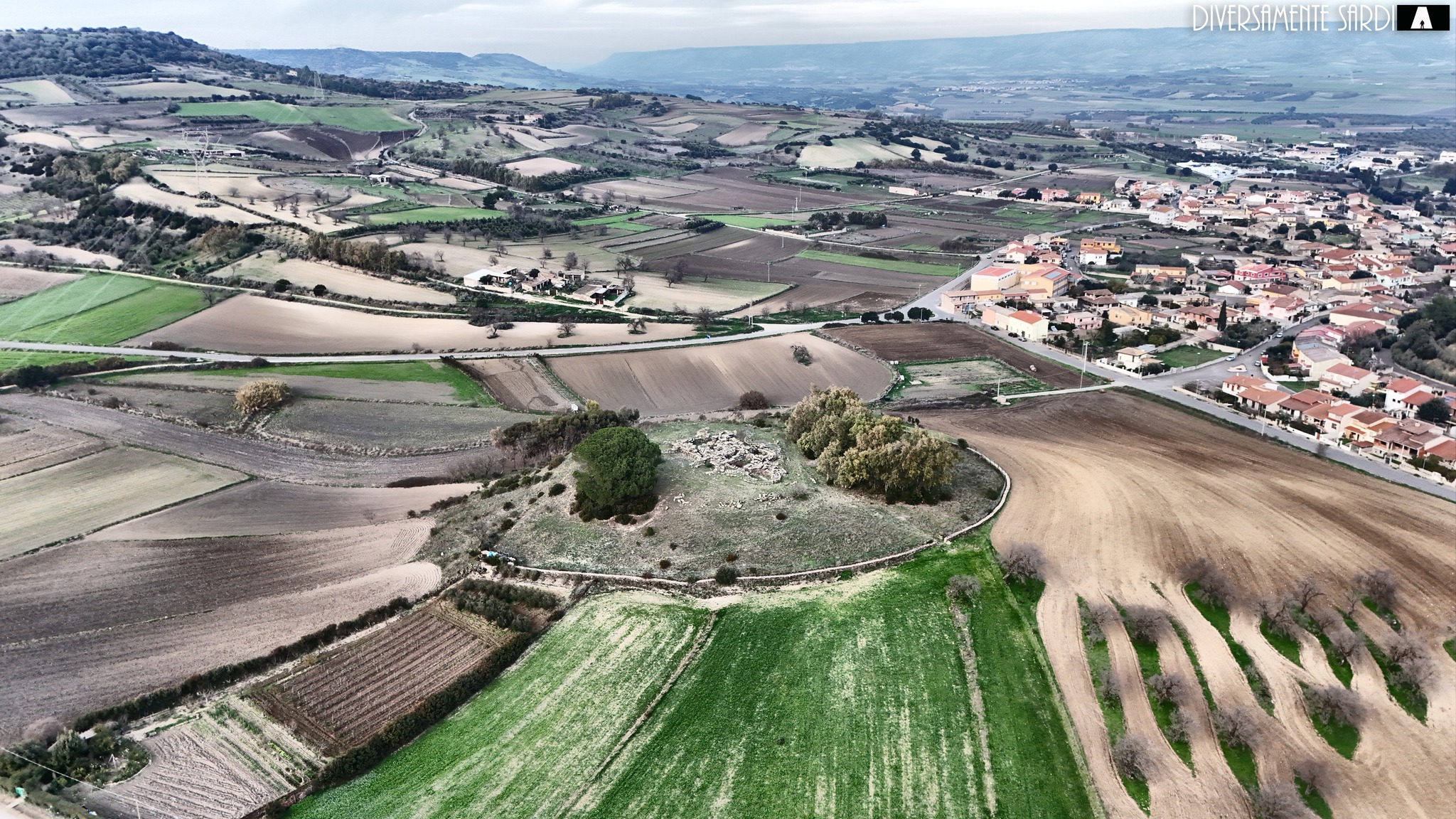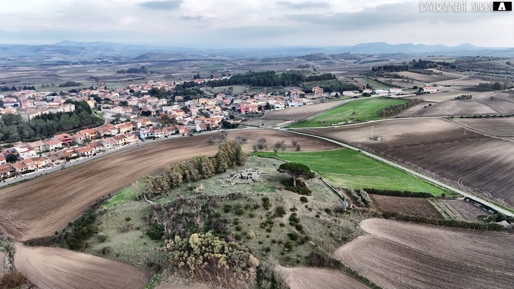 Si tratta di un nuraghe complesso “posto su una collina isolata (205 m sul Livello del Mare) circondata da un ripido pendio. Il nuraghe è costruito con filari di pietra basaltica. Venne edificato nell’età del Bronzo. Ha la forma di un quadrilatero con quattro torri, più la torre centrale e le cortine murarie. È stato abbandonato prima dell’età del Bronzo Finale e venne rioccupato in età Punica e Bizantina (VI – VII secolo d.C.)”.