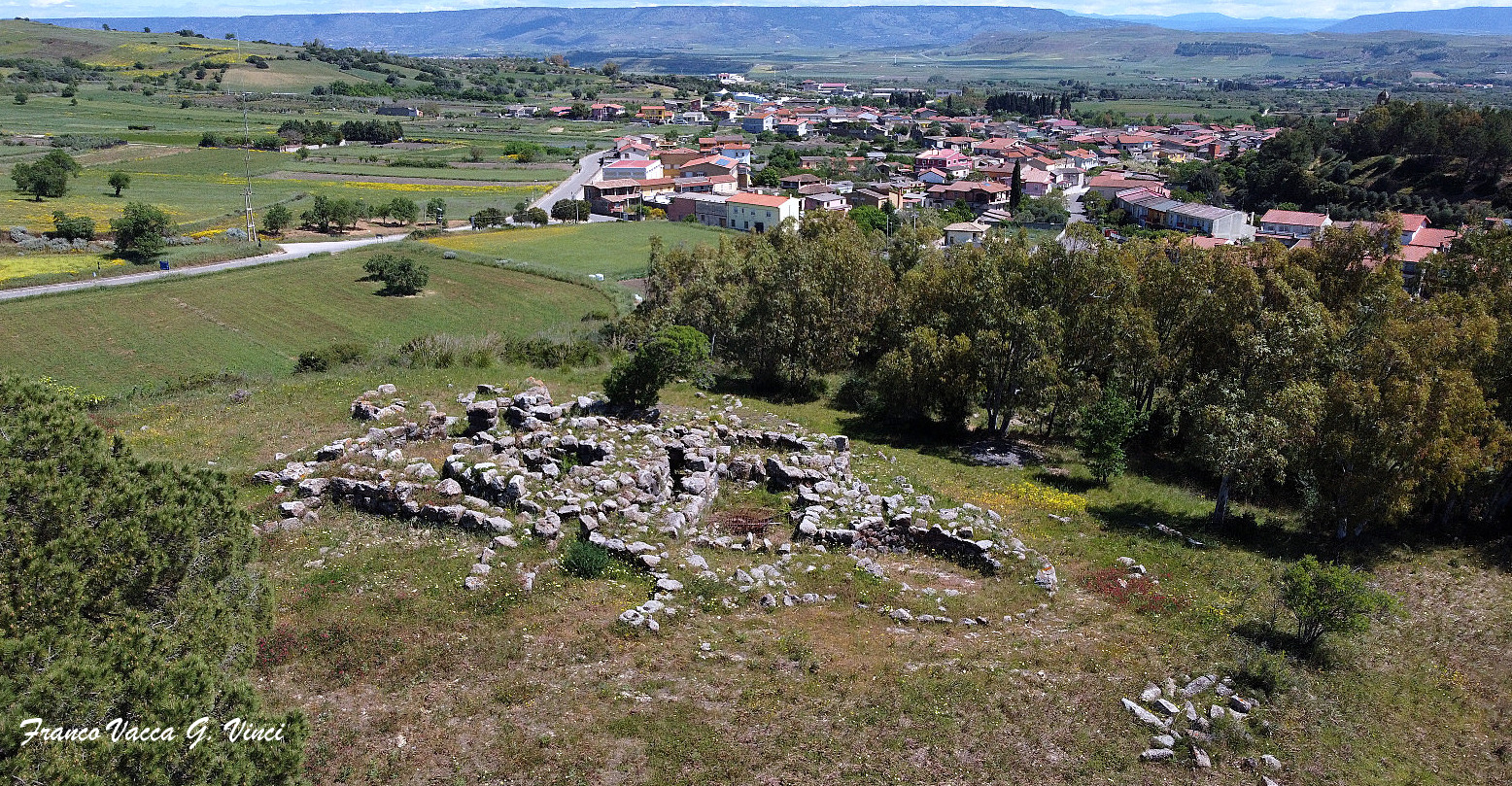 Si tratta di un nuraghe complesso “posto su una collina isolata (205 m sul Livello del Mare) circondata da un ripido pendio. Il nuraghe è costruito con filari di pietra basaltica. Venne edificato nell’età del Bronzo. Ha la forma di un quadrilatero con quattro torri, più la torre centrale e le cortine murarie. È stato abbandonato prima dell’età del Bronzo Finale e venne rioccupato in età Punica e Bizantina (VI – VII secolo d.C.)”.
