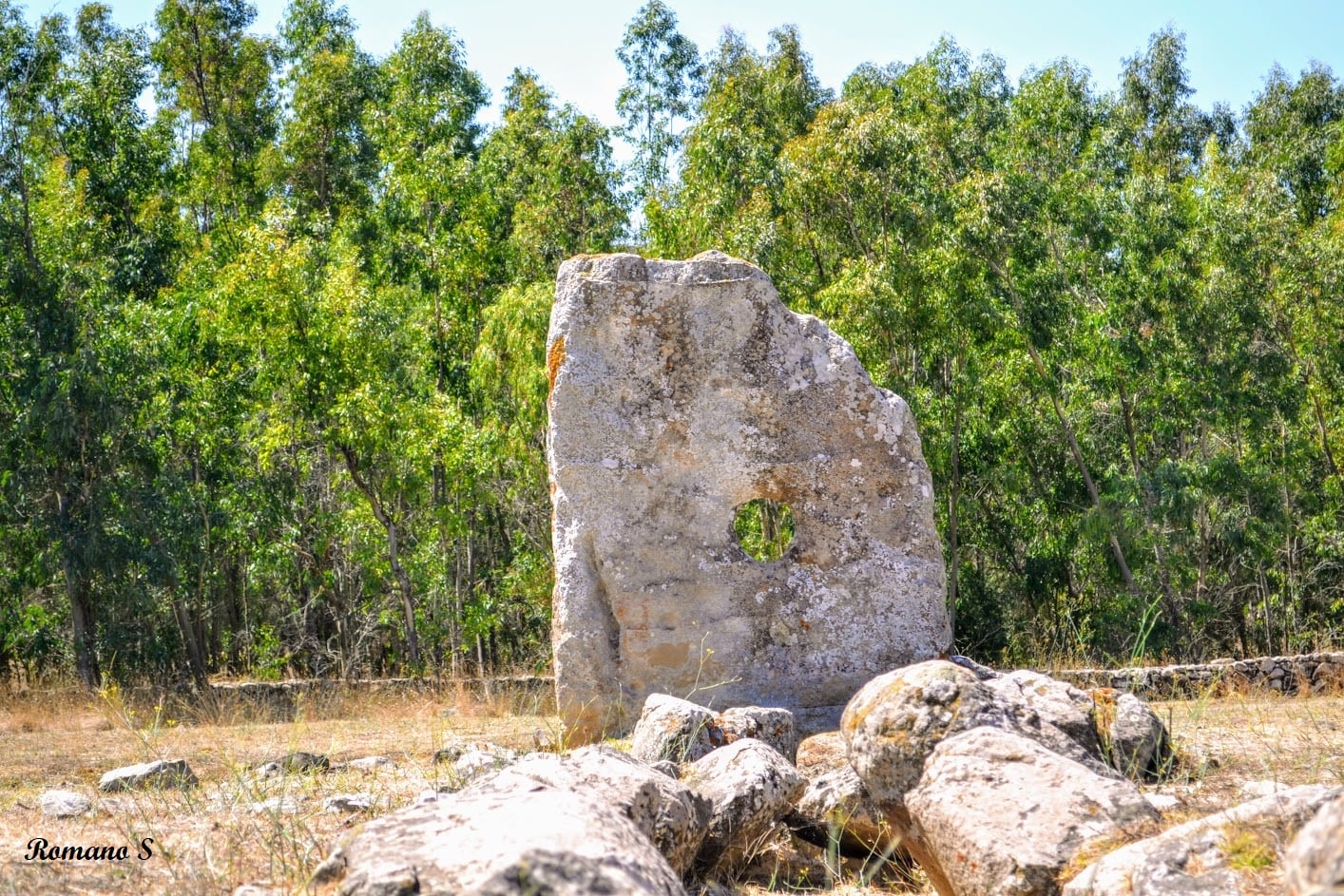 Il monumento prende il nome dall”antica denominazione della zona in cui si trova (Nixias) e dall”insolito foro posizionato sulla destra della grande stele che, si riteneva (forse a torto) utilizzato in tempi storici per legare i cavalli. Il monumento è di notevole interesse dato che costituisce un raro esempio di tomba di giganti con stele centinata nel centro-sud dell”isola.