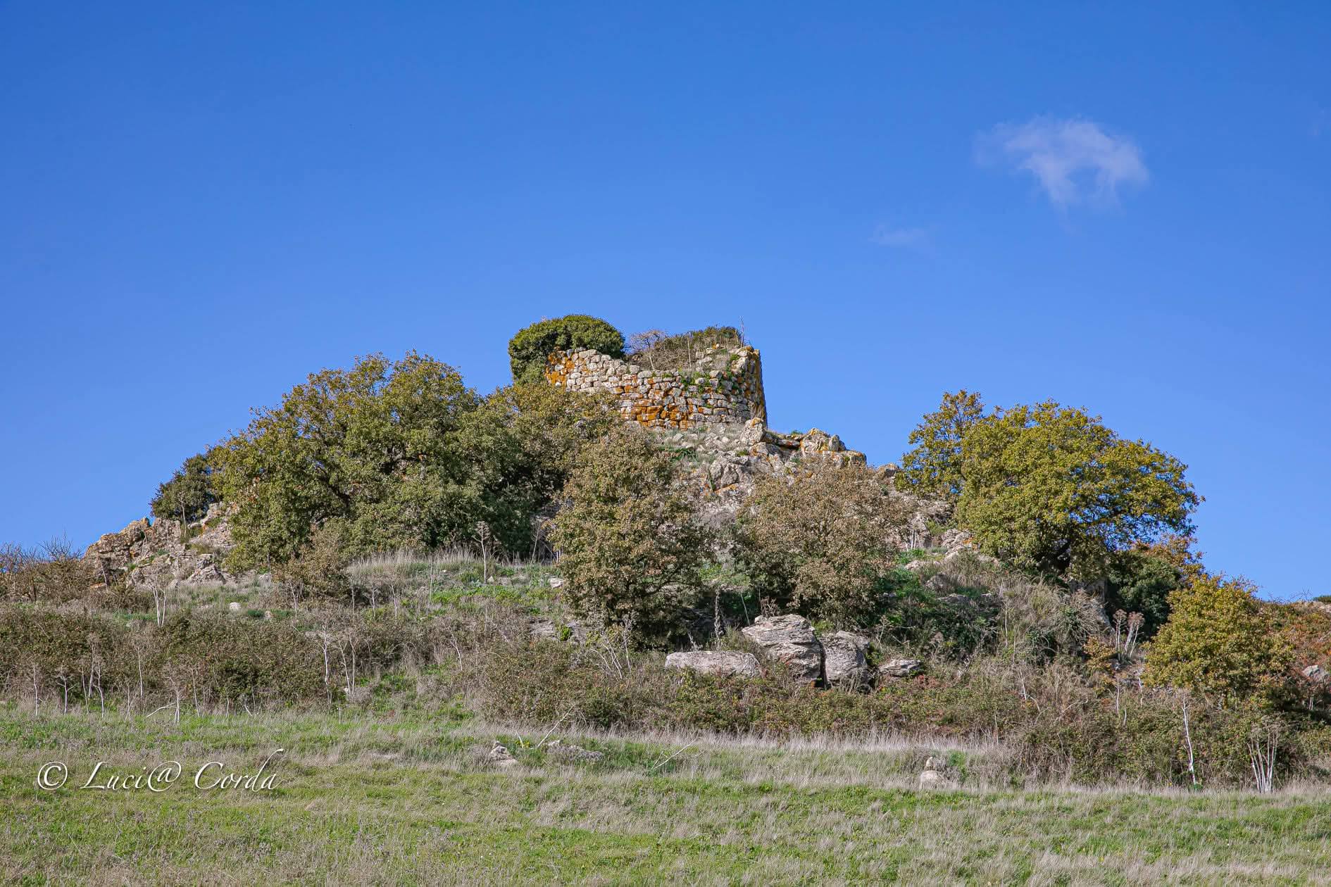 Nuraghe monotorre sopra un acrocoro di basalto, fortezza naturale. All’interno fu realizzato un ricovero per pastori. Oggi è abbandonato.