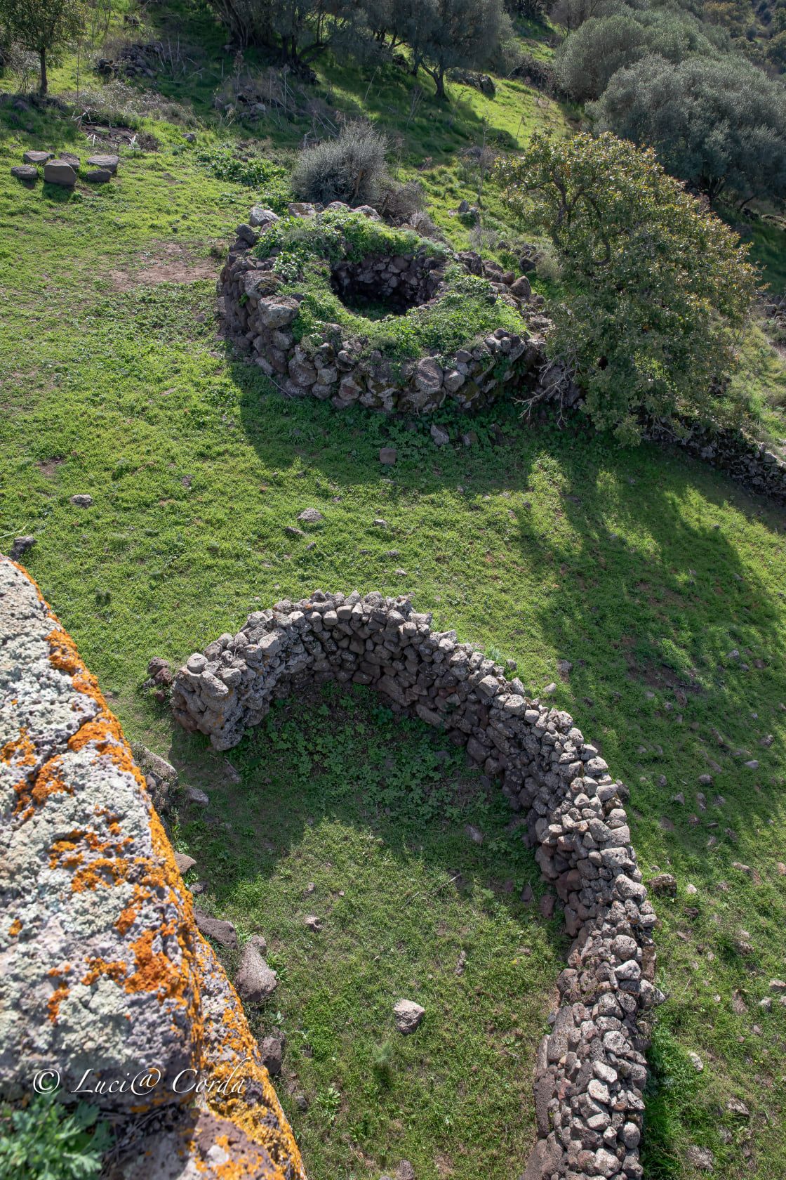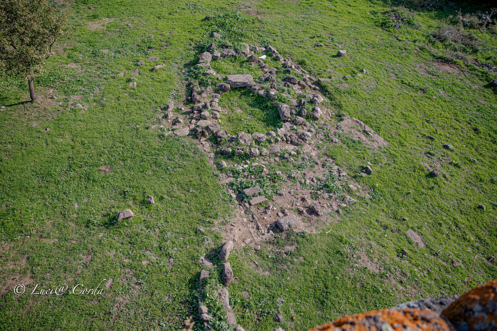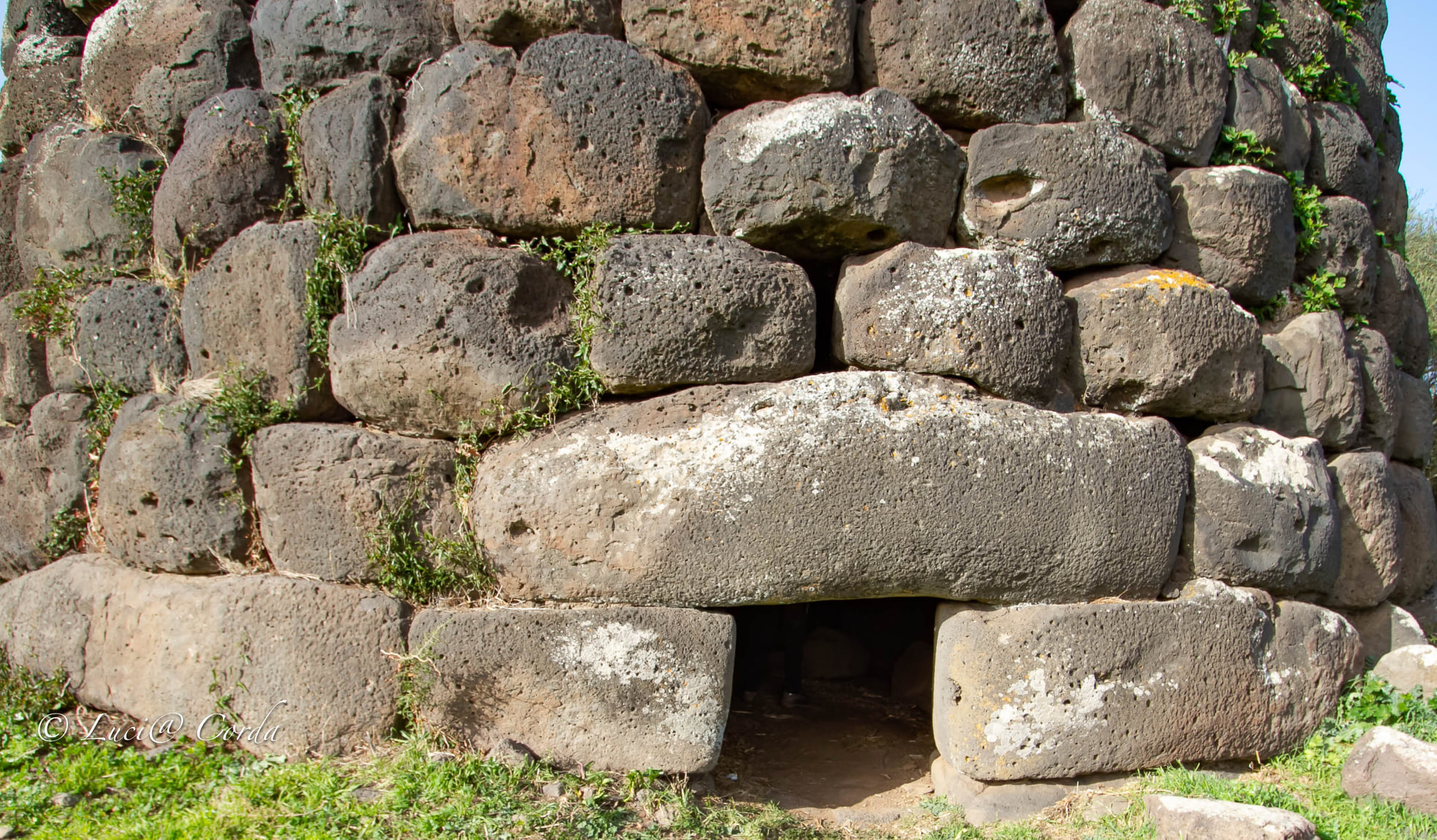 Nuraghe monotorre, conserva la tholos intatta. L’architrave sovrastante l’entrata misura circa m. 3,30×0,90×1,85, per un peso stimato di circa Kg. 16.000.