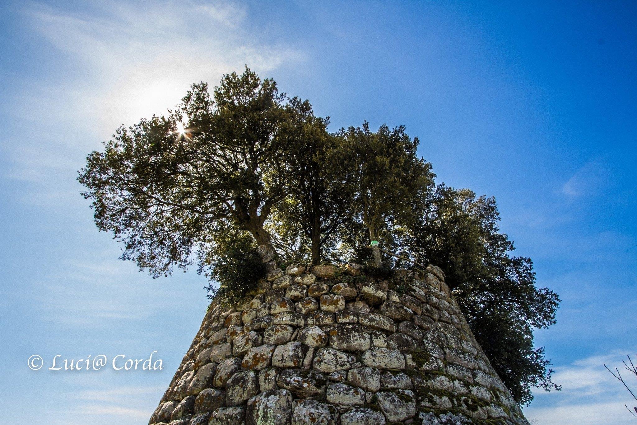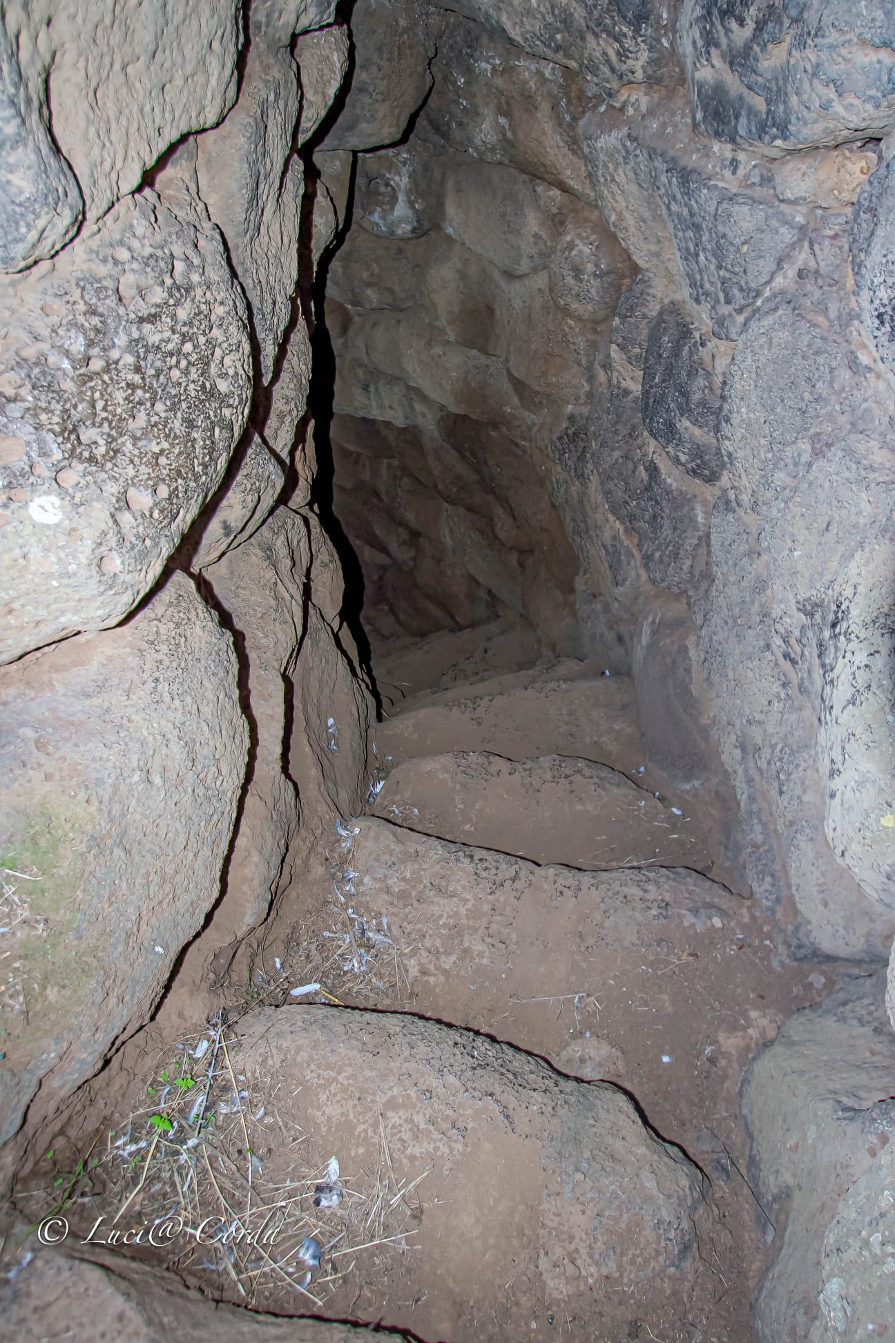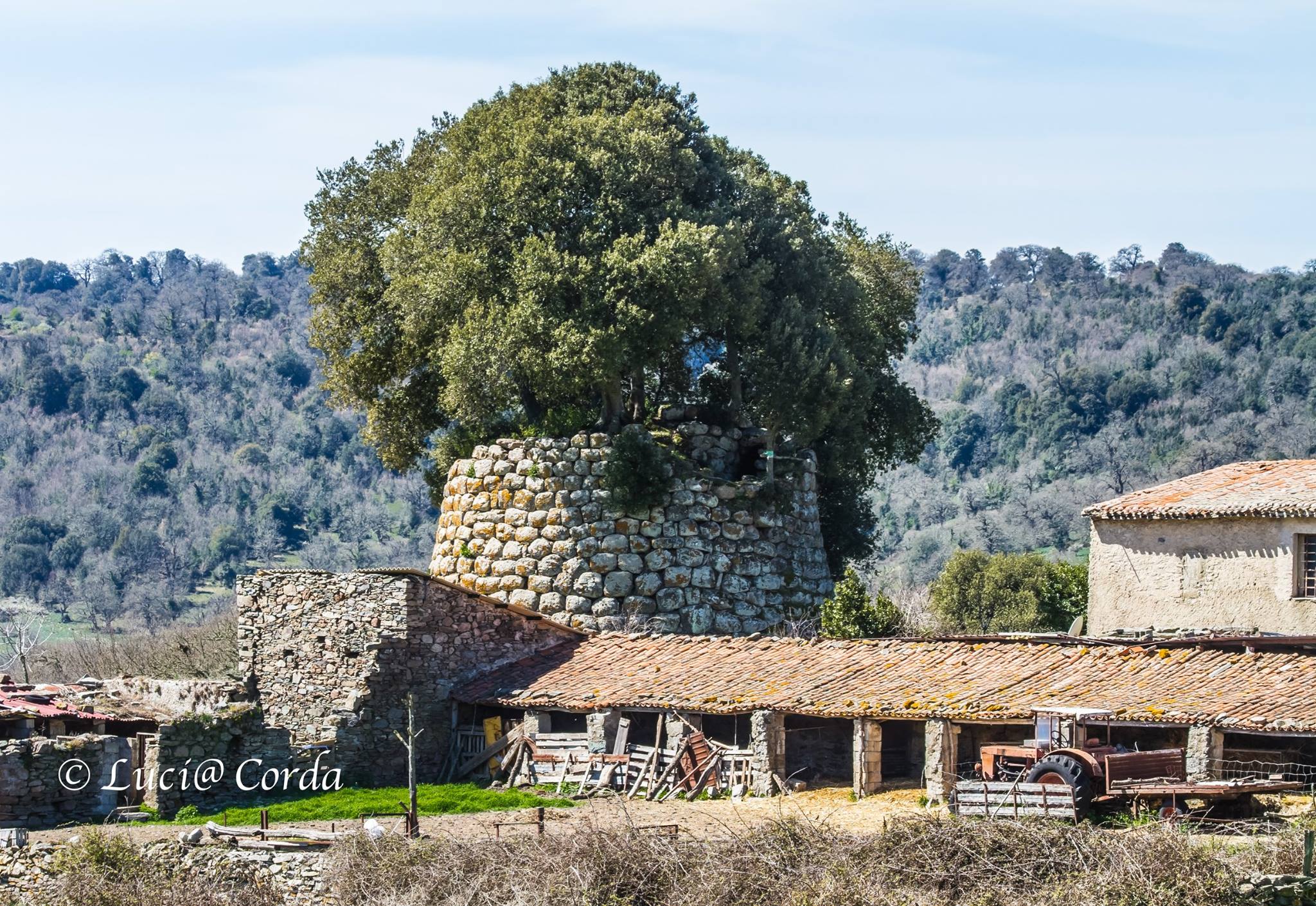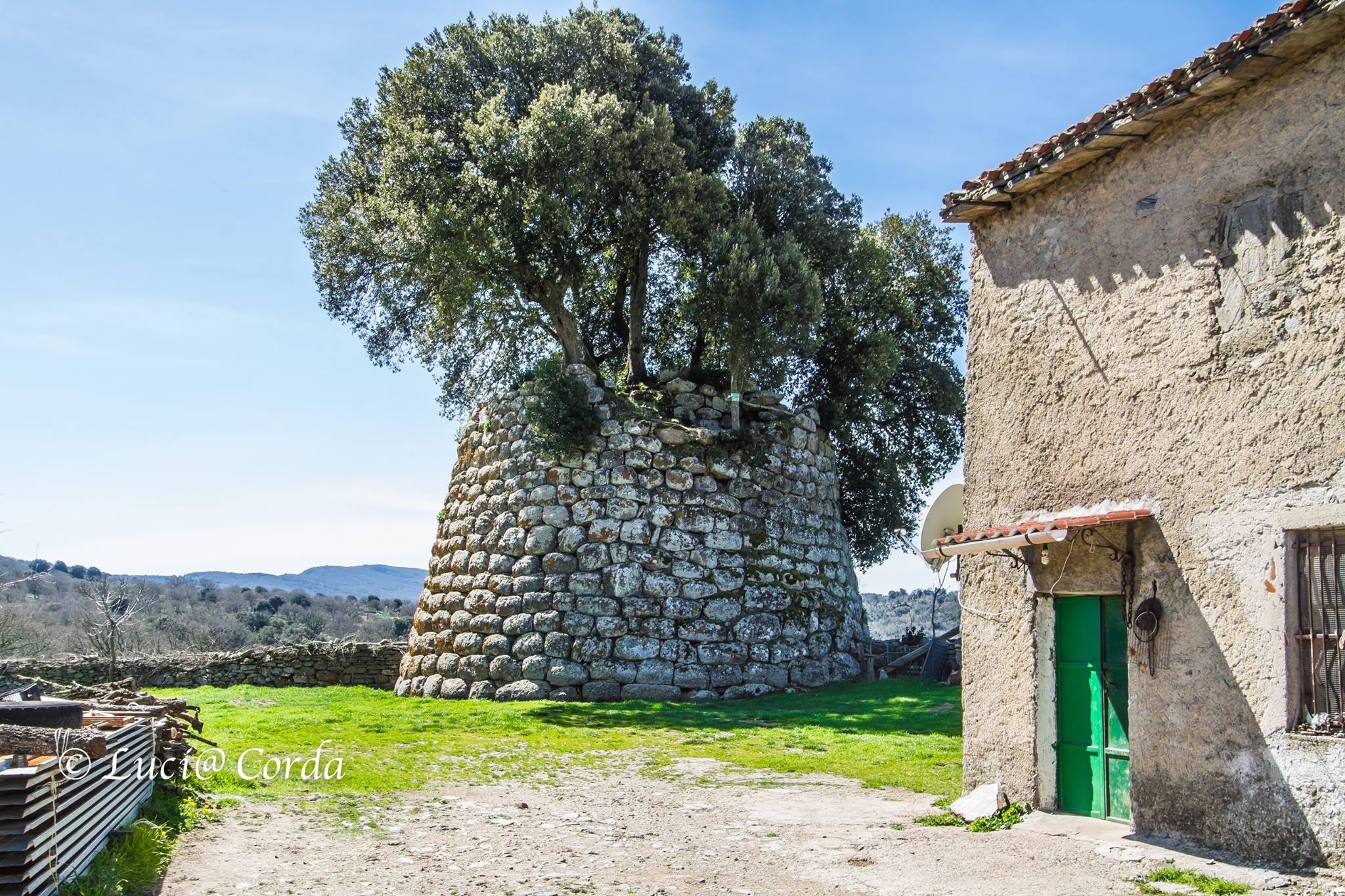 XVI – XIII a.C.), è costruito in trachite. Presenta un corridoio con scala elicoidale a sinistra e garetta di guardia a destra, e una camera a volta, perfettamente conservata, con tre nicchie disposte a croce. Gli stipiti dell’ingresso del nuraghe sono alti rispettivamente m. 1,52 e m. 1,24. La torre ha un’altezza massima di 8 m. ed è composta di diciassette filari di pietre. L’ingresso è situato ad Est, il suo architrave perfettamente lavorato è lungo m. 1,60, alto m. 0,70 e largo m. 0,80.