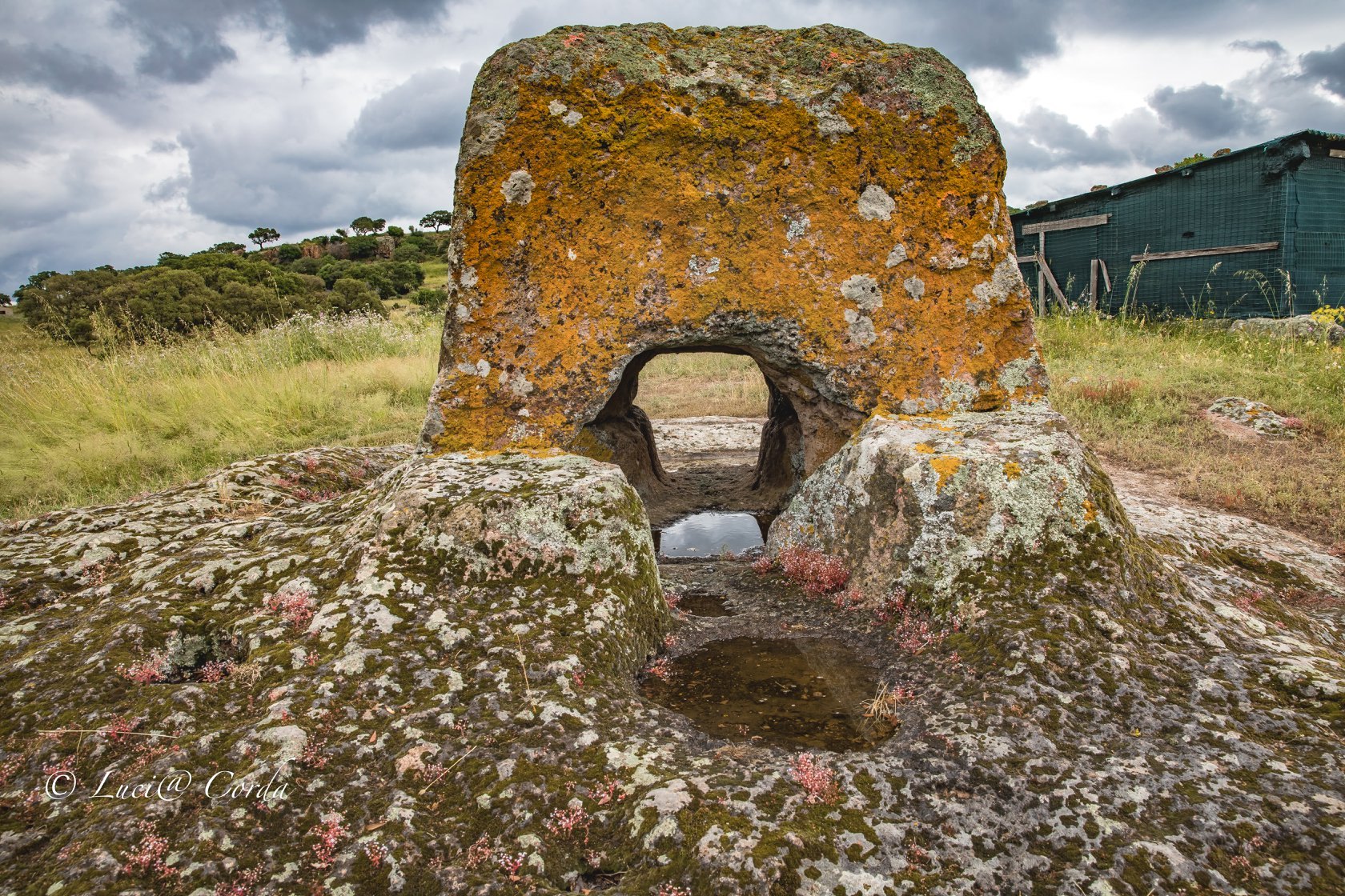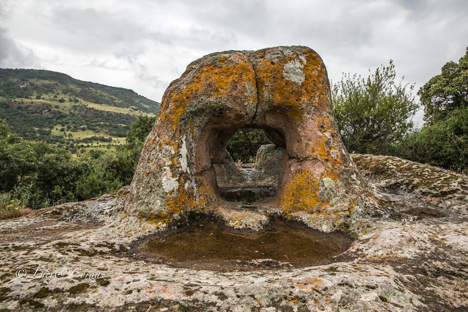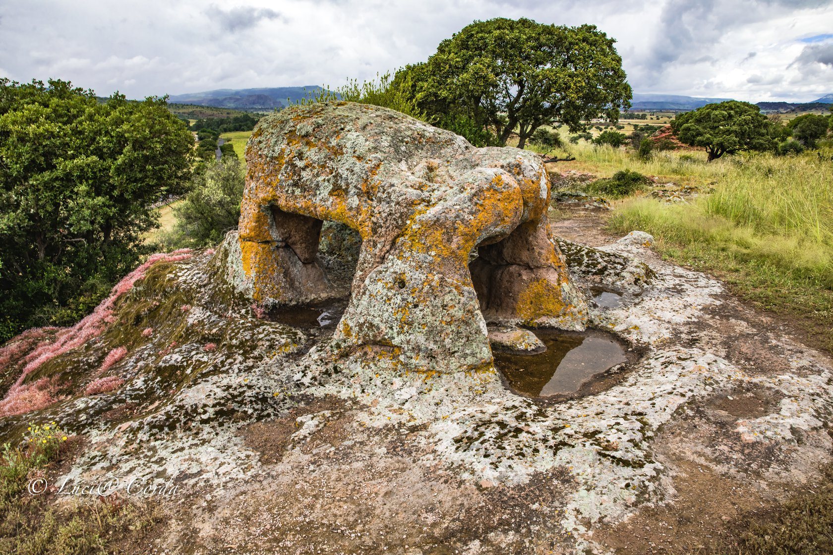 Sul pianoro, a 10 m a nord del ciglione, a 13 m a Ovest del pozzo di illuminazione dell’ipogeo VI delle domus de janas di Sant’Andrea Priu, s’innalza una singolare rupe, denominata Toro o Campanile.