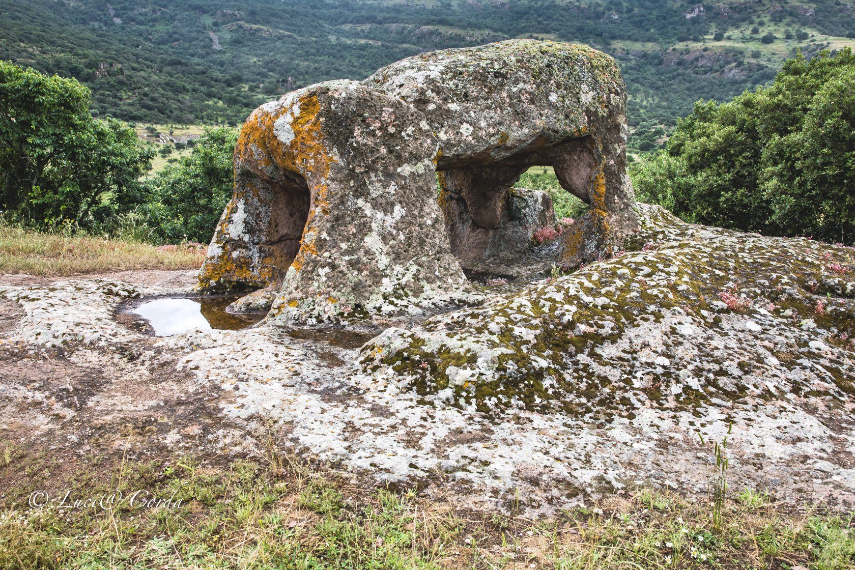 Domu de Orgia di Esterzili è il più grande tempio a “megaron” nuragico finora conosciuto. L’edificio è racchiuso entro un recinto ellittico (m 48,50 x 28; spessore murario di m 1,50) ridotto al solo filare di base, con ingresso ad O.