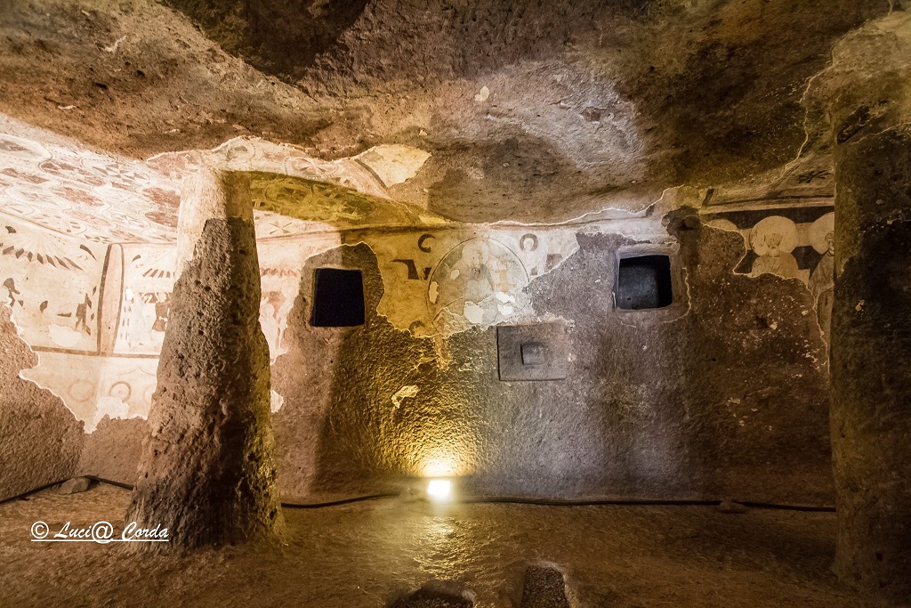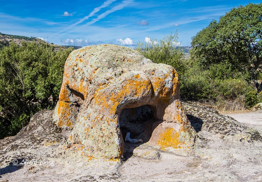 Le domus de janas che compongono questa necropoli, una delle più estese ed importanti della Sardegna, sono scavate sulla parete verticale e sul pianoro di un affioramento trachitico – alto circa 10 m e orientato a S – e consistono in una ventina di sepolture disposte per lo più ad una certa altezza rispetto al livello di campagna. Risalgono presumibilmente al IV-III millennio a.C. ma furono riusate per lungo tempo. In età romana e poi bizantina la ‘tomba del Capo’ fu trasformata in chiesa rupestre, una delle prime nel tempo delle persecuzioni. Più volte intonacata e affrescata con scene del Nuovo Testamento, fu intitolata a sant’Andrea, da cui il nome del sito.