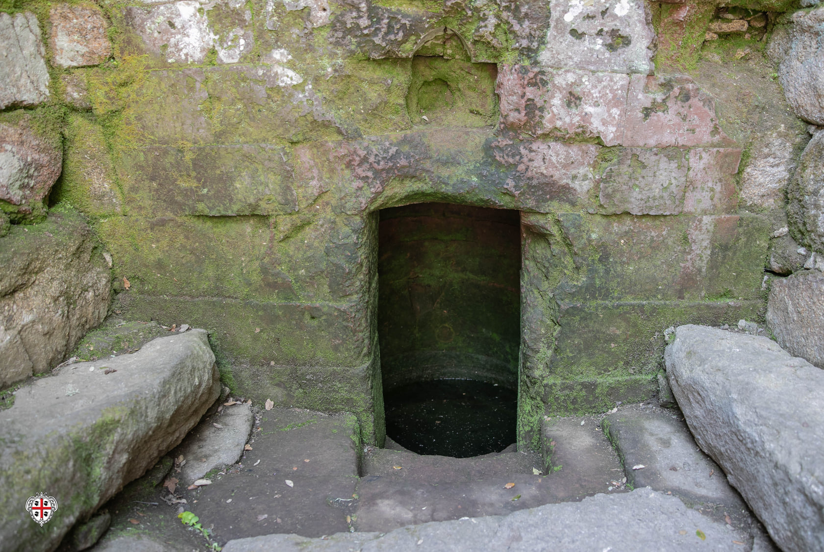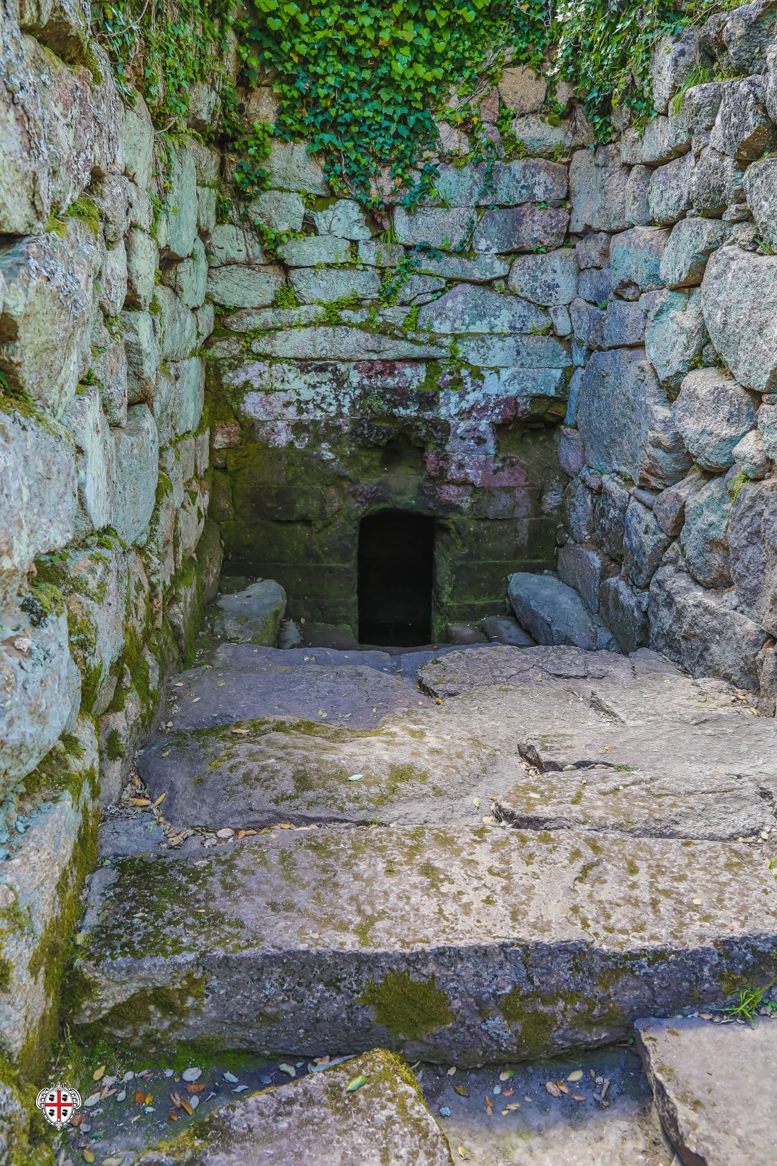 Un lastricato conduce all’ingresso del pozzo, con ai lati due sedili in granito.