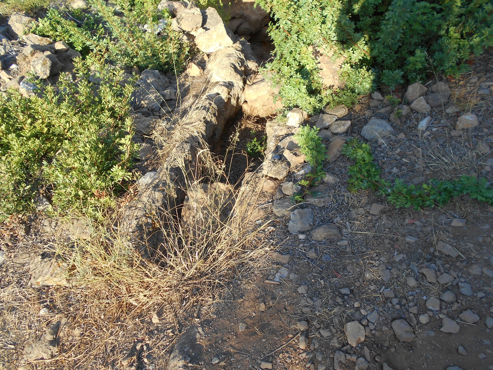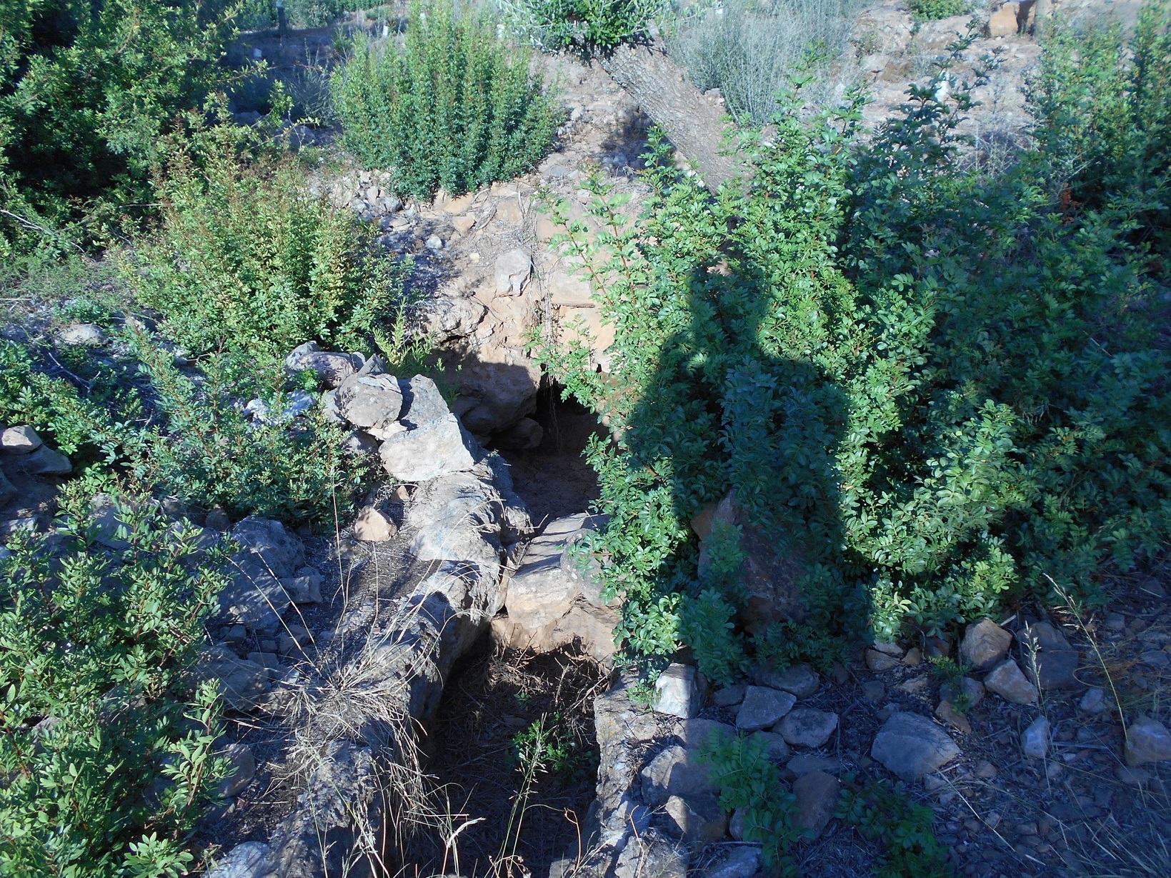Visibile il corridoio, nella parte superiore, che appare ricavato scavando nella roccia arenaria. Sotto è coperto di terriccio, non è nota la profondità ma di certo più sotto la distanza tra le pareti è maggiore. Della struttura conica del pozzo vero e proprio vediamo, soprattutto alla nostra sinistra e nella parte alta di fronte, parti fatte di conci lavorati, mentre la parte a destra e quella centrale in basso paiono svuotate di conci, come se fossero stati presi per altri usi o franati. La parte inferiore della fonte è ricoperta di fango.