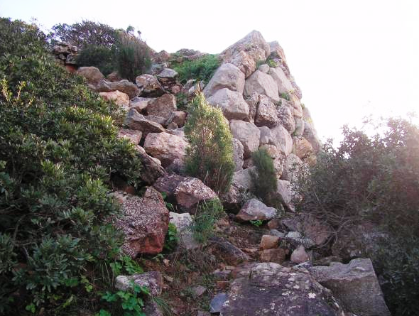 Si trova su una punta aguzza, i locali la chiamano “punta acuccia”, vista da lontano appare molto simile ad una piramide. I massi utilizzati sono in prevalenza granitici. La visuale è ottima, soprattutto sul golfo di Palmas.