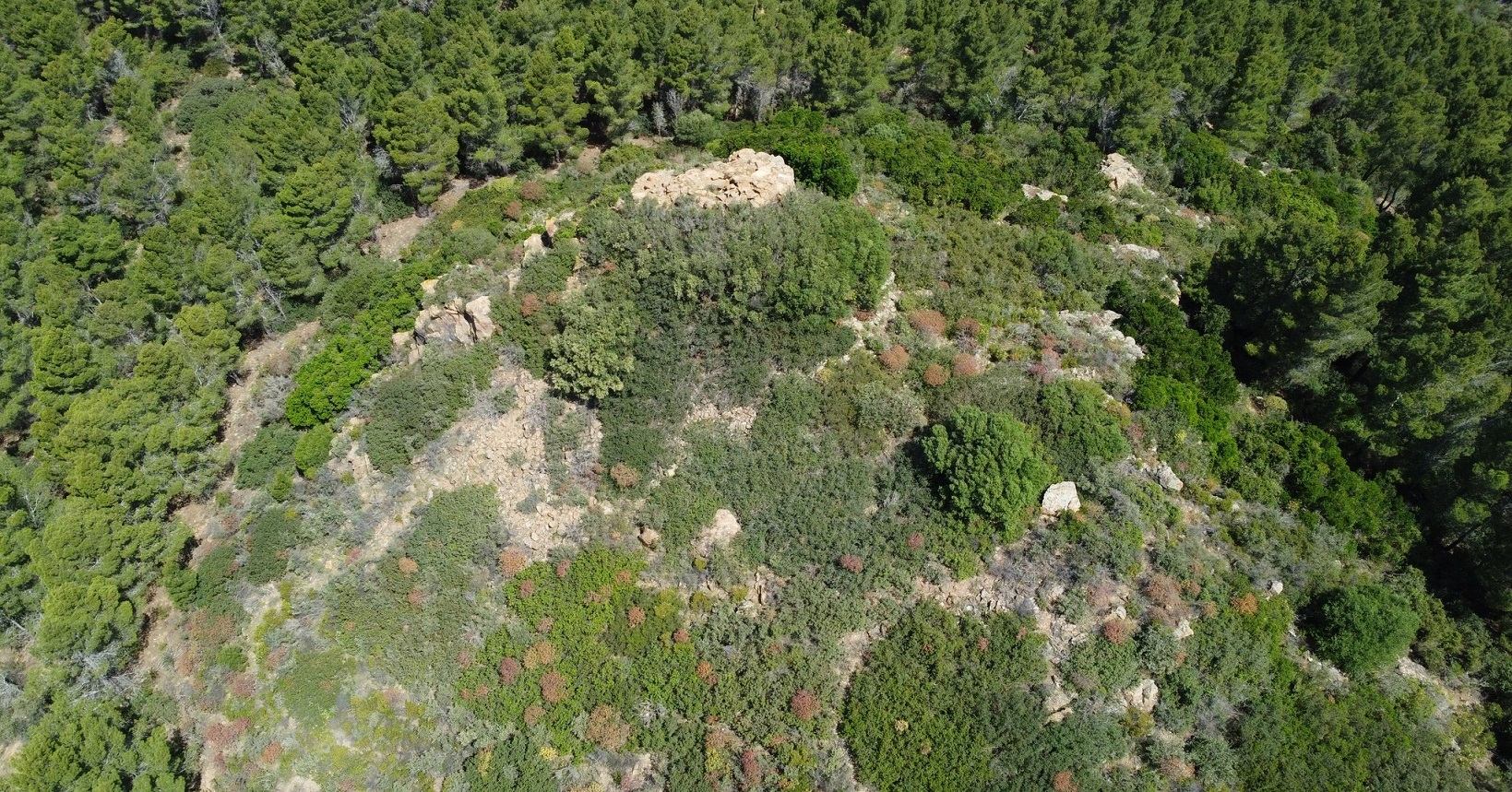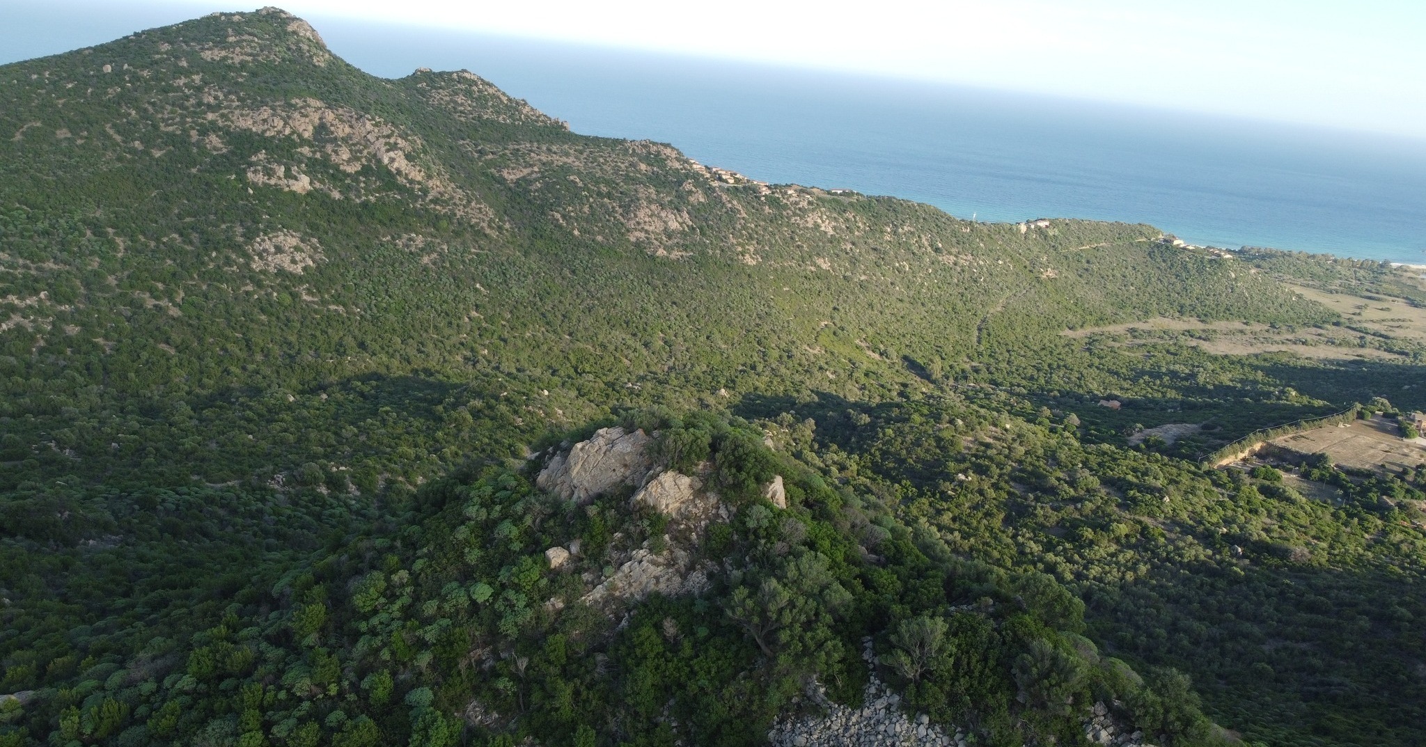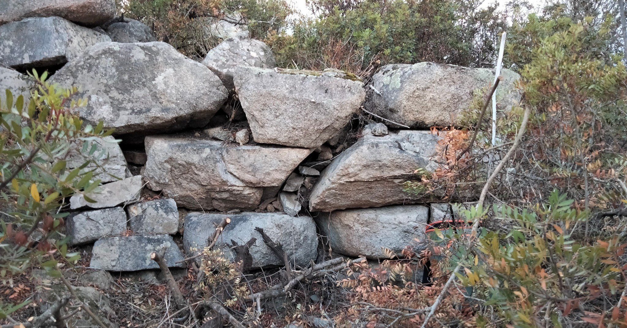 Nuraghe posto sull’approdo doppio e sicuro di Porto Pirastru. Attualmente restano le mura e un battuto di cemento di una installazione recente.