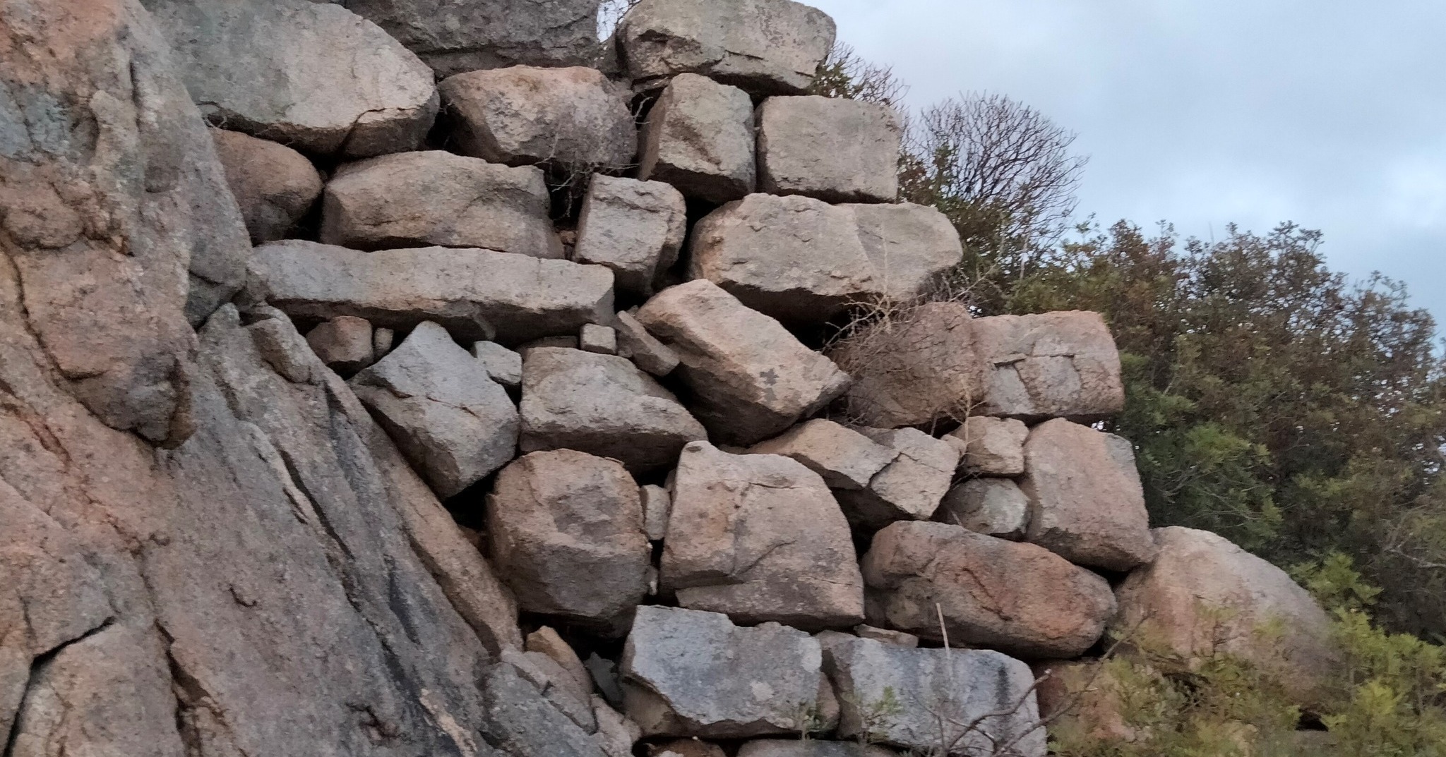 Il materiale di costruzione è granito molto probabilmente cavato in loco. I blocchi sono di medie e piccole dimensioni e sono lavorati. Anche in questo caso i livelli del muro son stati realizzati con l’ausilio di piccole zeppe dello stesso materiale. (Archeo Sarrabus)