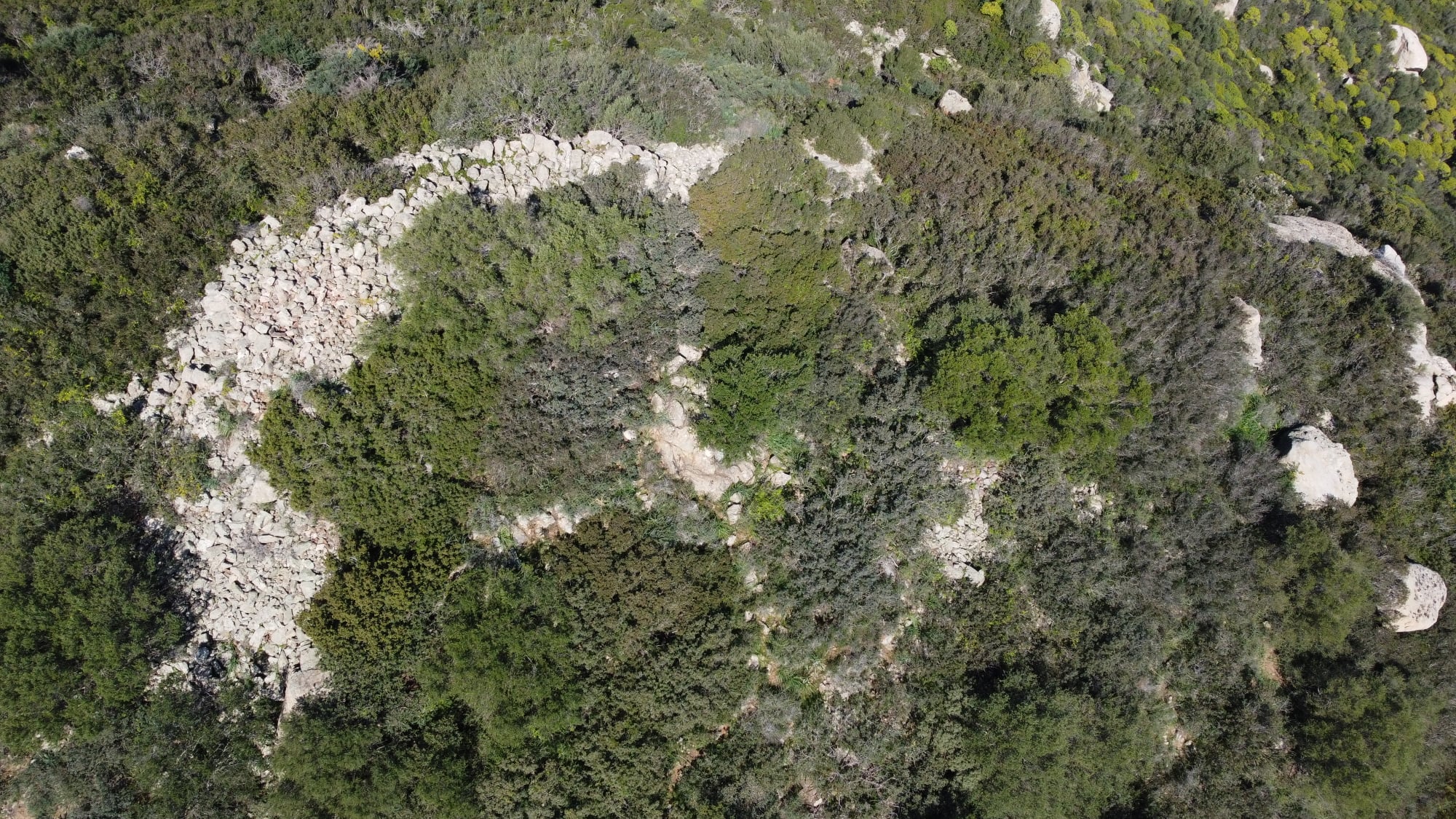 Realizzato su una dolce collina granitica ad un altitudine di mt 171 s.l.m. questo sito ha un ottima visuale sia sul mare che sulla valle, comprendendo la foce del “Rio Picocca”, le lagune di “Feraxi” e “Colostrai” ed arrivando al promontorio di “Porto Corallo”. Numerosi i nuraghi in contatto visivo ma il più importante (a cui sicuramente era collegato) è l’importantissimo insediamento di “Don Giovanni Mattacciolu” a poce centinaia di metri a valle.