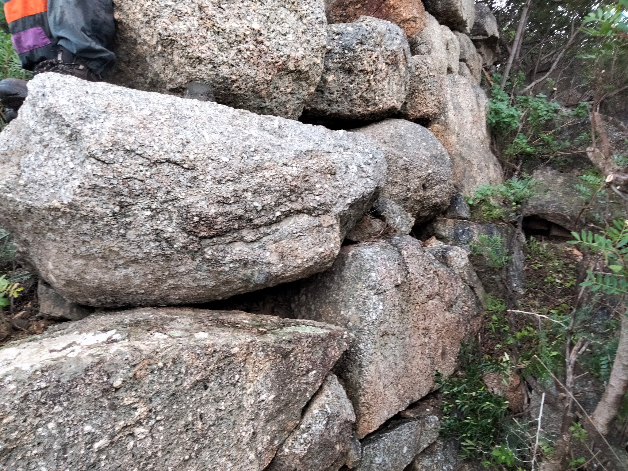 Il materiale di costruzione è granito del posto. I filari son realizzati utilizzando massi di medie dimensioni inzeppati con piccole pietre dello stesso materiale.