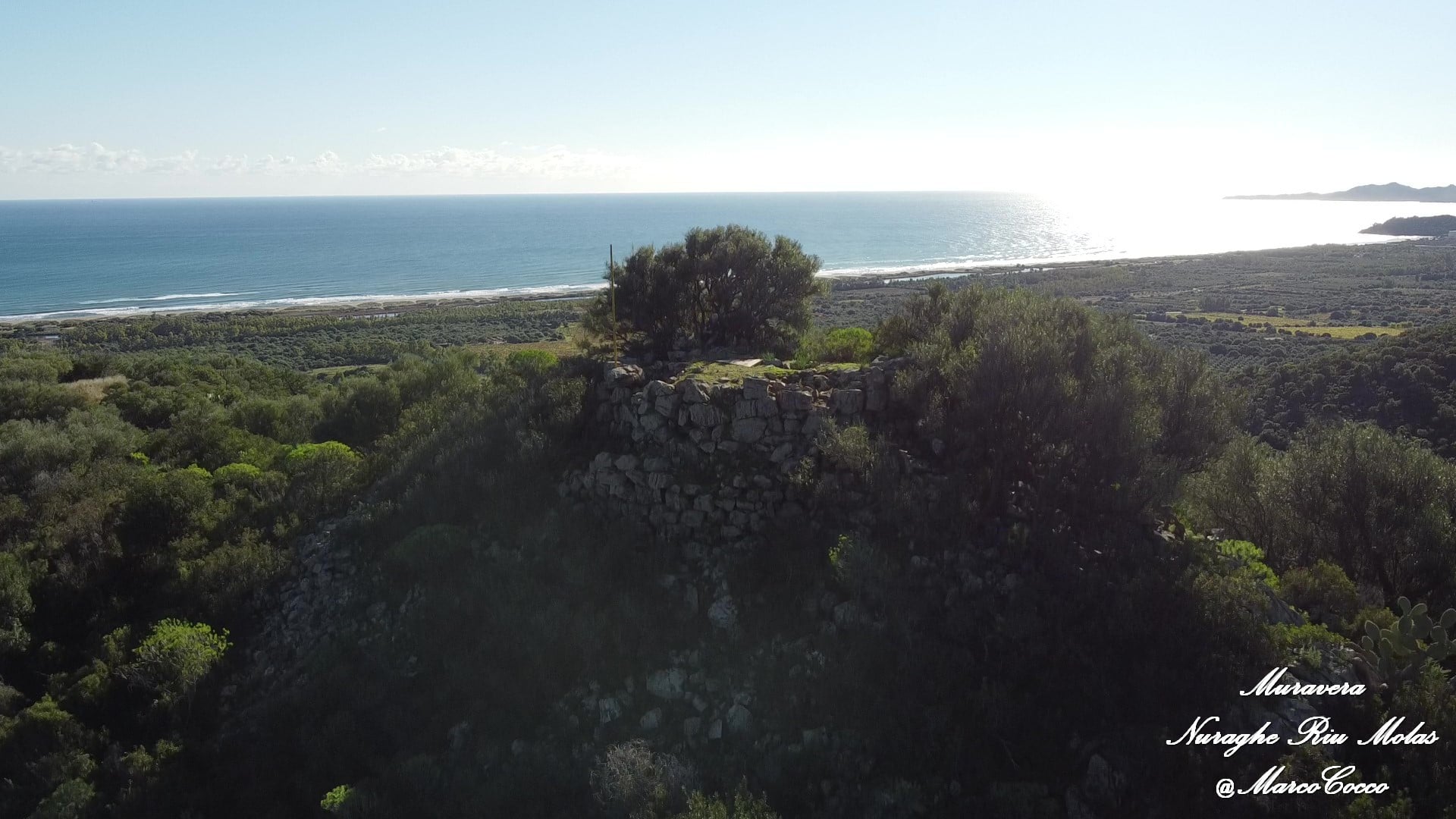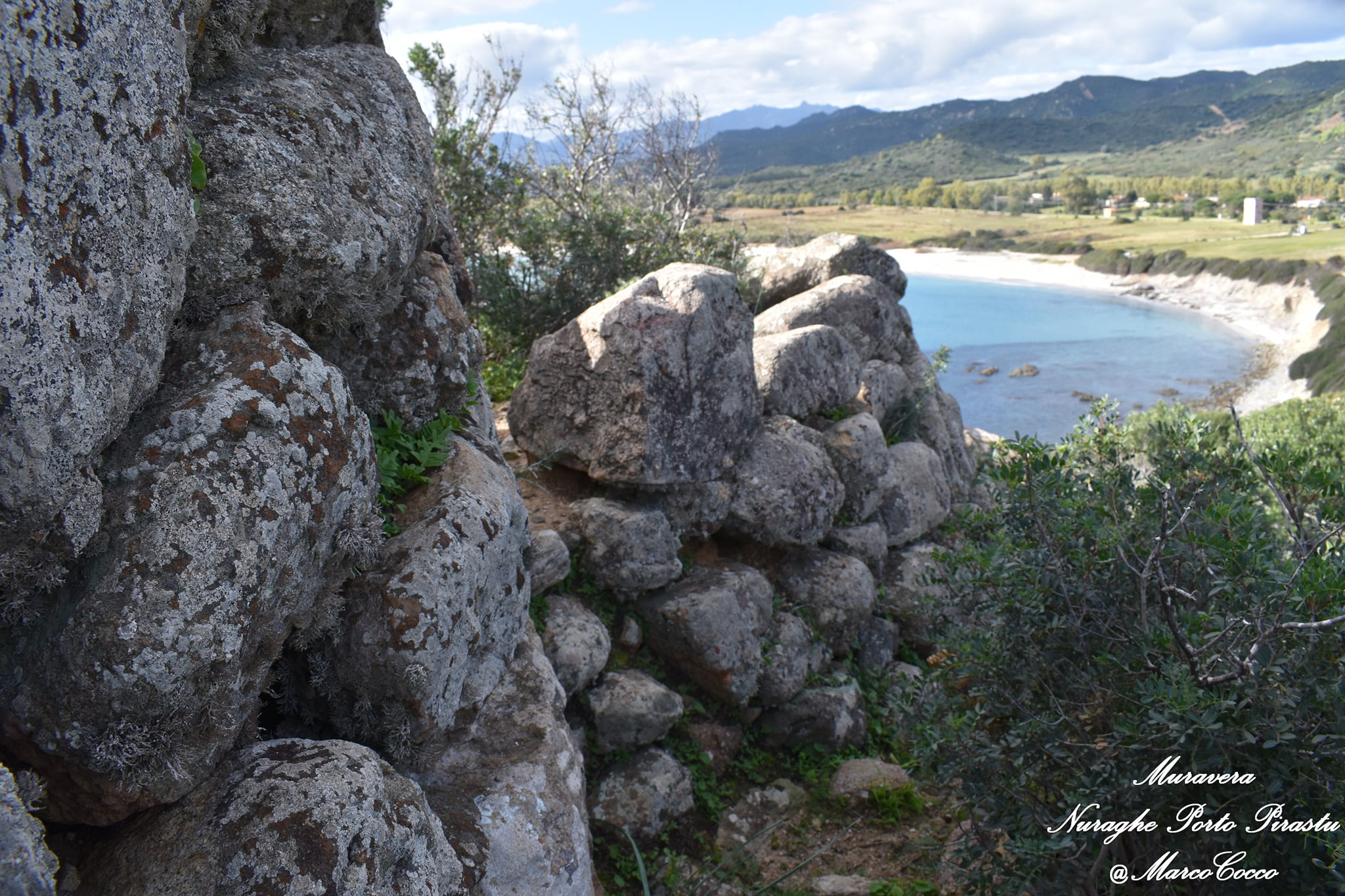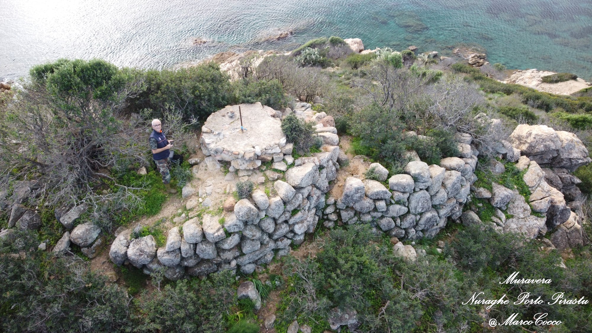 Nuraghe posto sull’approdo doppio e sicuro di Porto Pirastru. Attualmente restano le mura e un battuto di cemento di una installazione recente.