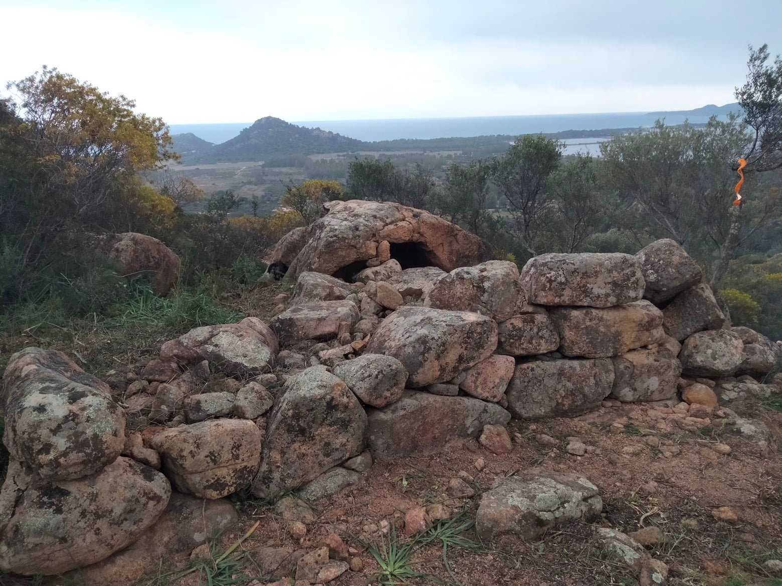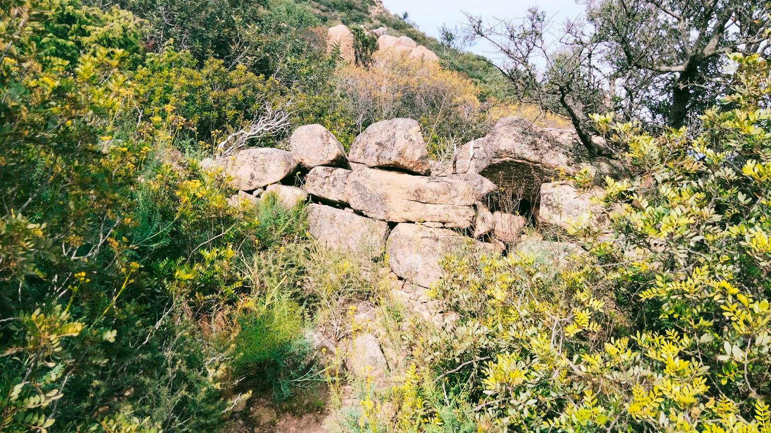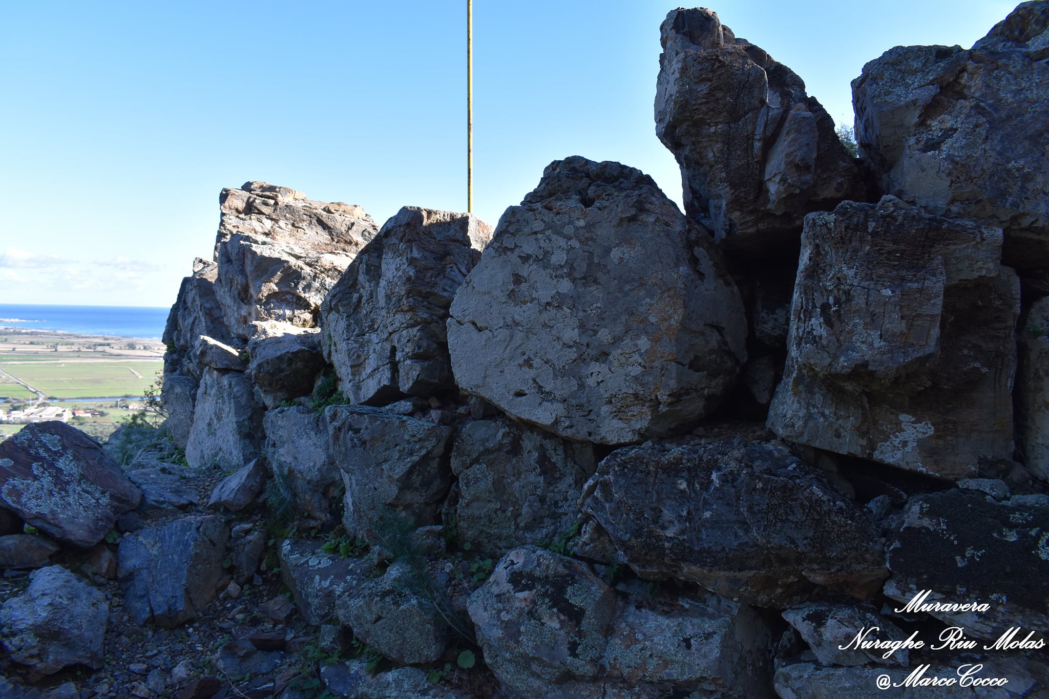 Nuraghe posto sull’approdo doppio e sicuro di Porto Pirastru. Attualmente restano le mura e un battuto di cemento di una installazione recente.
