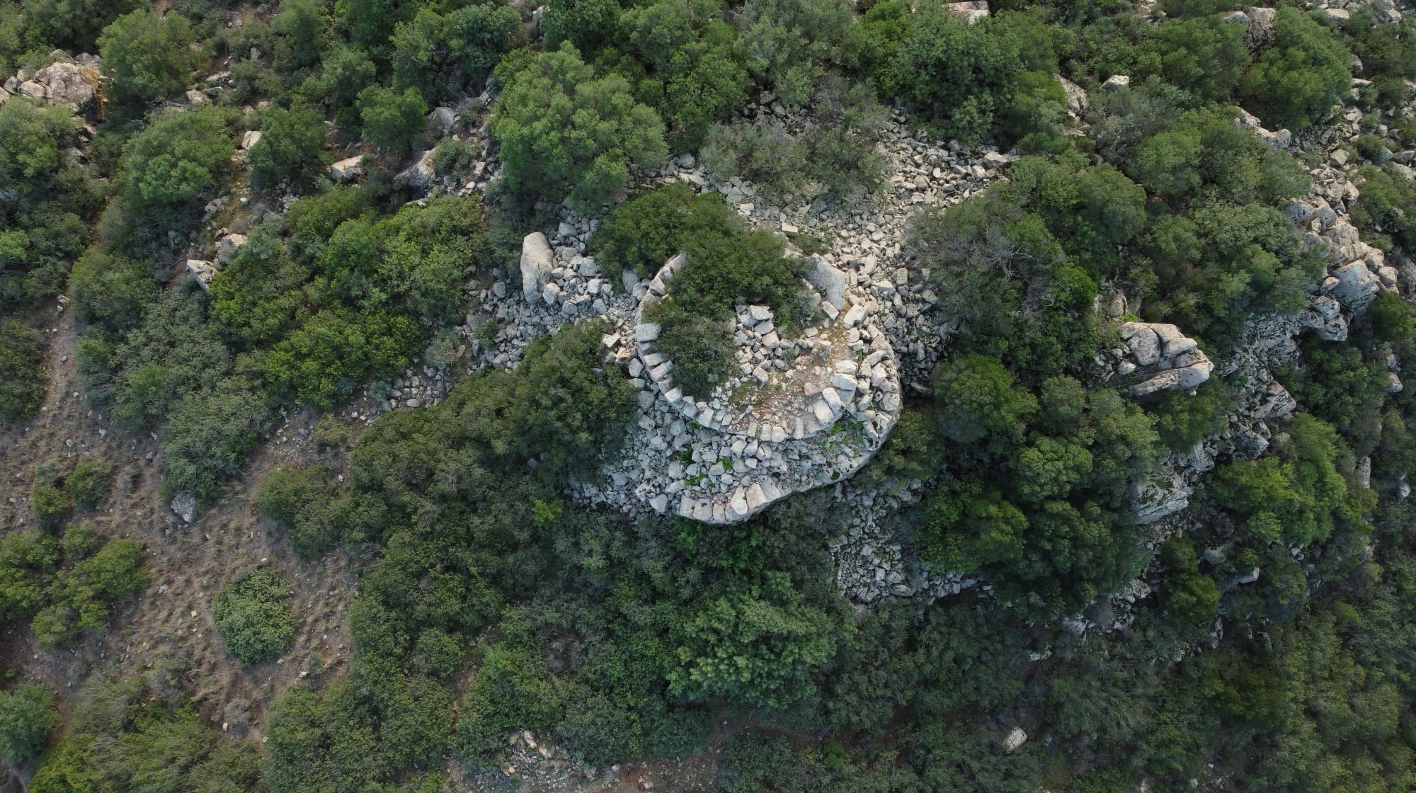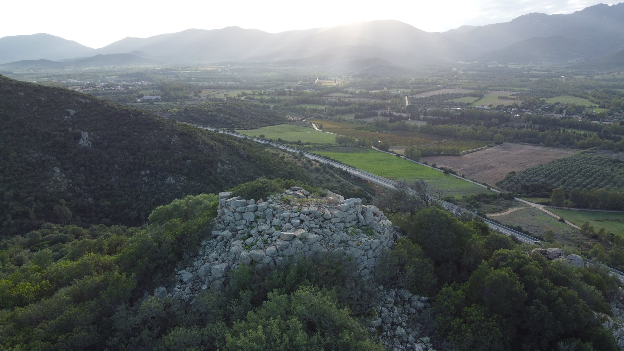 Realizzato su una collinetta collegata al complesso di “Bruncu Margiani” si trova a mt. 158 s.l.m. da cui si ha una visuale a 180° che va dal nuraghe “Masone Murtas” a Castiadas fino al nuraghe “Sa Spadula” a San Priamo;