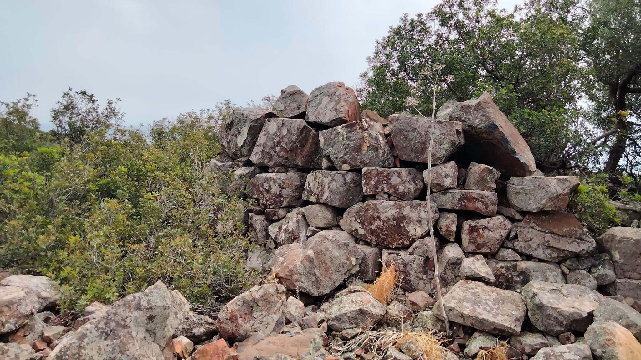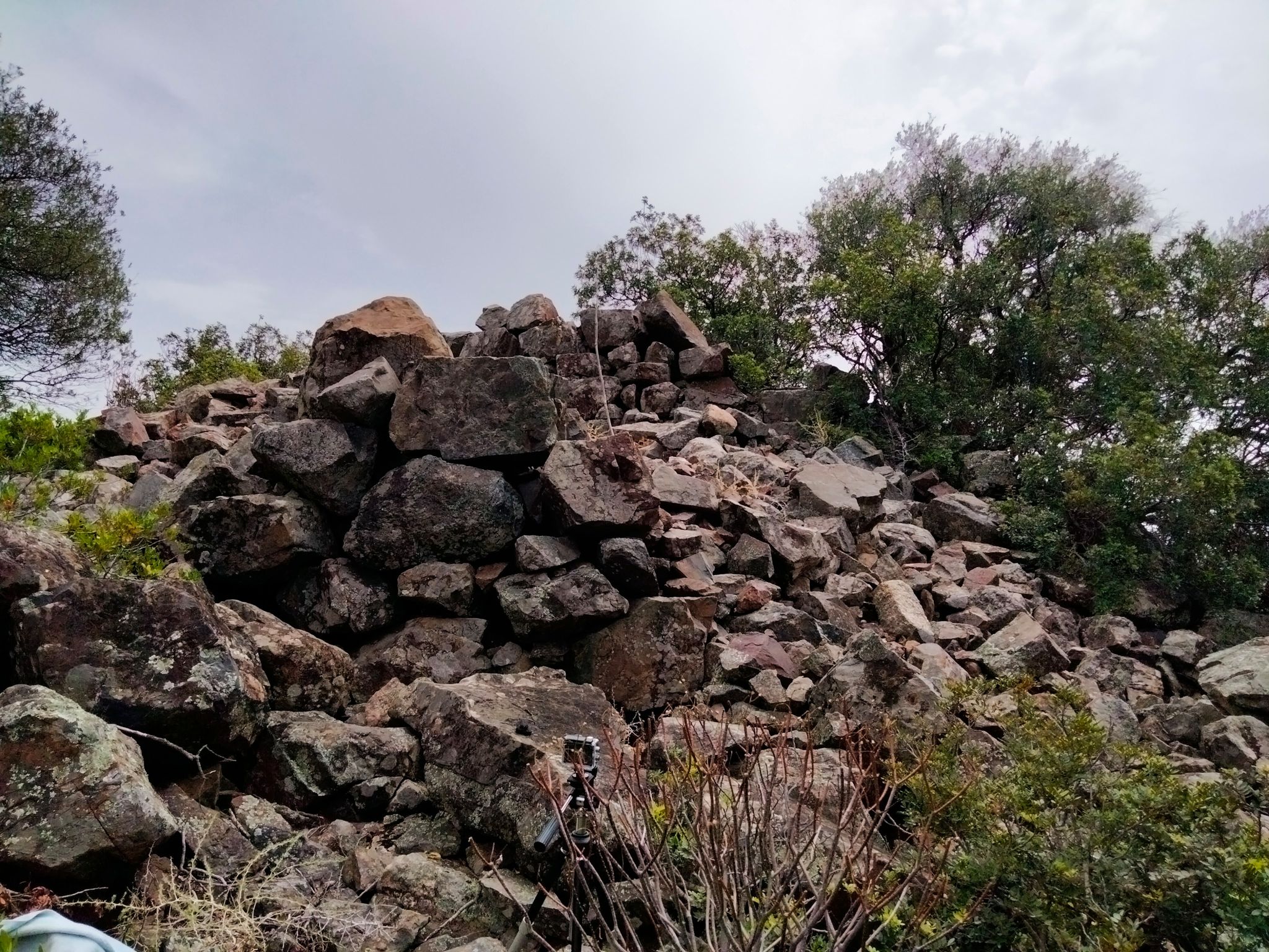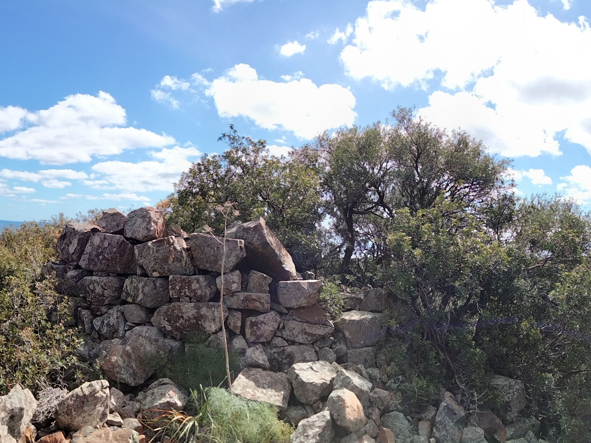 L’intero complesso superiore, quadrilobato con alcune torri semiquadrangolari, si sviluppa su un asse nordovest-sudest calcolato intorno ai 53 m ed un asse est-ovest di circa 20 – 25 m. La cinta muraria esterna si può seguire solo per la sua porzione orientale e per un piccolo tratto meridionale: si tratta di un’opera imponente con un largo spessore murario che andava a chiudere le lacune del bastione naturale di roccia già esistente. Il nuraghe è situato al confine tra i territori di Sinnai e di Muravera.