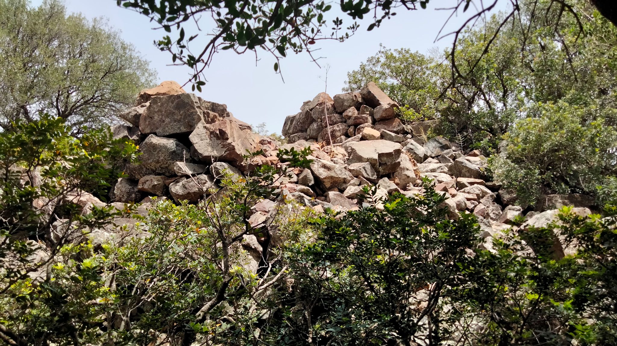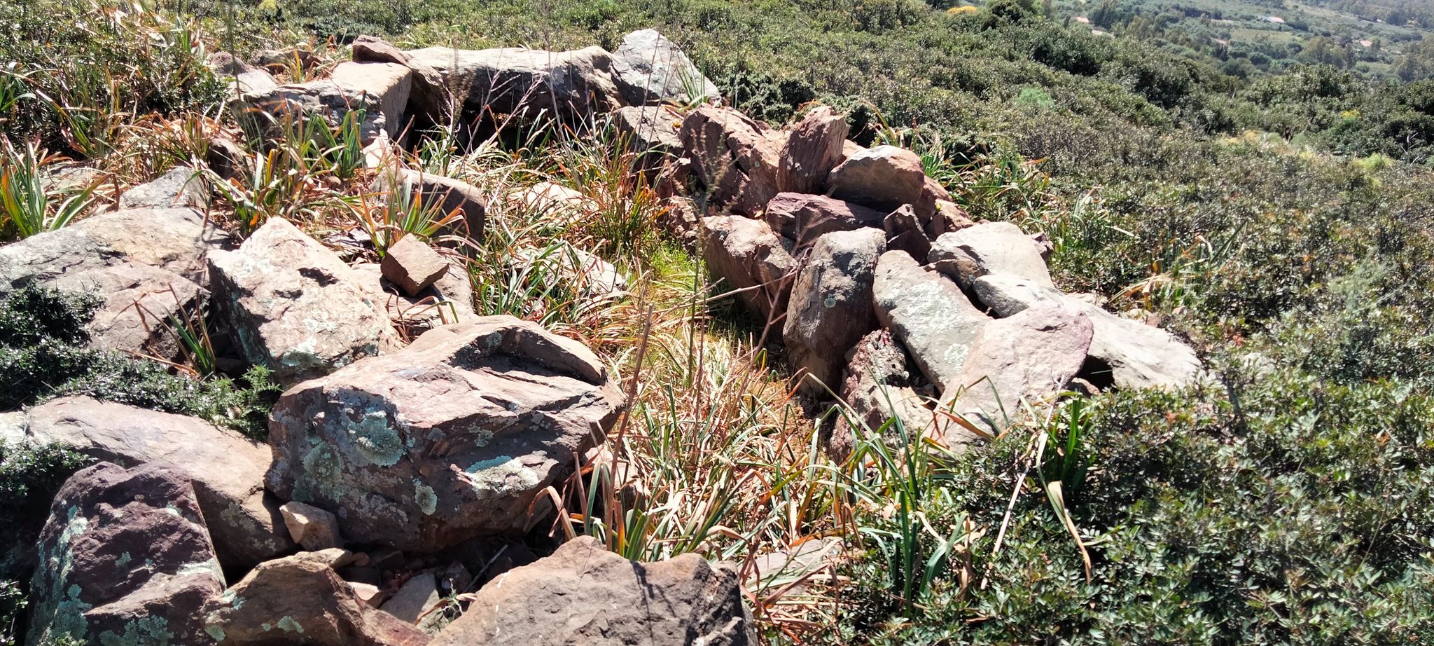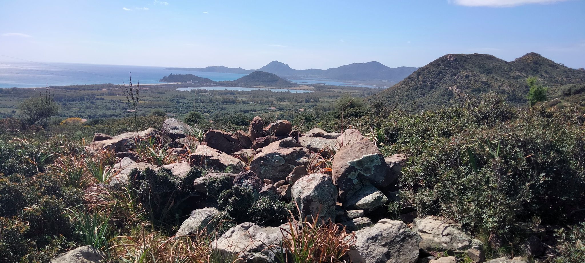 L’intero complesso superiore, quadrilobato con alcune torri semiquadrangolari, si sviluppa su un asse nordovest-sudest calcolato intorno ai 53 m ed un asse est-ovest di circa 20 – 25 m. La cinta muraria esterna si può seguire solo per la sua porzione orientale e per un piccolo tratto meridionale: si tratta di un’opera imponente con un largo spessore murario che andava a chiudere le lacune del bastione naturale di roccia già esistente. Il nuraghe è situato al confine tra i territori di Sinnai e di Muravera.