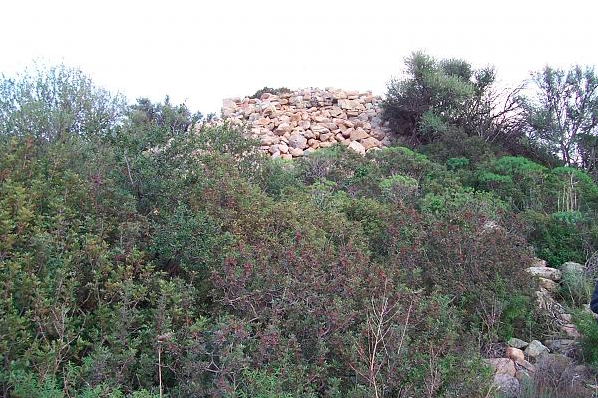 Queste strutture abitative non sono facilmente leggibili a causa del notevole stato di demolizione del complesso megalitico, che è stato accentuato, anche in modo naturale, dal rotolamento dei conci nel ripido pendio circostante.