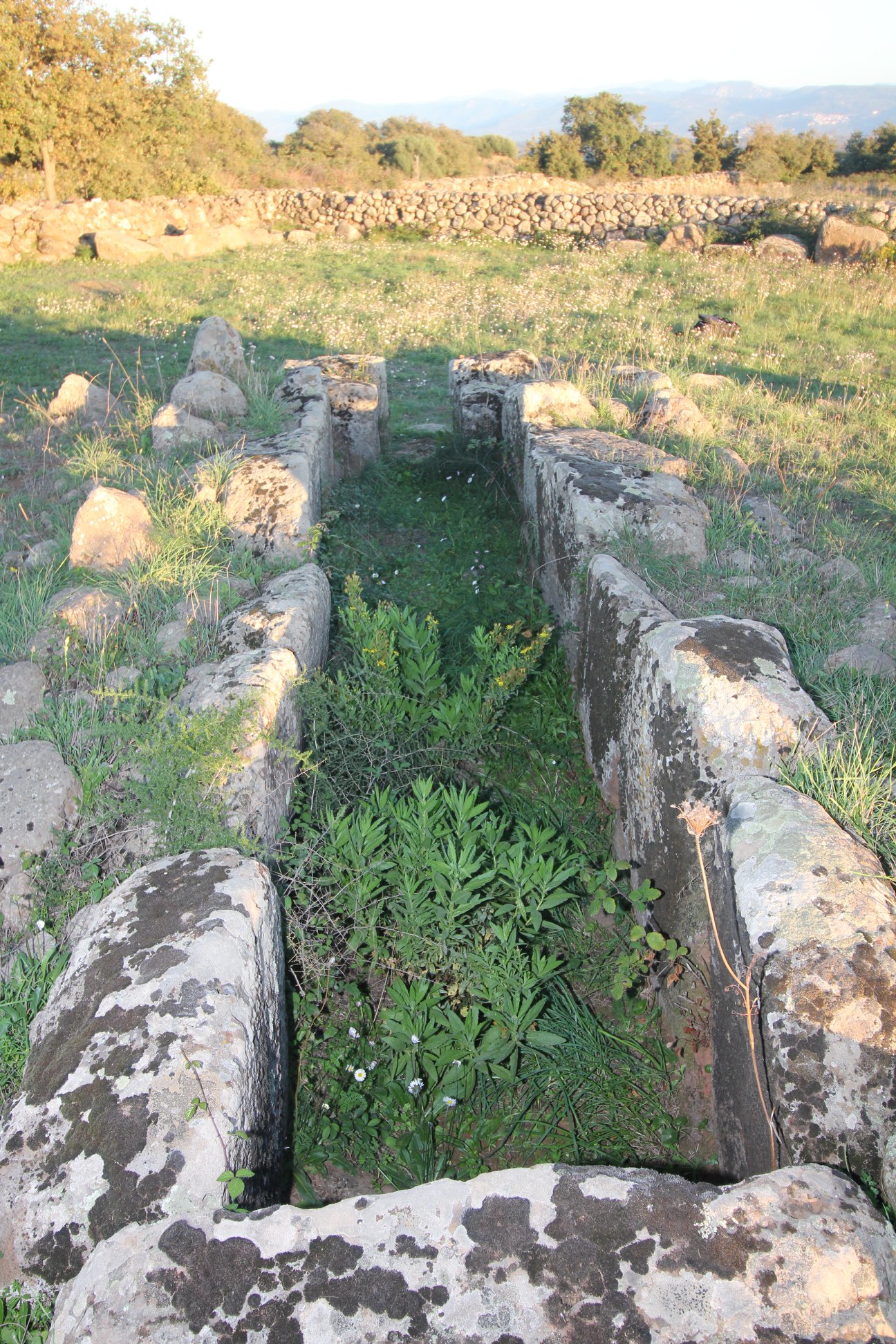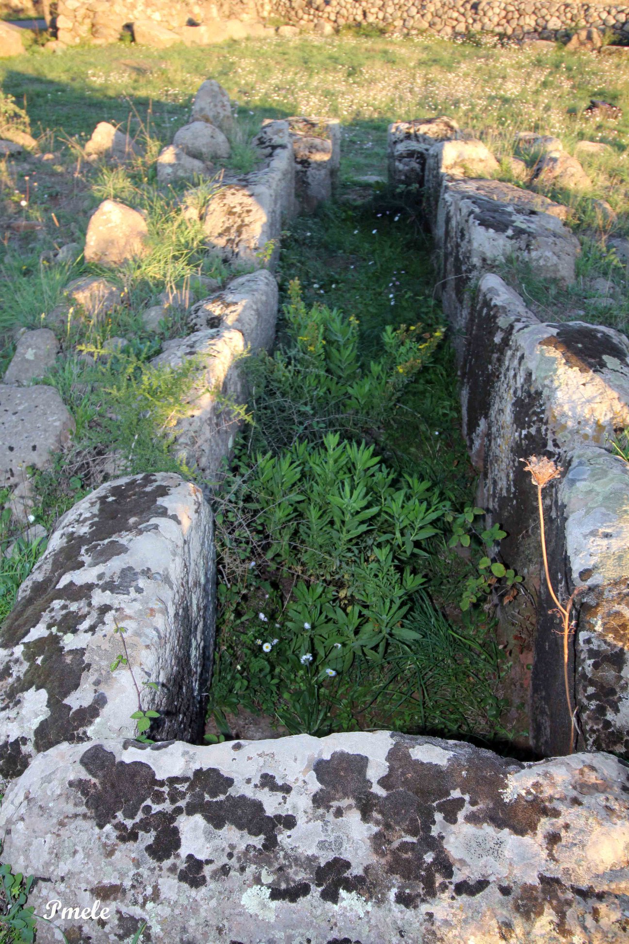 Sepoltura nuragica dolmeica di cui residua il corridoio tombale costituito da lastroni di basalto ben rifiniti, senza stele.