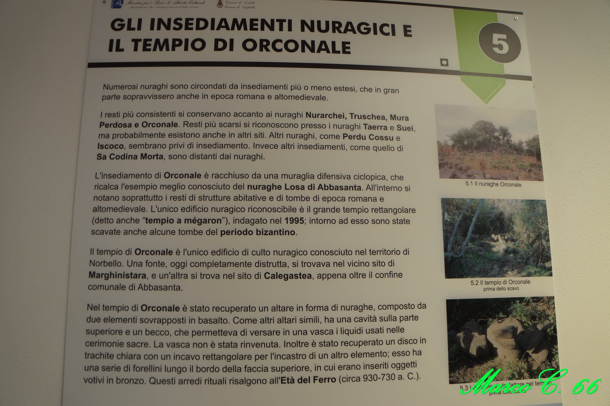 Il complesso di Orconale possiede un bastione turrito con cortile. La torre principale presenta andito ogivale. Tutt’intorno i resti di un grande insediamento nuragico con il tempio a megaron dove fu rinvenuto un modello di nuraghe forse appartenente a una vasca analoga a quella di Su Monte Sorradile