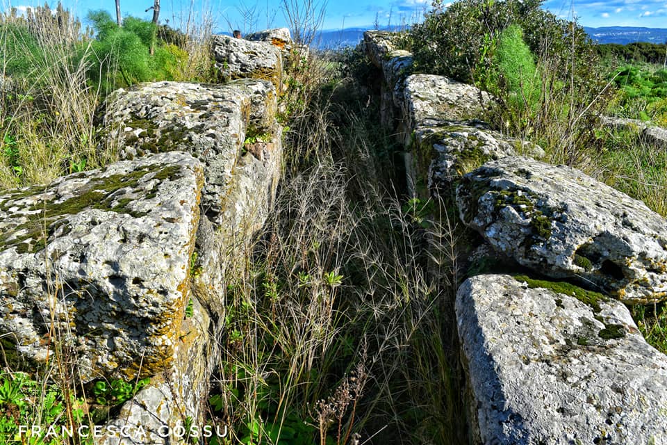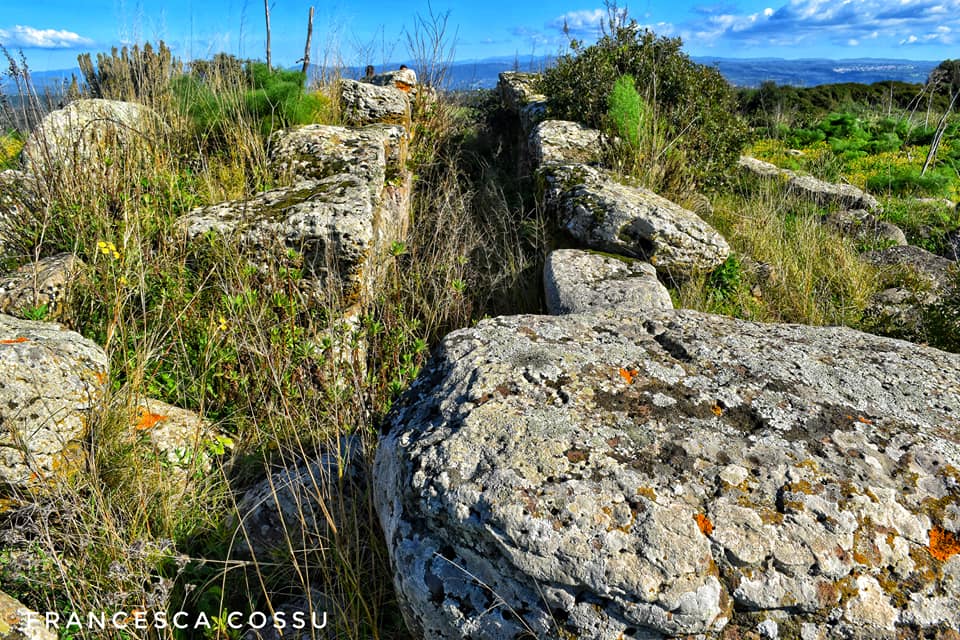 Quel che resta di una Tomba dei Giganti dolmenica completamente diroccata di cui restano soprattutto gli elementi verticali e i basamenti di contorno