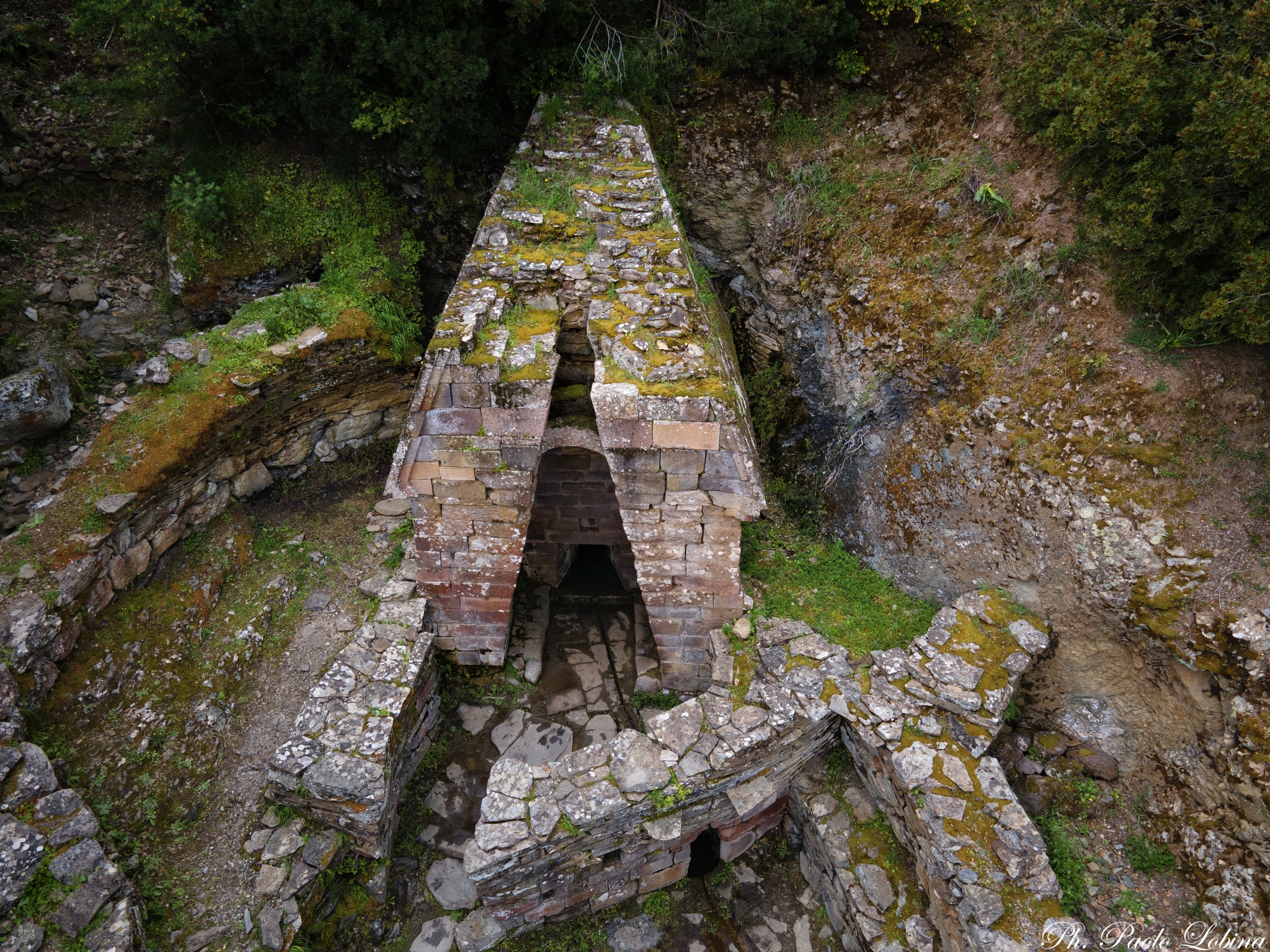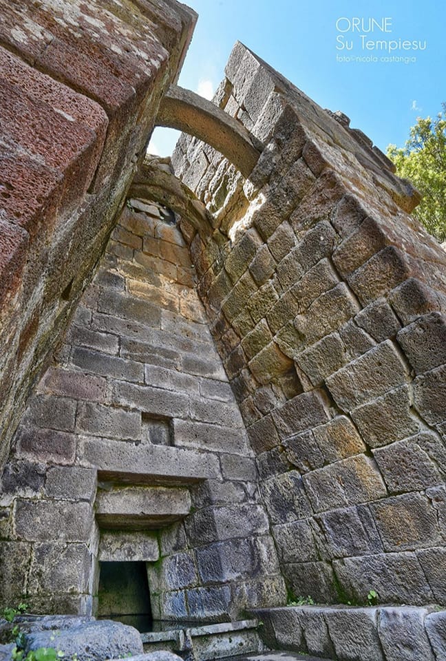 Il tempio è stato realizzato in opera isodoma, ossia con blocchi di basalto magistralmente squadrati e lavorati all’occorrenza con appropriata inclinazione. Le rocce presenti nel territorio circostante sono composte prevalentemente da scisti o da graniti, e la roccia vulcanica utilizzata è stata trasportata nel sito da località piuttosto distanti, probabilmente dal territorio di Dorgali.