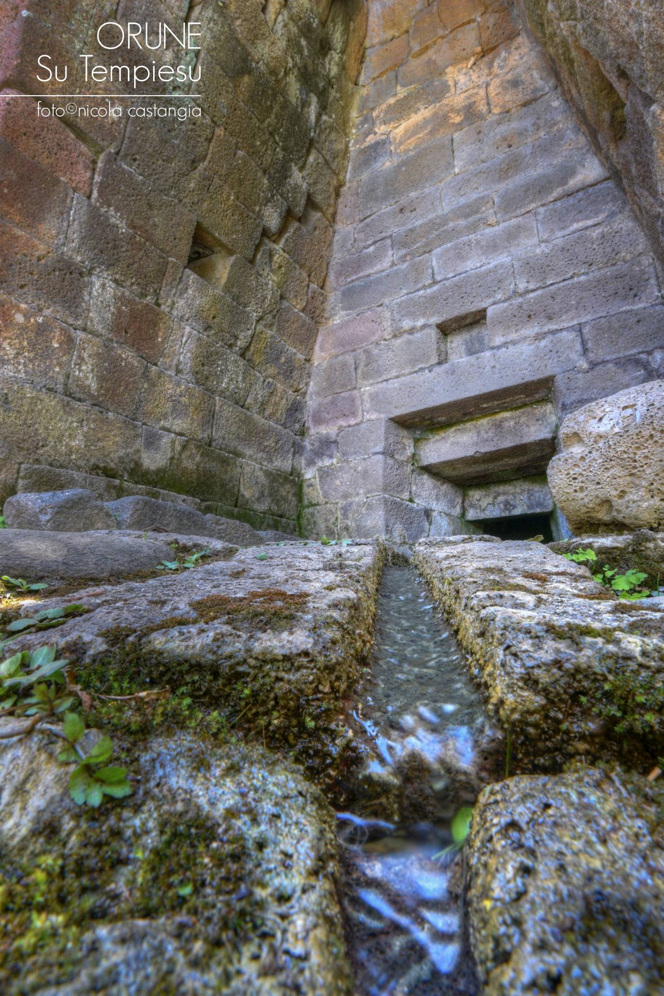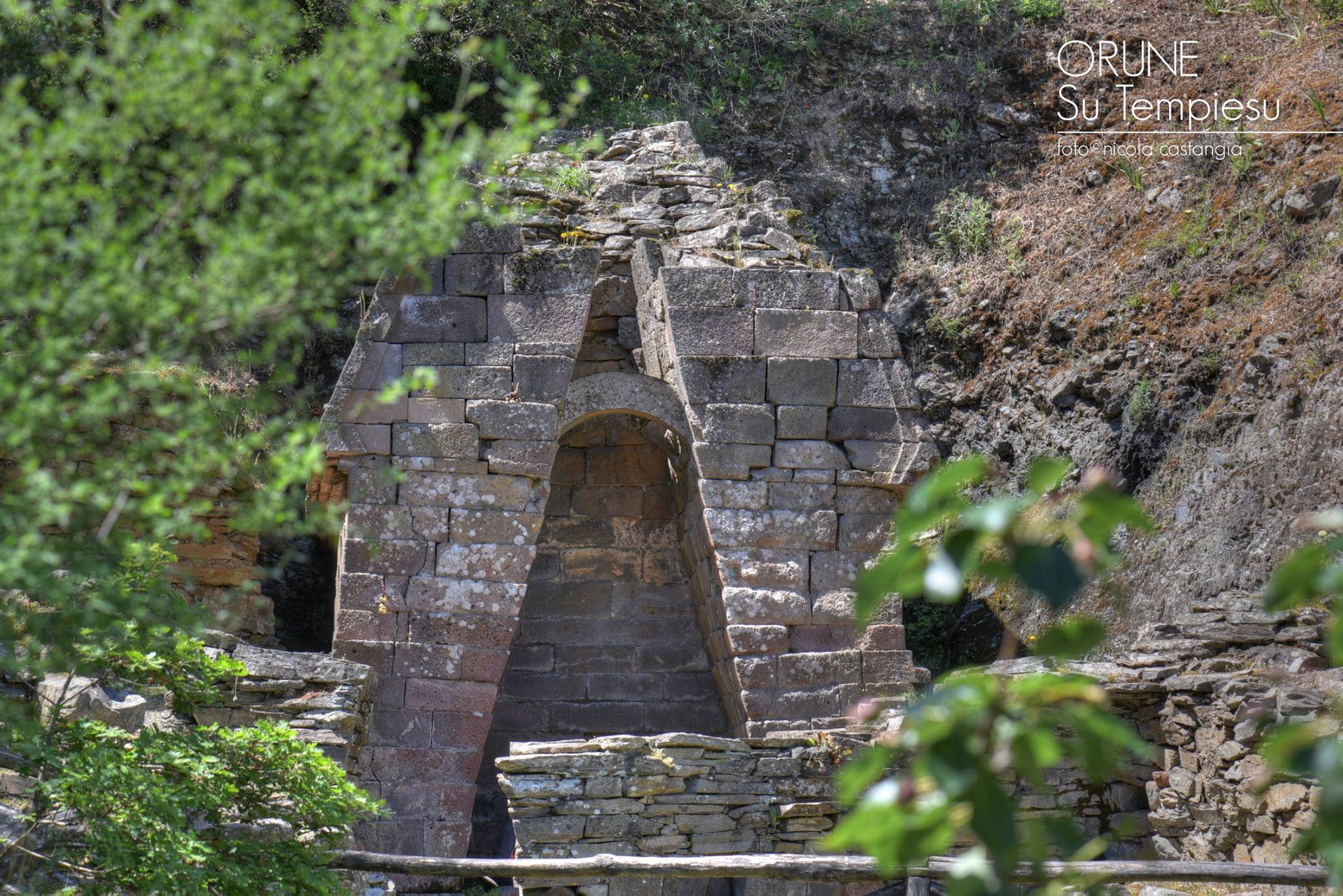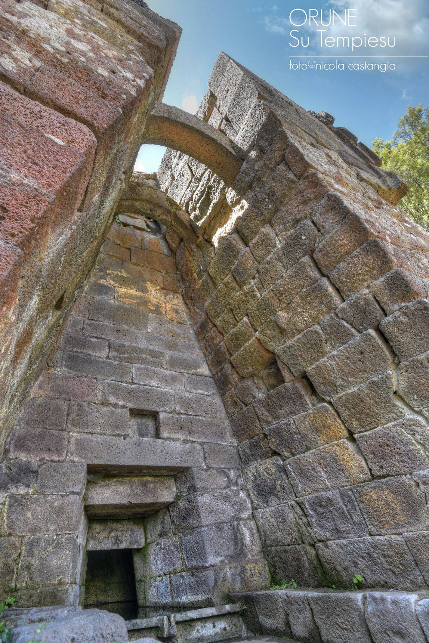 Il tempio è stato realizzato in opera isodoma, ossia con blocchi di basalto magistralmente squadrati e lavorati all’occorrenza con appropriata inclinazione. Le rocce presenti nel territorio circostante sono composte prevalentemente da scisti o da graniti, e la roccia vulcanica utilizzata è stata trasportata nel sito da località piuttosto distanti, probabilmente dal territorio di Dorgali.