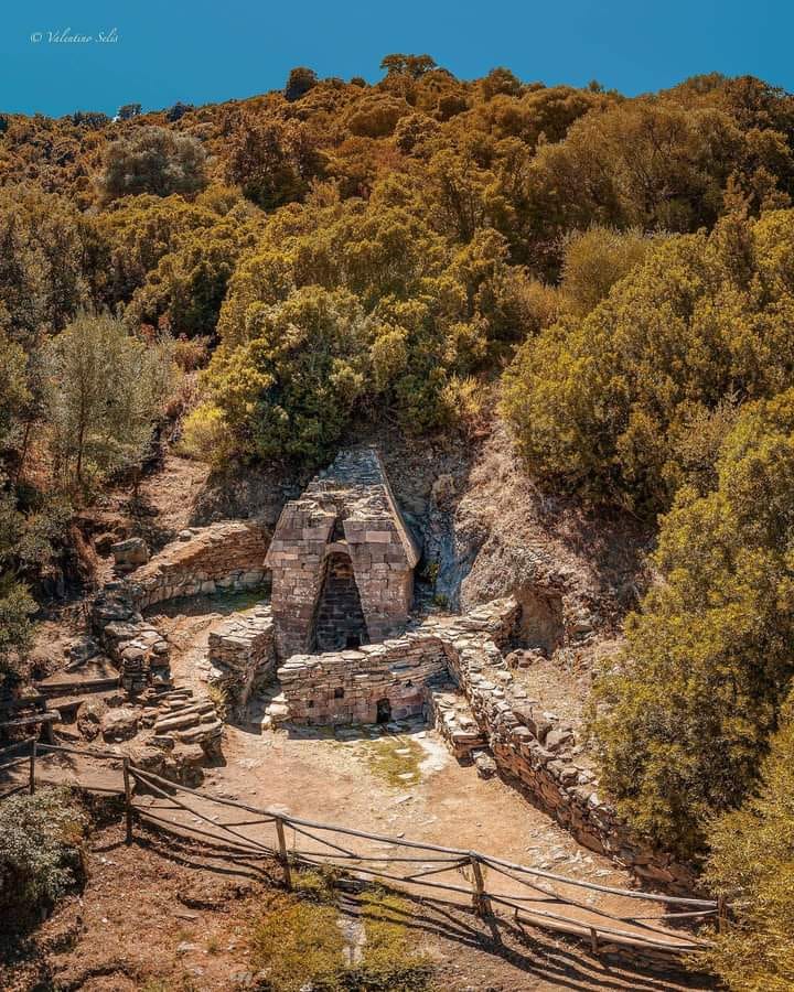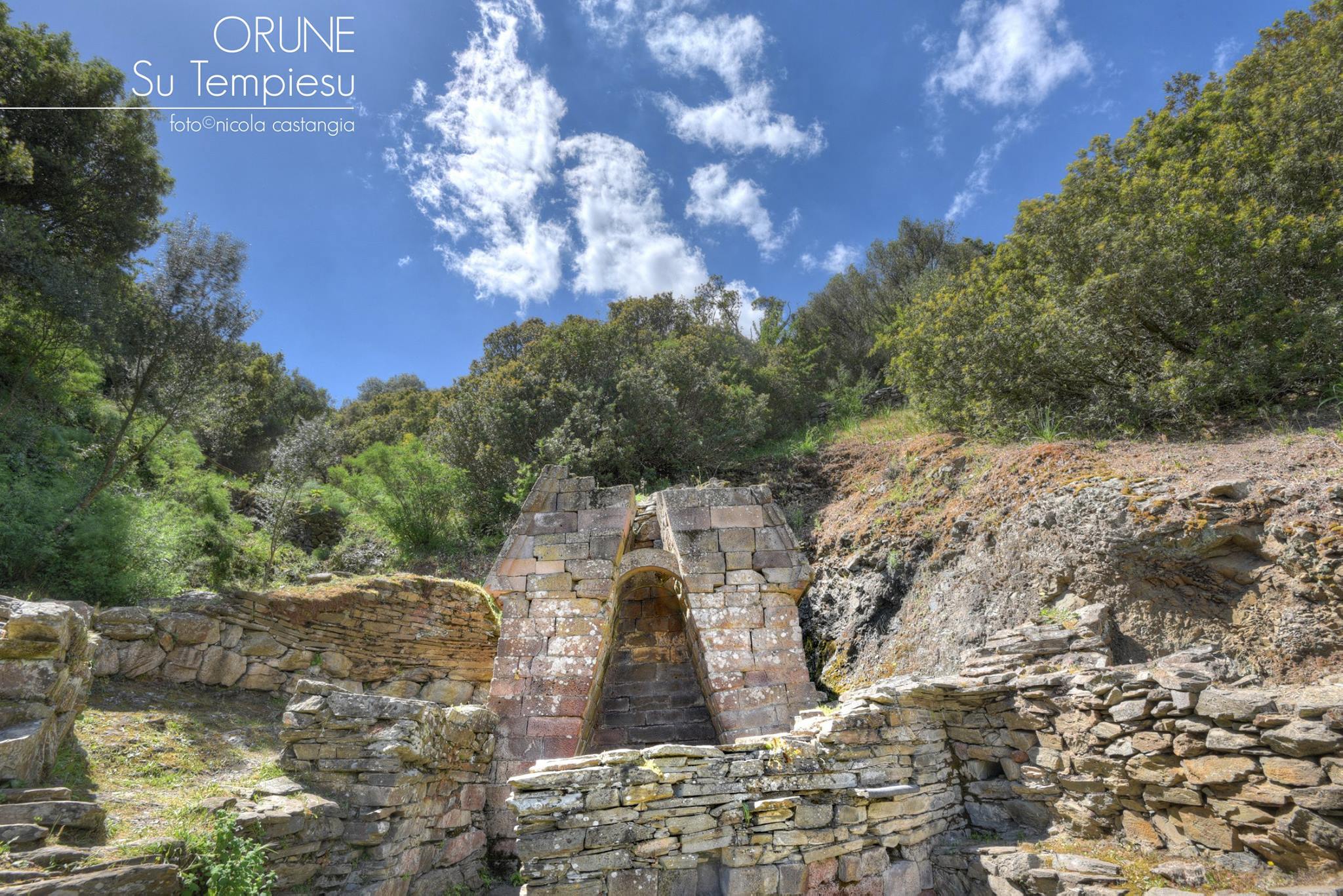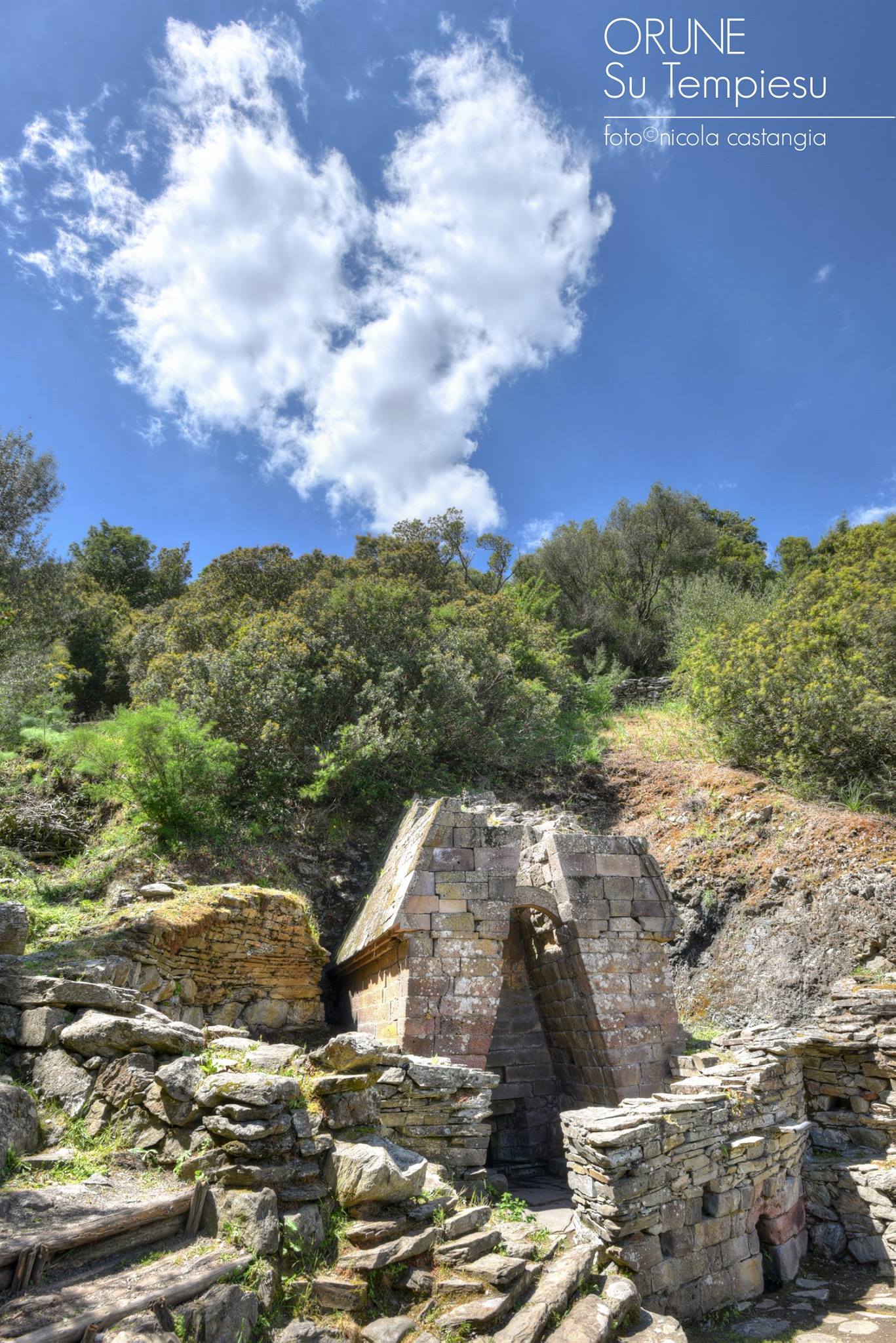 Il tempio è stato realizzato in opera isodoma, ossia con blocchi di basalto magistralmente squadrati e lavorati all’occorrenza con appropriata inclinazione. Le rocce presenti nel territorio circostante sono composte prevalentemente da scisti o da graniti, e la roccia vulcanica utilizzata è stata trasportata nel sito da località piuttosto distanti, probabilmente dal territorio di Dorgali.