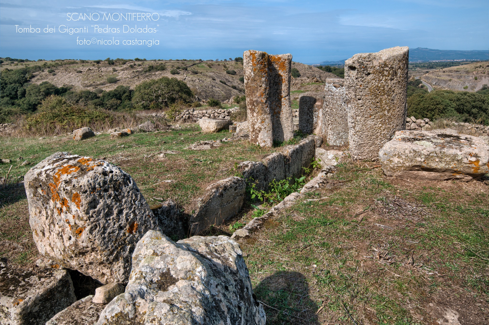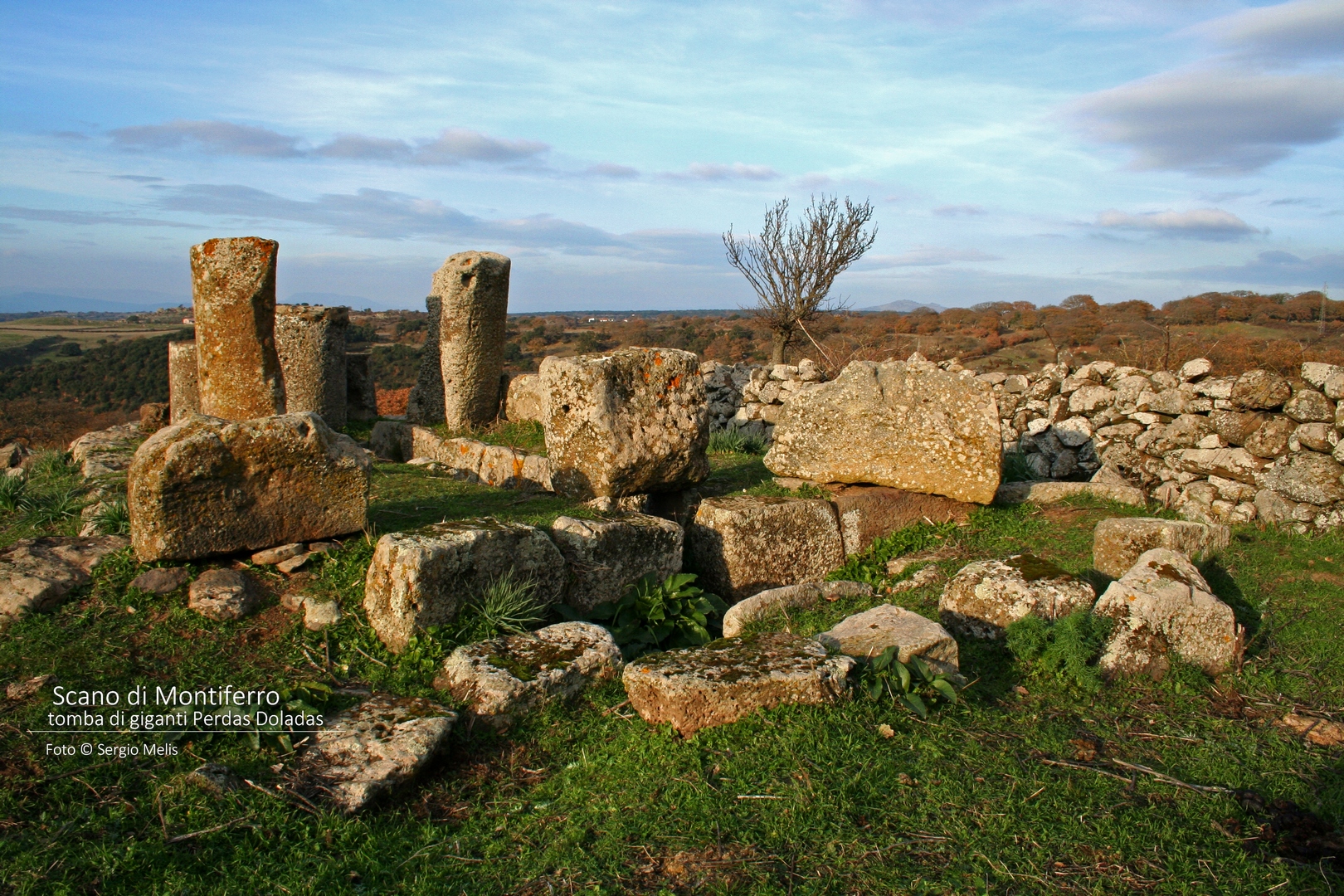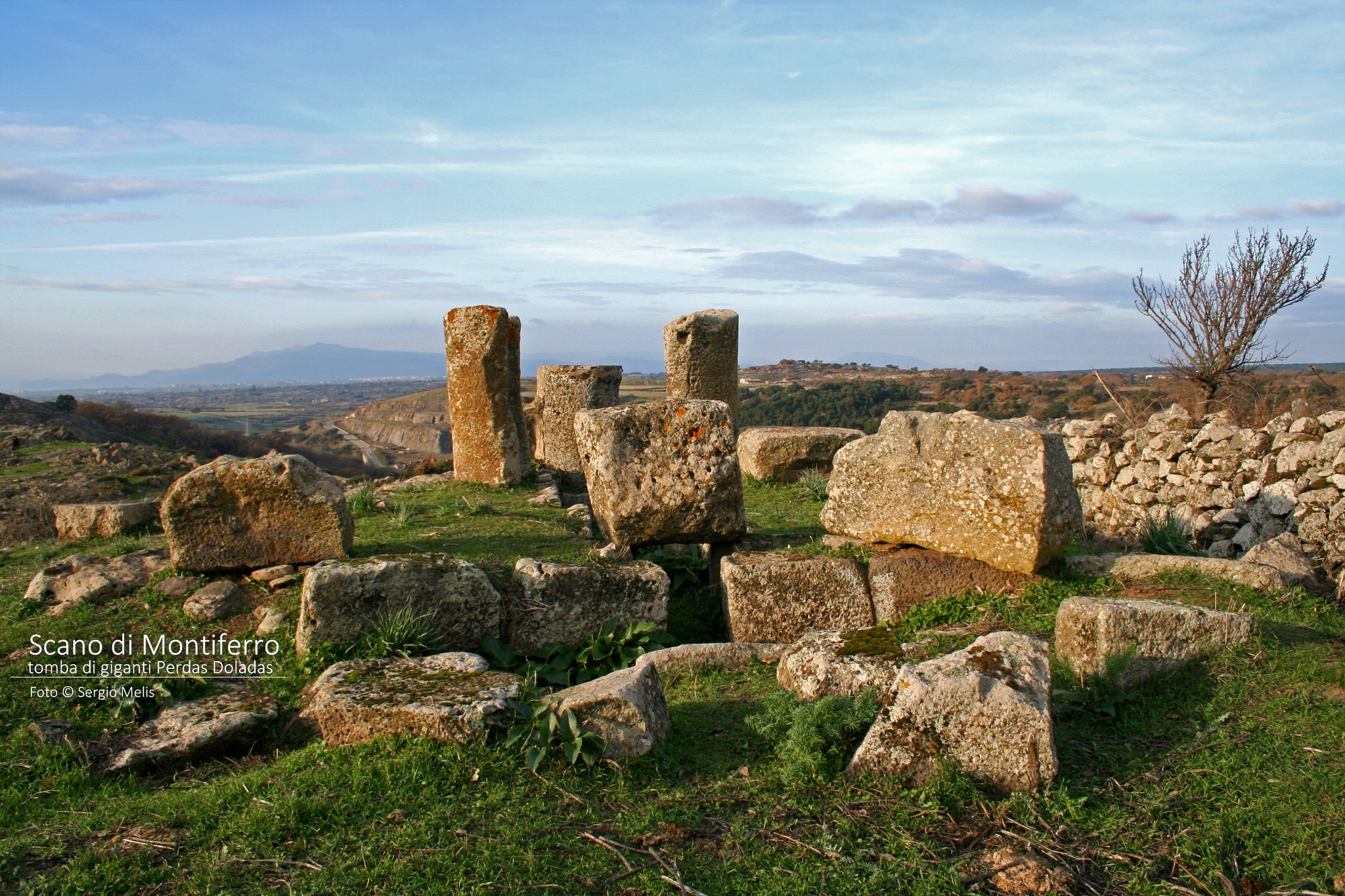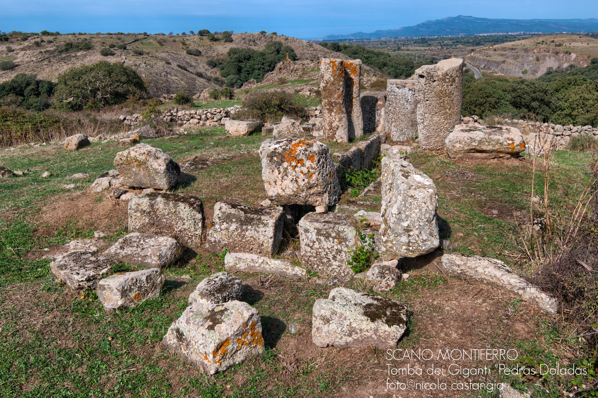 La tomba è costruita in opera isodoma con fronte a filari. Il corpo tombale, tozzo e simmetrico, absidato, si rastrema leggermente ad ampia esedra semicircolare marginata da sedili, esposta a SSE. Del monumento, in basalto del luogo, si conservano il filare di base del vano funerario, parte delle lastre di base del prospetto e del bancone sedile e buona parte della copertura estradossale ad archi monolitici. (comune.scanodimontiferro.or)