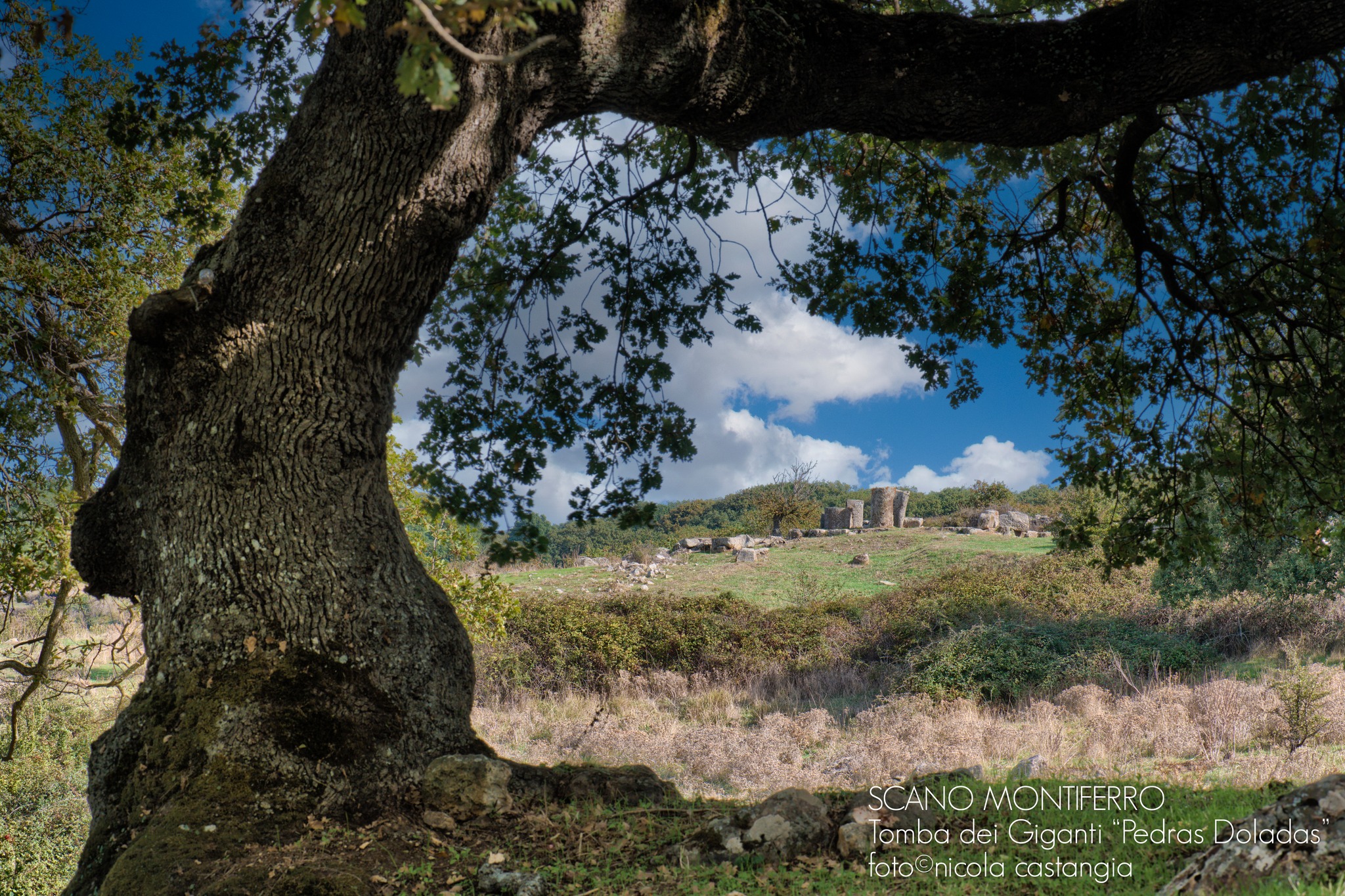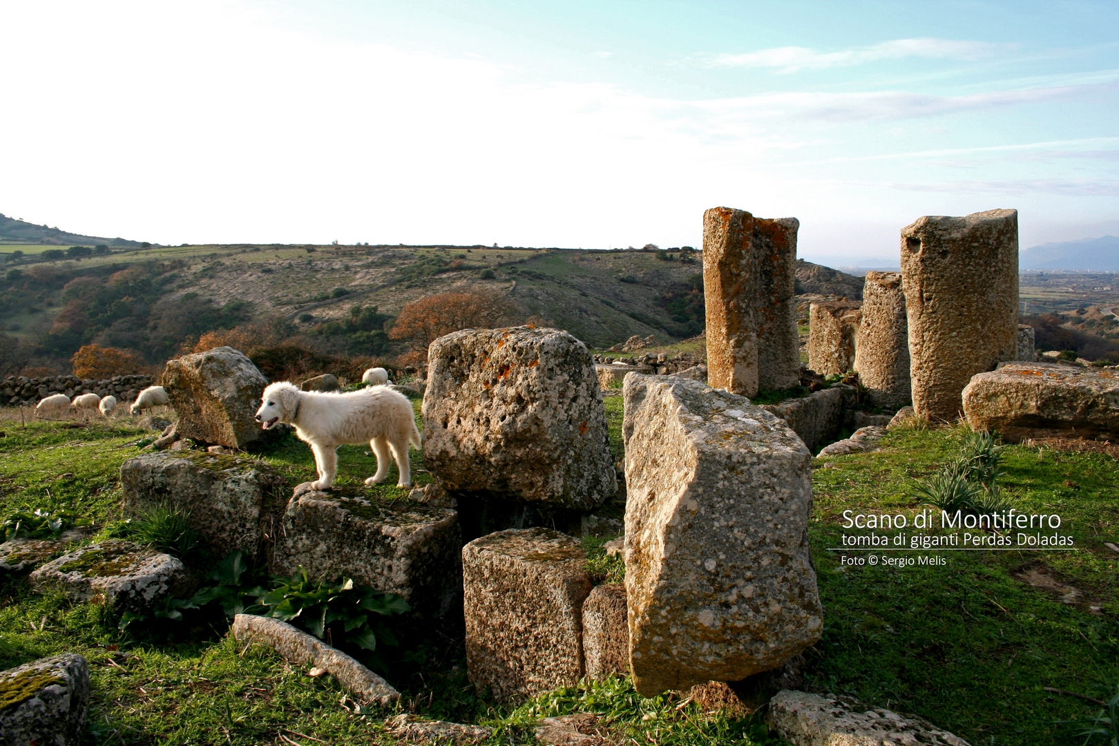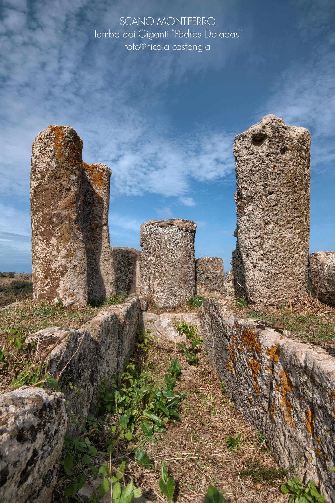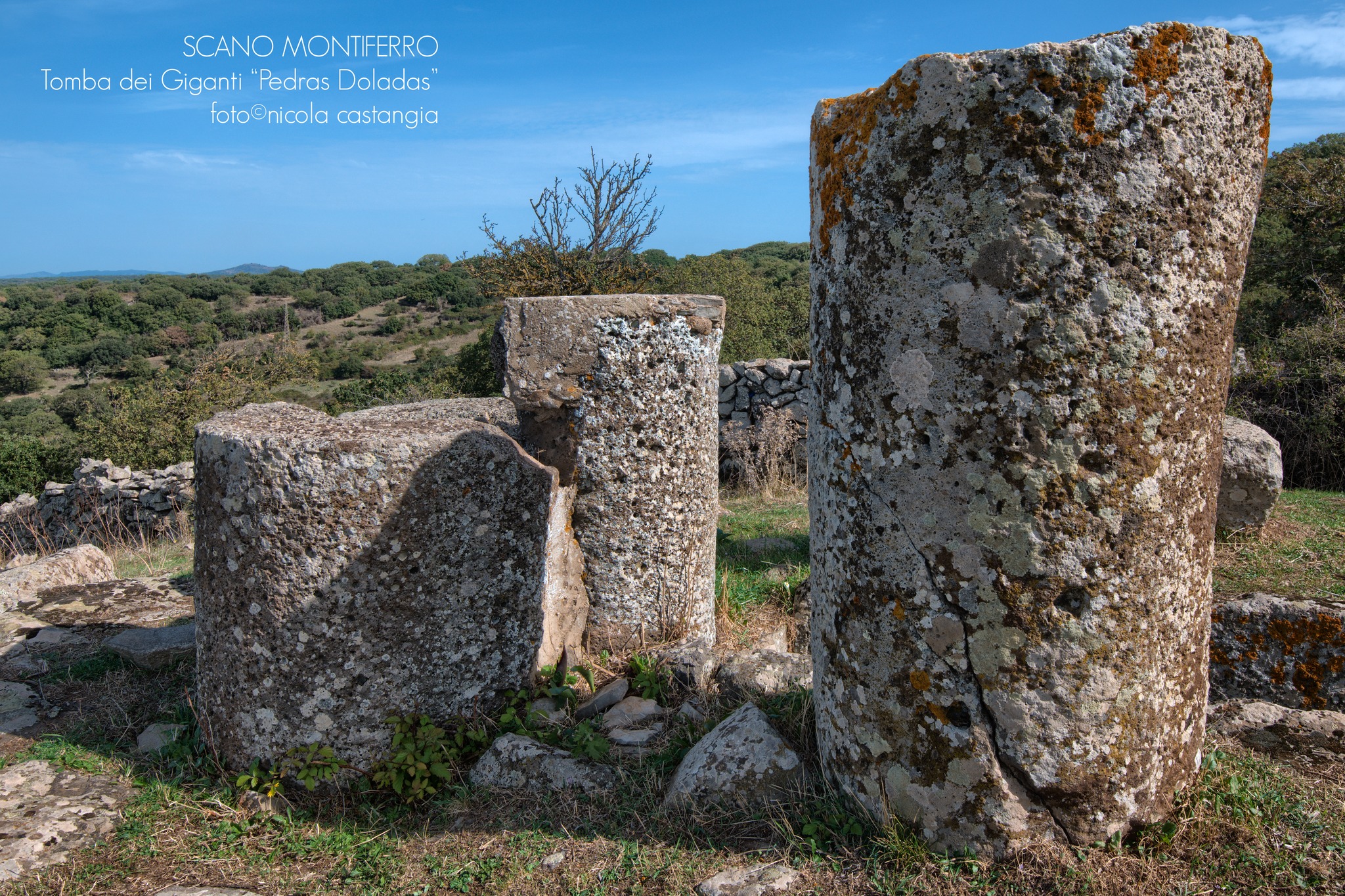 La tomba è costruita in opera isodoma con fronte a filari. Il corpo tombale, tozzo e simmetrico, absidato, si rastrema leggermente ad ampia esedra semicircolare marginata da sedili, esposta a SSE. Del monumento, in basalto del luogo, si conservano il filare di base del vano funerario, parte delle lastre di base del prospetto e del bancone sedile e buona parte della copertura estradossale ad archi monolitici. (comune.scanodimontiferro.or)