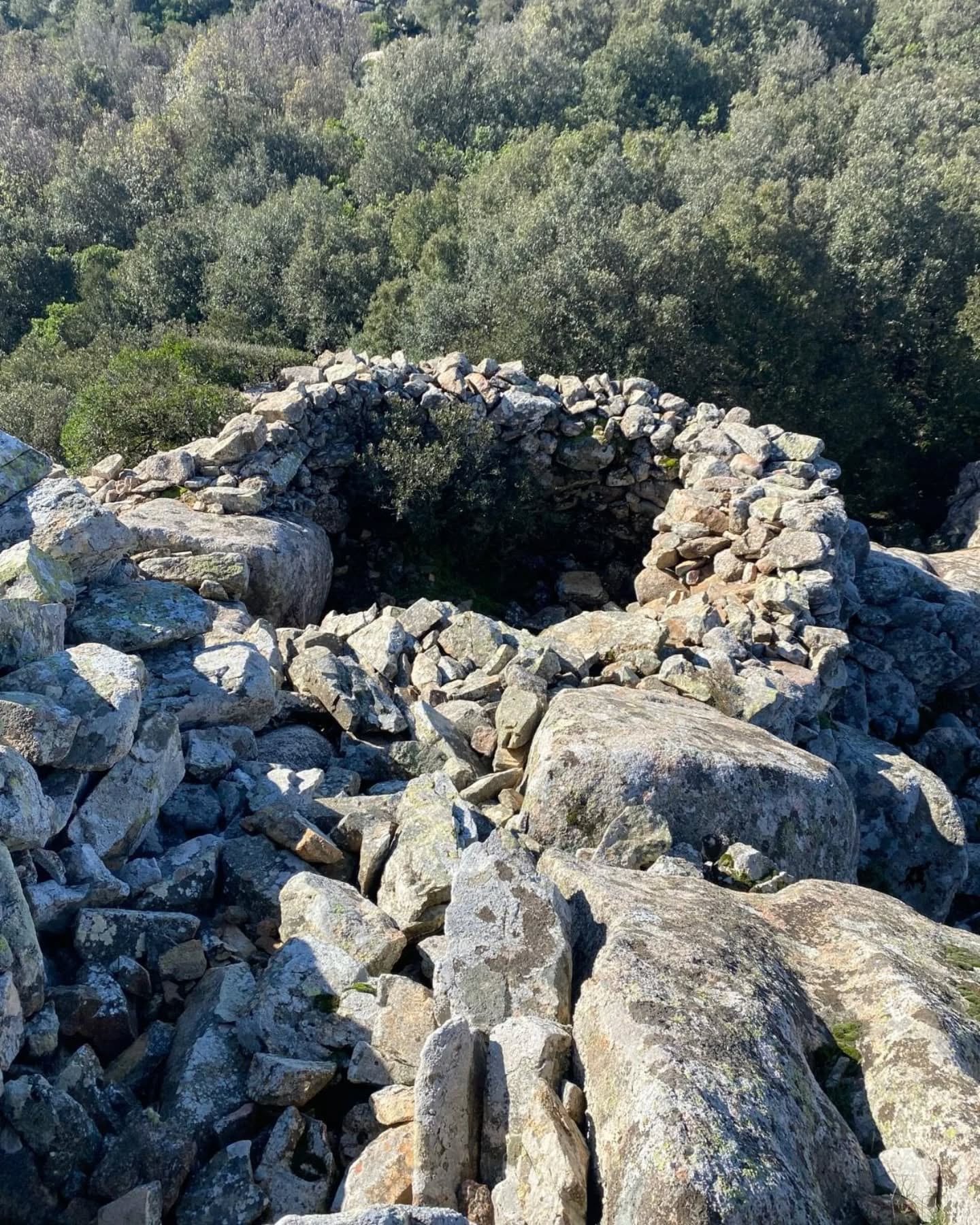 Il nuraghe è probabilmente in Comune di Muravera. L’intero complesso superiore, quadrilobato con alcune torri semiquadrangolari, si sviluppa su un asse nordovest-sudest calcolato intorno ai 53 m ed un asse est-ovest di circa 20 – 25 m. La cinta muraria esterna si può seguire solo per la sua porzione orientale e per un piccolo tratto meridionale: si tratta di un’opera imponente con un largo spessore murario che andava a chiudere le lacune del bastione naturale di roccia già esistente.