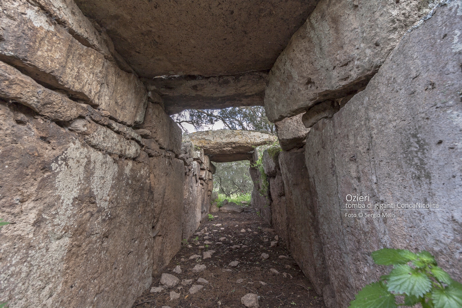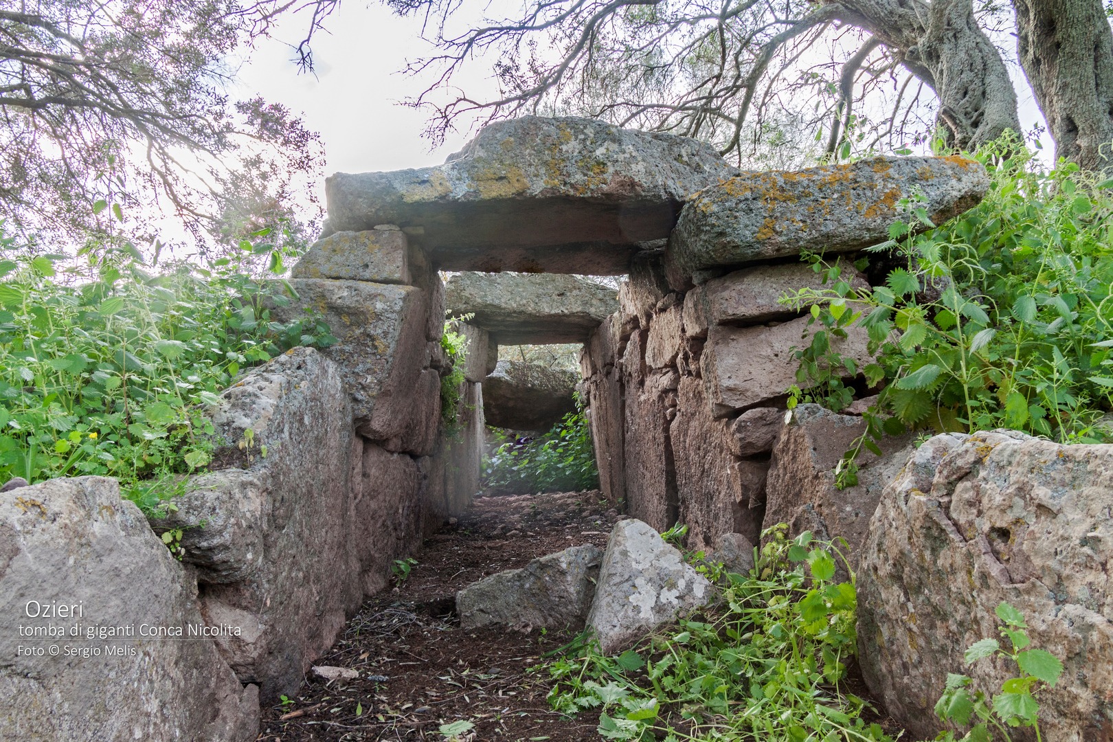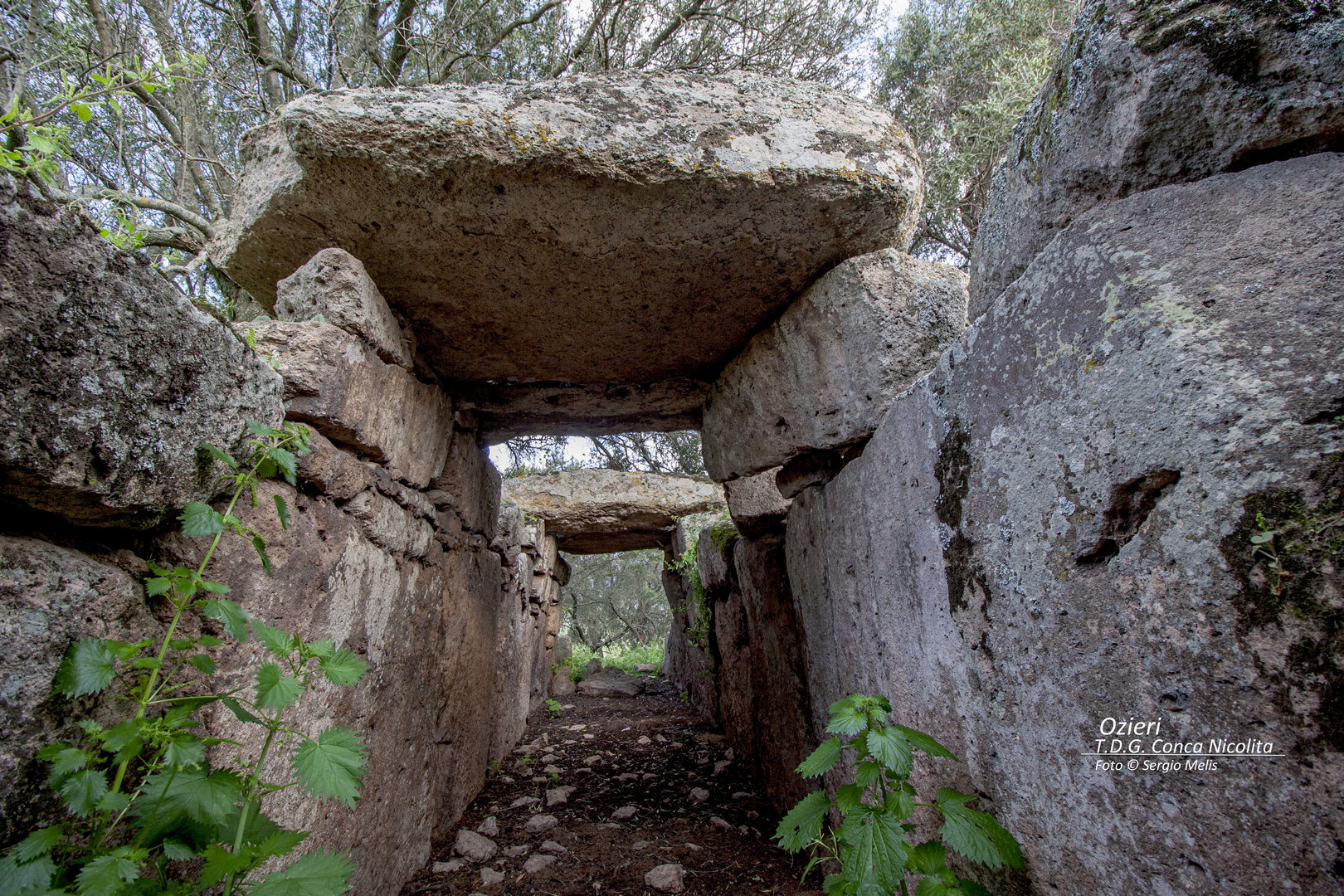 Nell’agro di Ozieri, dislocate a poca distanza l’una dall’altra, si possono ammirare ben 4 tombe dei giganti. La sepoltura preservata meglio è di tipo dolmenico, conserva il corridoio funerario con lastroni enormi nel basamento e i conci di chiusura della piattabanda, anche una parte dell’esedra. Delle altre tre sepolture si possono osservare i primi filari del corridoio, ed una in particolare conserva i primi filari della facciata.