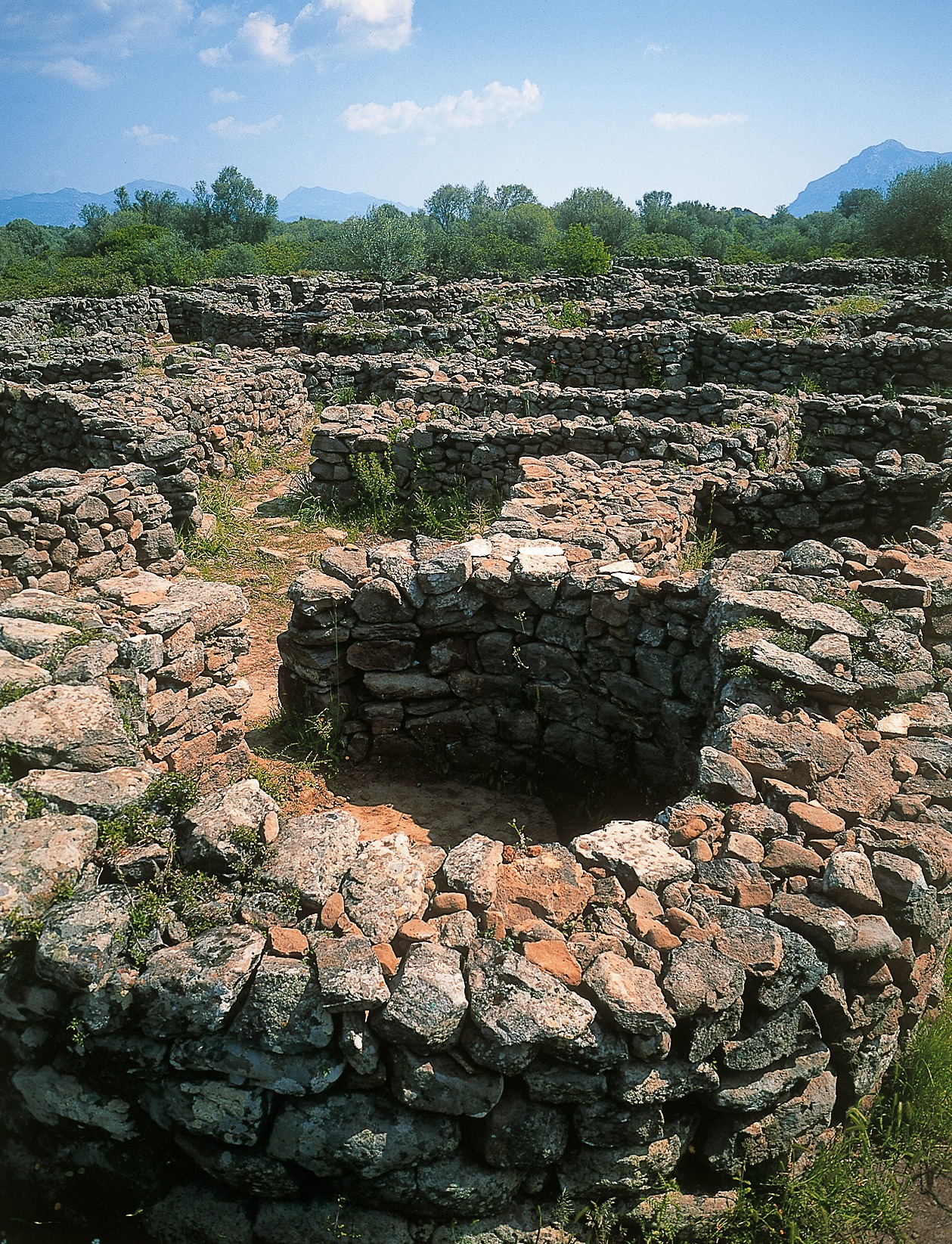 Il complesso, uno dei più importanti e meglio conservati della Sardegna nuragica, comprende un villaggio-santuario con circa cento capanne, due tempietti con annessi recinti e due sepolture megalitiche. Il villaggio è costituito da capanne isolate e da aggregati di capanne gravitanti su spazi centrali. Si contano sei raggruppamenti, alcuni dotati di pozzi-cisterna e pozzetti raccordati a condotte per l”acqua. Le capanne, circolari, sono realizzate a secco con filari irregolari