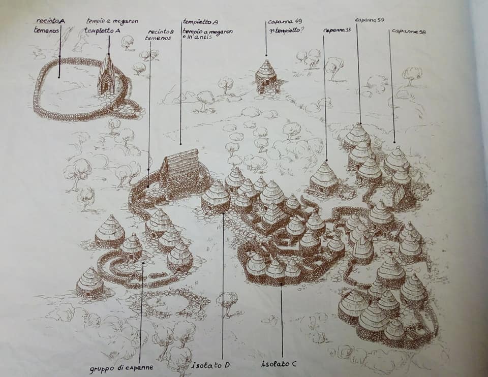 Il complesso, uno dei più importanti e meglio conservati della Sardegna nuragica, comprende un villaggio-santuario con circa cento capanne, due tempietti con annessi recinti e due sepolture megalitiche. Il villaggio è costituito da capanne isolate e da aggregati di capanne gravitanti su spazi centrali. Si contano sei raggruppamenti, alcuni dotati di pozzi-cisterna e pozzetti raccordati a condotte per l”acqua. Le capanne, circolari, sono realizzate a secco con filari irregolari