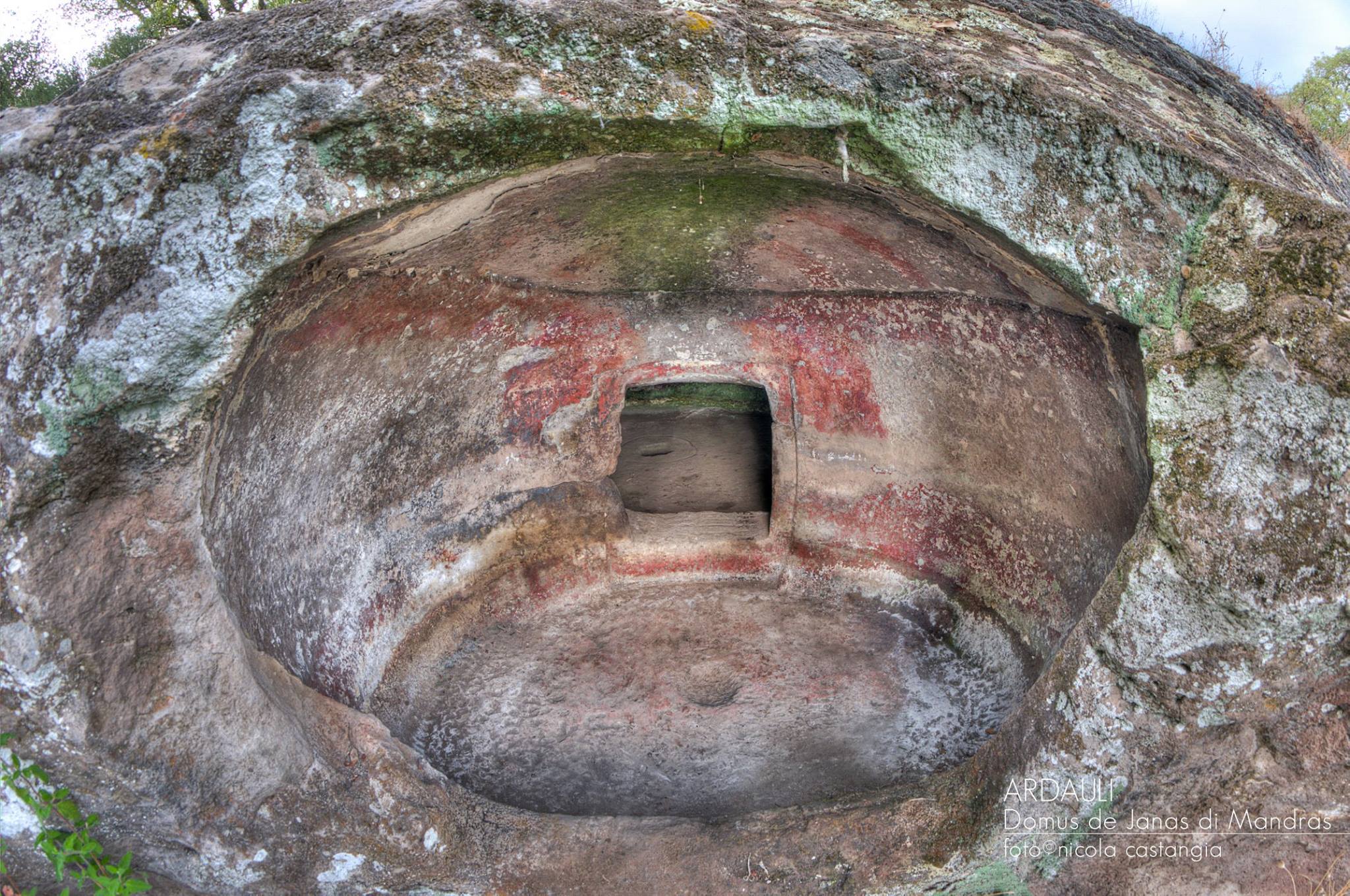 Questa tomba, scavata nella trachite, mostra – nell’anticella e nel vano principale – il soffitto dipinto in modo da riprodurre il tetto di una capanna secondo due schemi tipologici differenti. Particolare interesse riveste, inoltre, il motivo a “reticolato” presente lungo le pareti della cella principale.