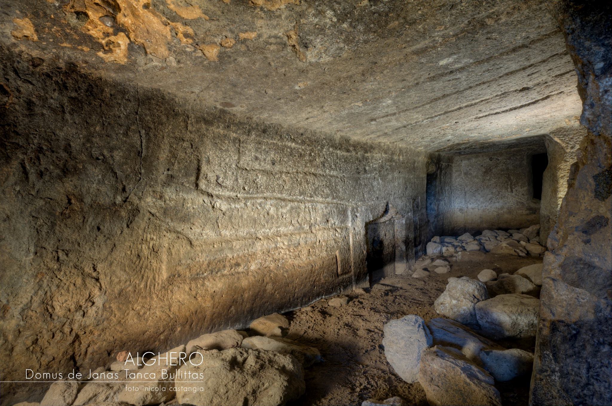 La necropoli è costituita da 18 domus de janas, scavate su tre livelli orizzontali sovrapposti a partire dalla linea basale del costone, per un’altezza massima di m 3 sul piano di campagna. I materiali rinvenuti nel corso degli scavi hanno consentito di datare le sepolture ad un periodo compreso tra il Neolitico finale (cultura di San Michele, 3200-2800 a.C.) e il Bronzo antico (cultura di Bonnanaro, 1800-1600 a.C.).