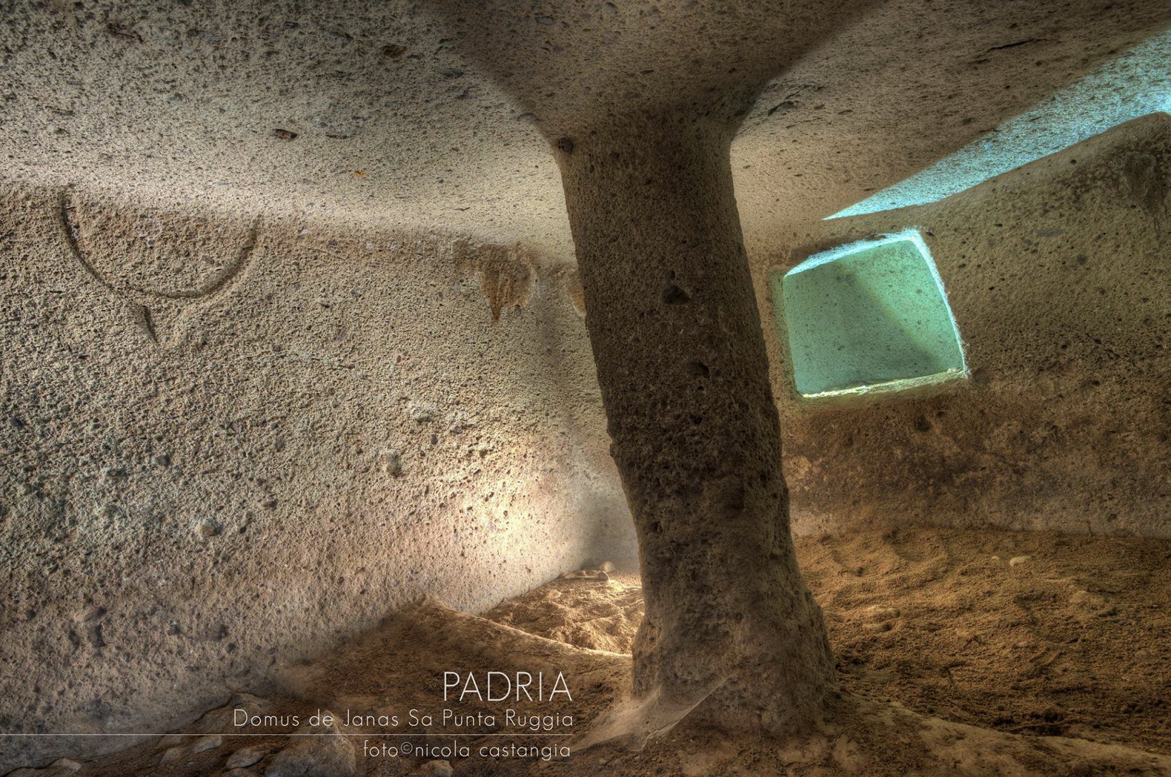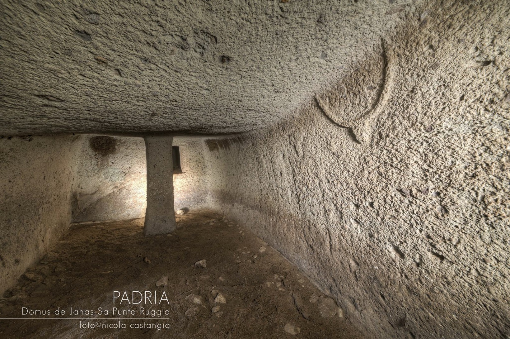 La roccia spaccata, uno spazio stretto e basso, buio e polveroso, che ti costringe ad inginocchiarti come a ricordarti che ti trovi in un luogo sacro. Ma e quando accendi la luce che tutto si illumina, la roccia prende forma, e gli antichi simboli ti rapiscono facendoti viaggiare nel tempo. (Giovanni Sotgiu)