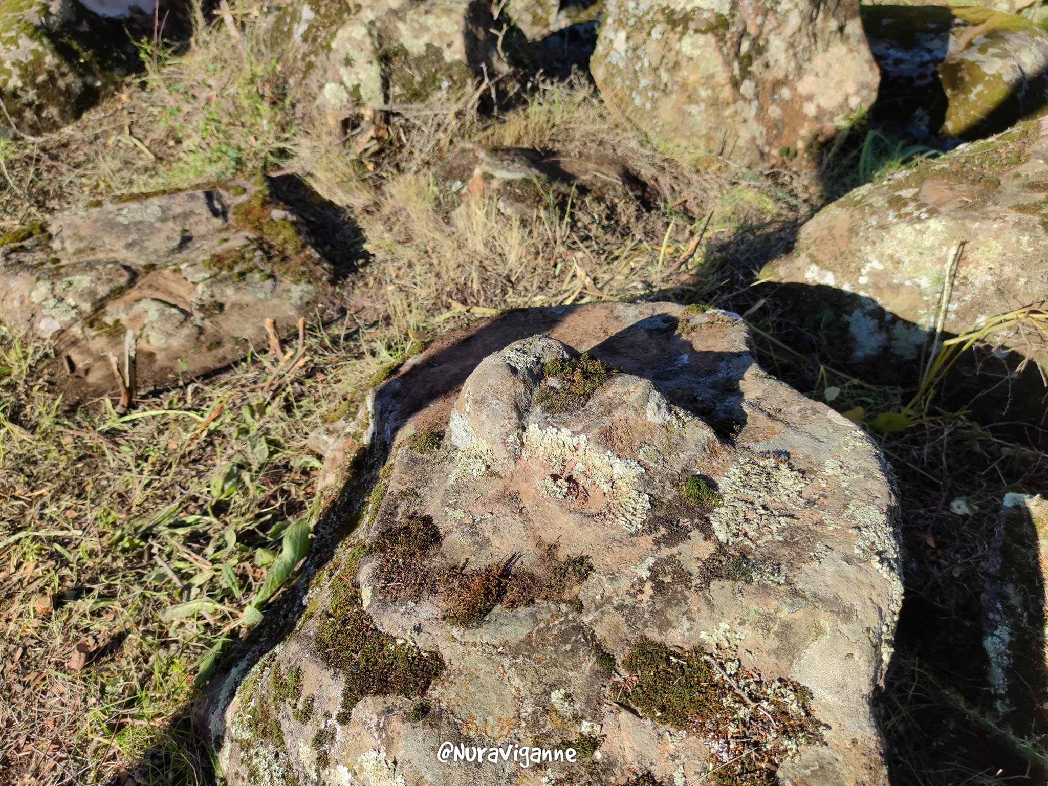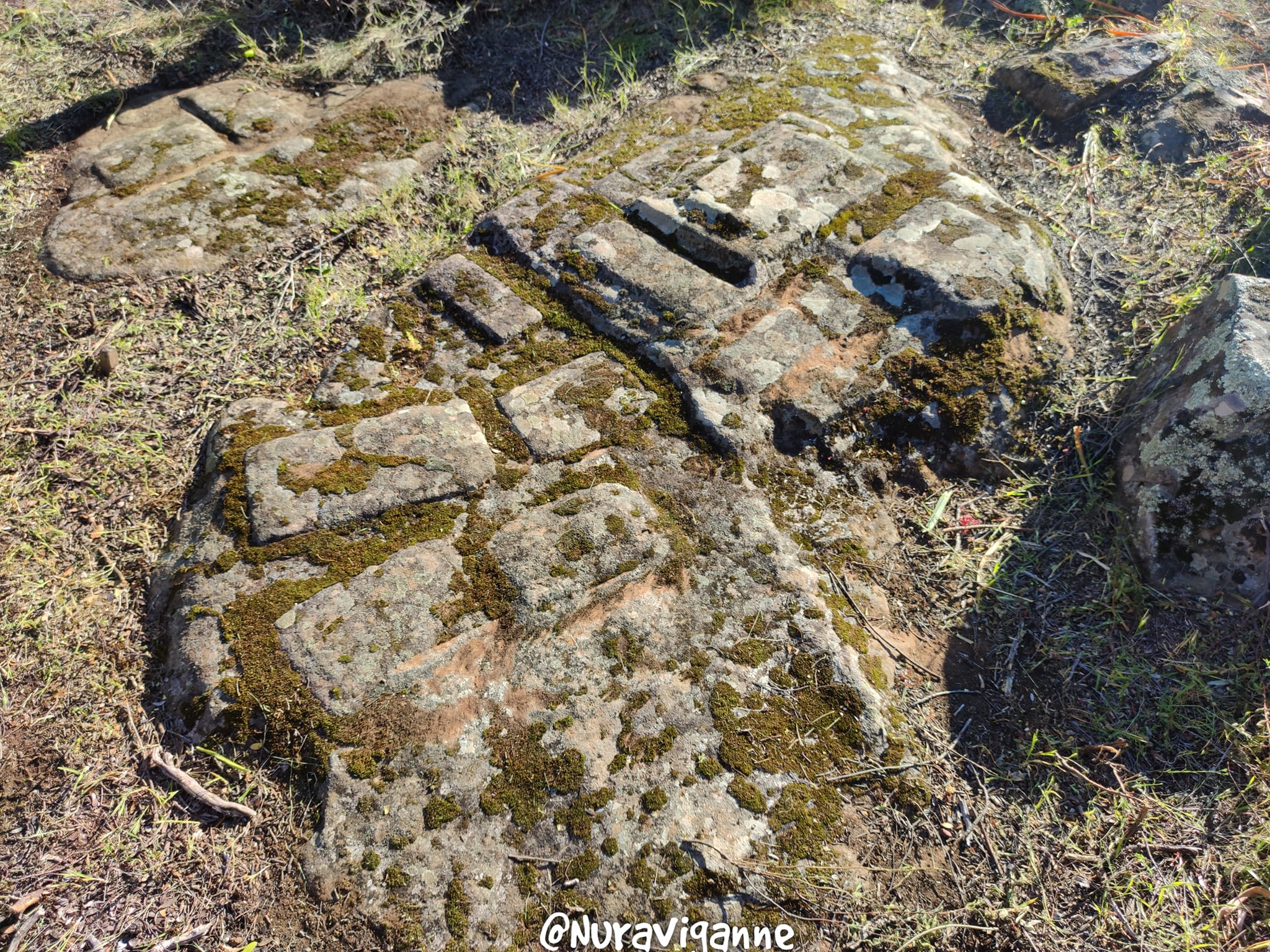 Sono formati da 57 figure geometriche che interessano un’area di m 10x 12, scolpite per lo più ad altorilievo (uno soltanto ad incisione) su blocchi di basalto 3 che affiorano in media cm 30 sul piano di campagna.