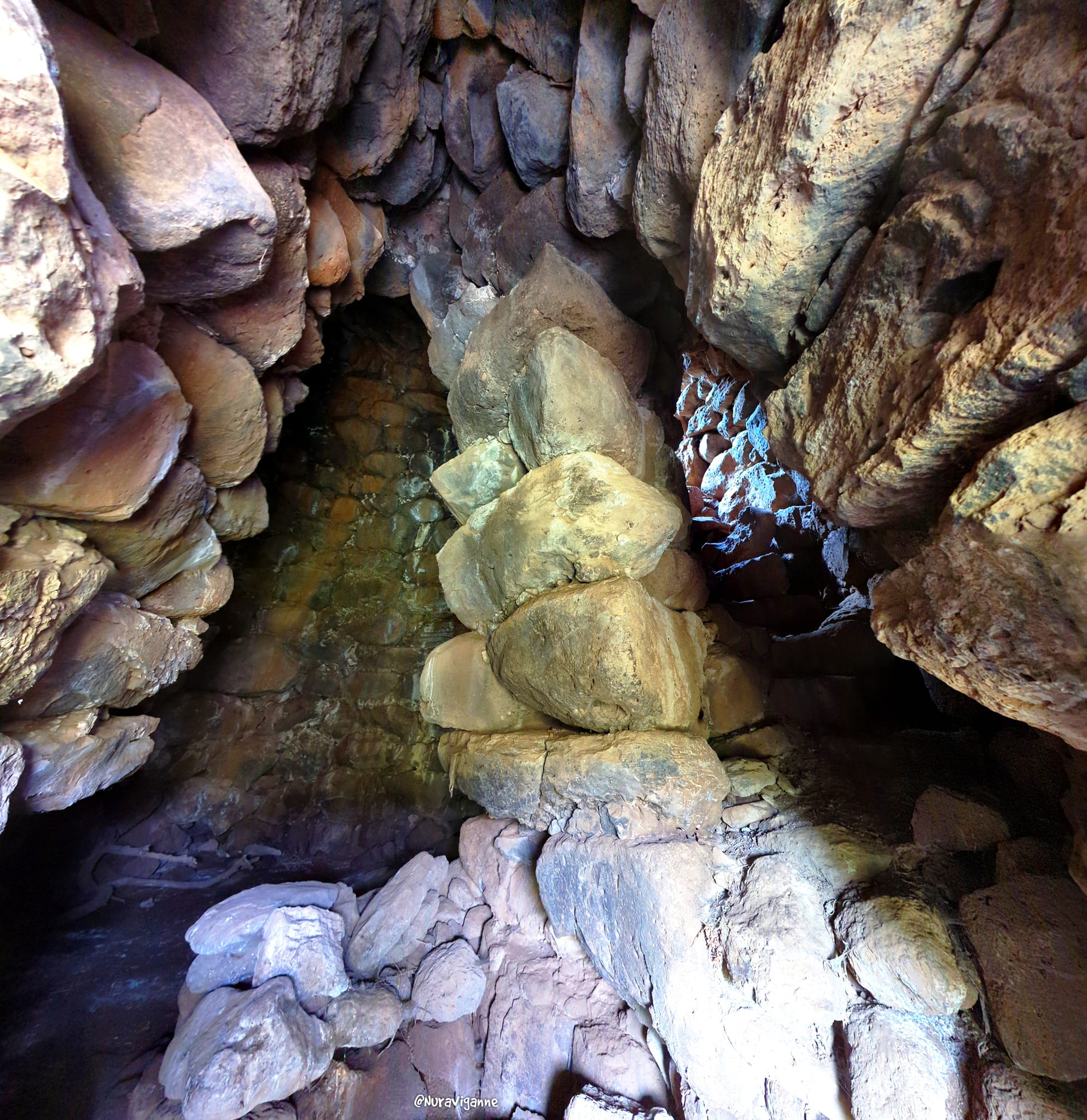 Il complesso di Sos Muros occupa un’area di oltre venti ettari con evidenti segni affioranti di capanne circolari e questo pozzo sacro.