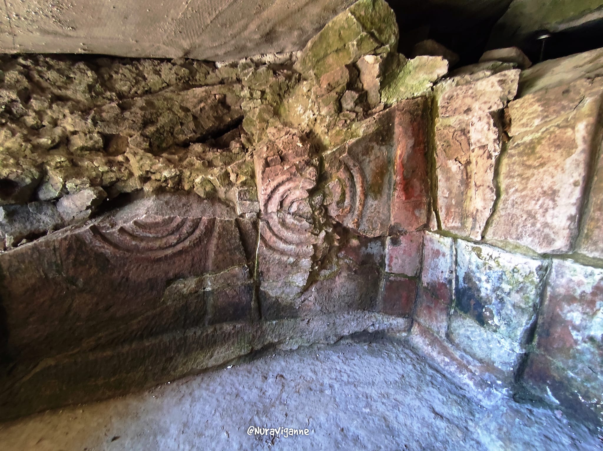 Gruppo di sette e più Domus de Janas poste sul passo, verso L”azienda Mariani, da cui si domina la piana di Santa Lucia e la sottostante necropoli di Sant”Andrea Priu e la valle dei nuraghi di Torralba. La tomba sette, della doppia spirale in ocra rossa, è stata restaurata di recente