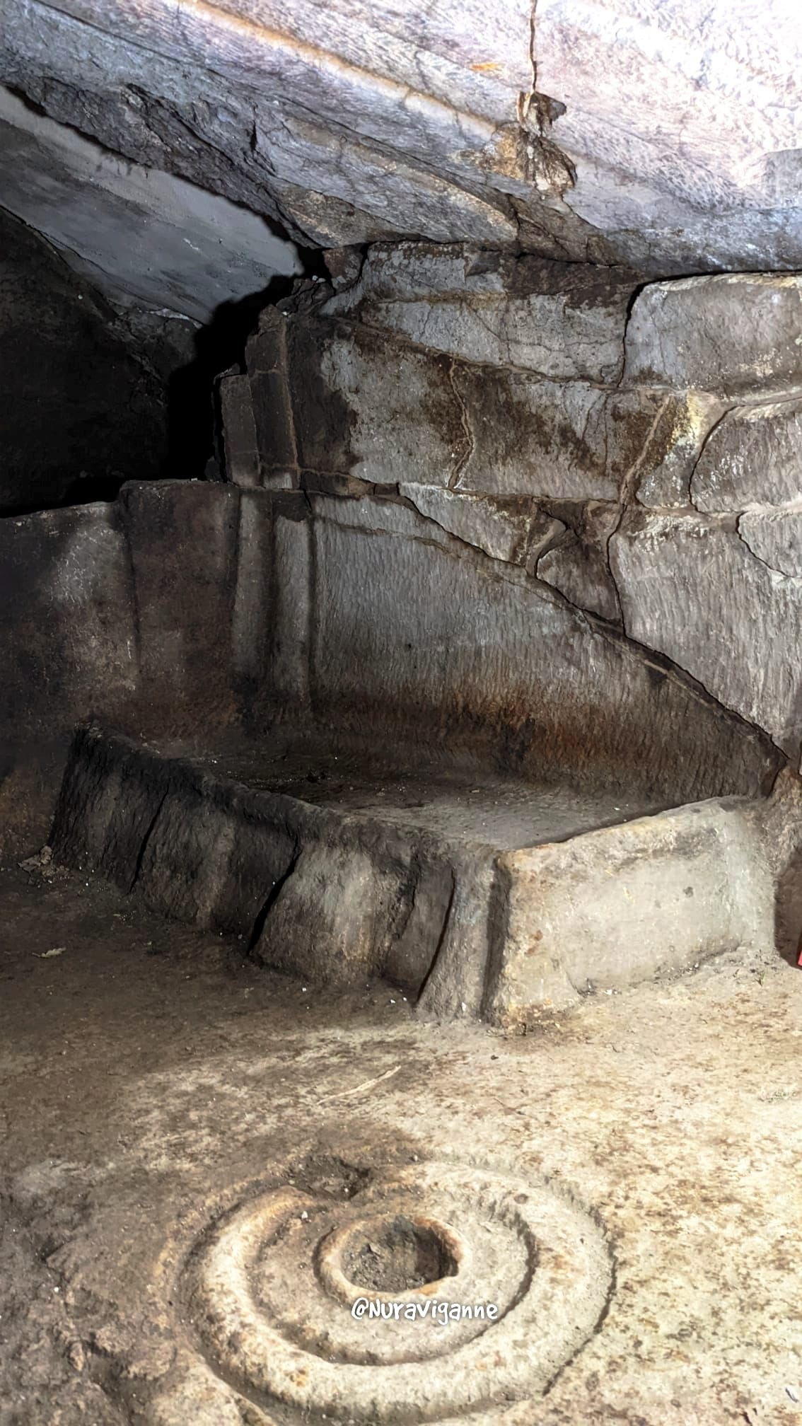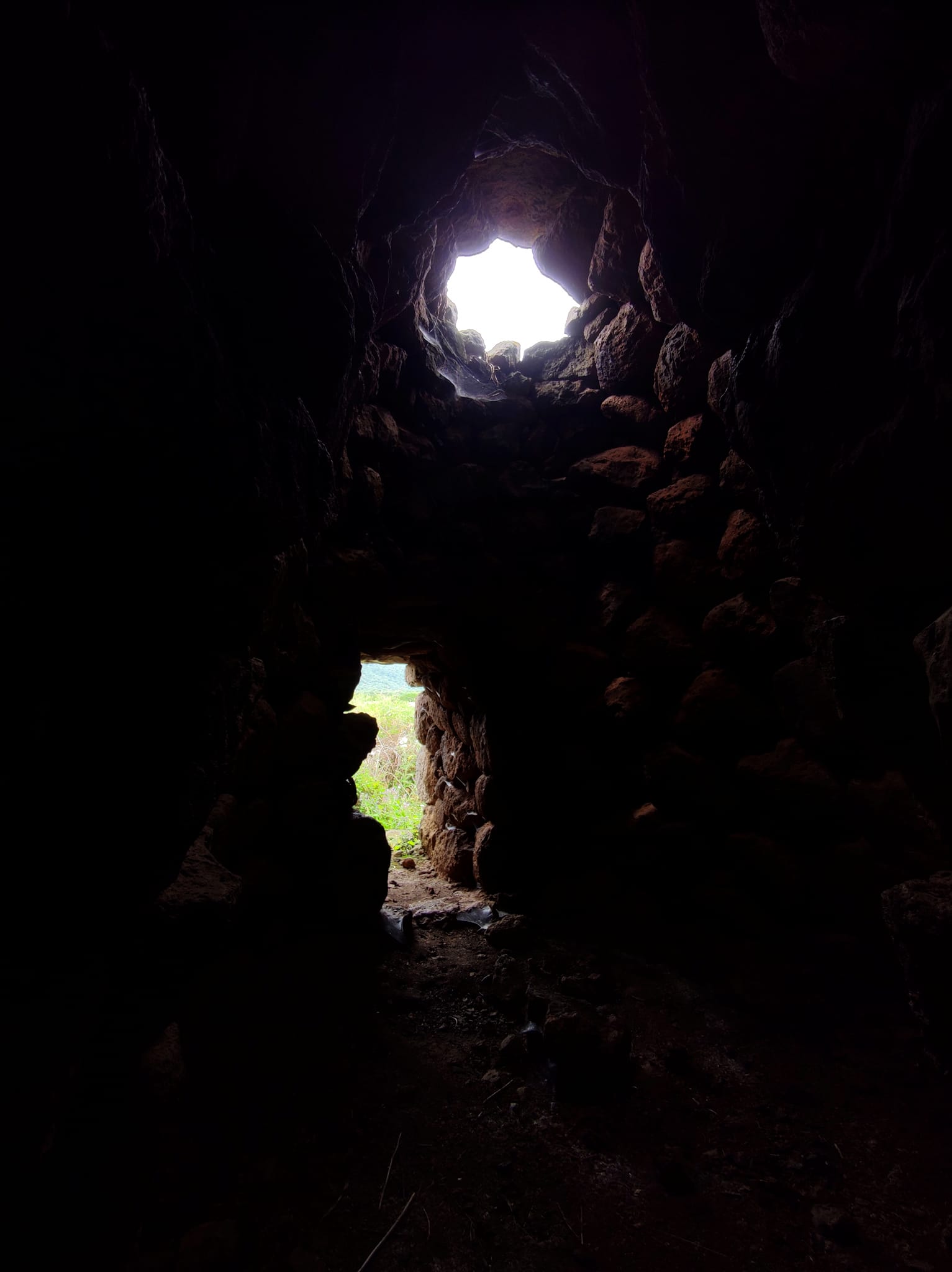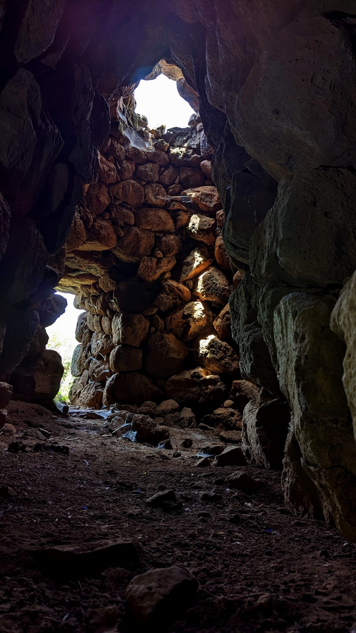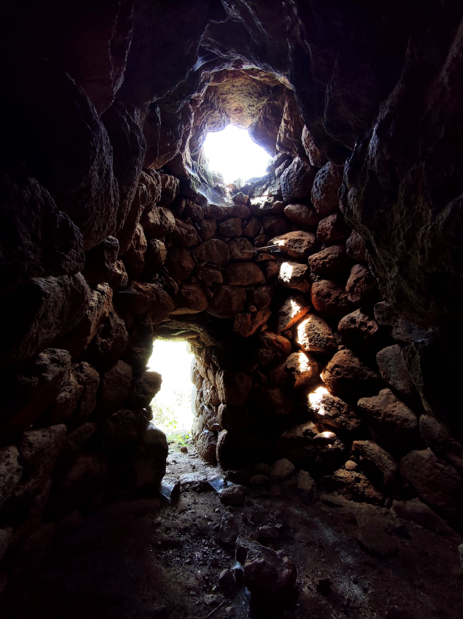 Malgrado gli arbusti incombenti si evince una planimetria di tipo a tancato. La struttura sorprende anche perché, presumibilmente, l’accesso principale è quello che si trova a nord-ovest (non usuale nei nuraghi). L’ingresso monumentale, piattabandato, è composto da una piccola camera circolare che si conserva quasi per intera. Decentrato, sulla destra, un corridoio ad ogiva. Percorrendolo si può ammirare una nicchia che, nonostante i crolli, sembrerebbe costituire l’accesso di una scala. Nella parte finale del corridoio è presente un secondo accesso più modesto.