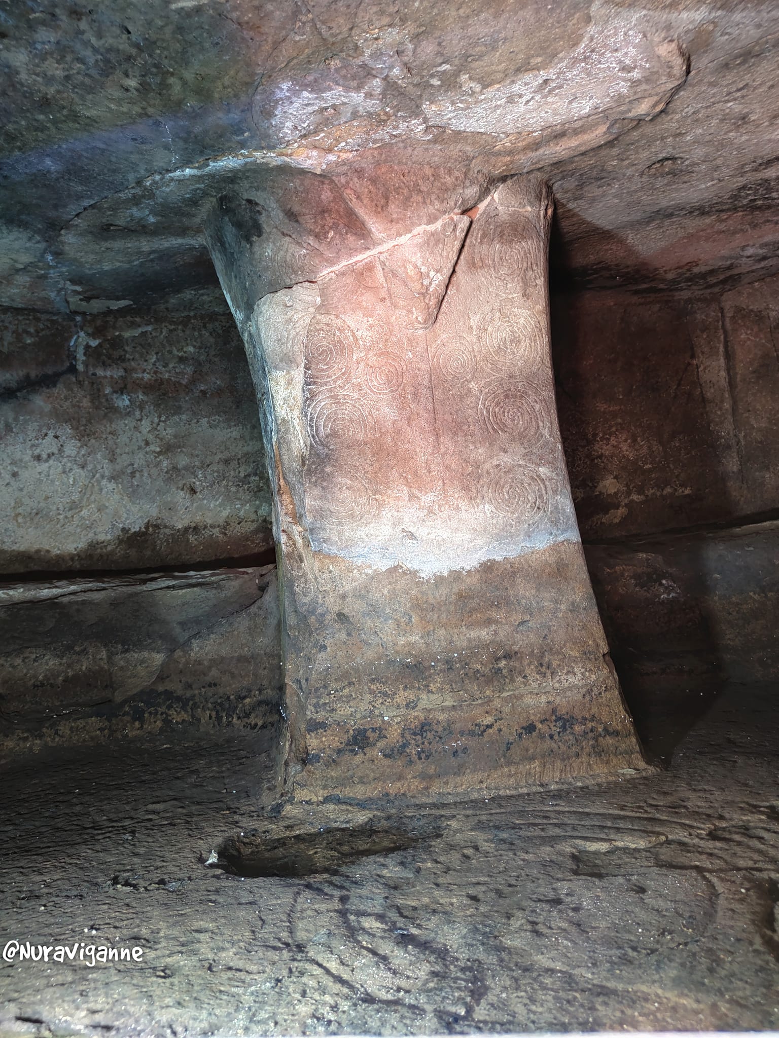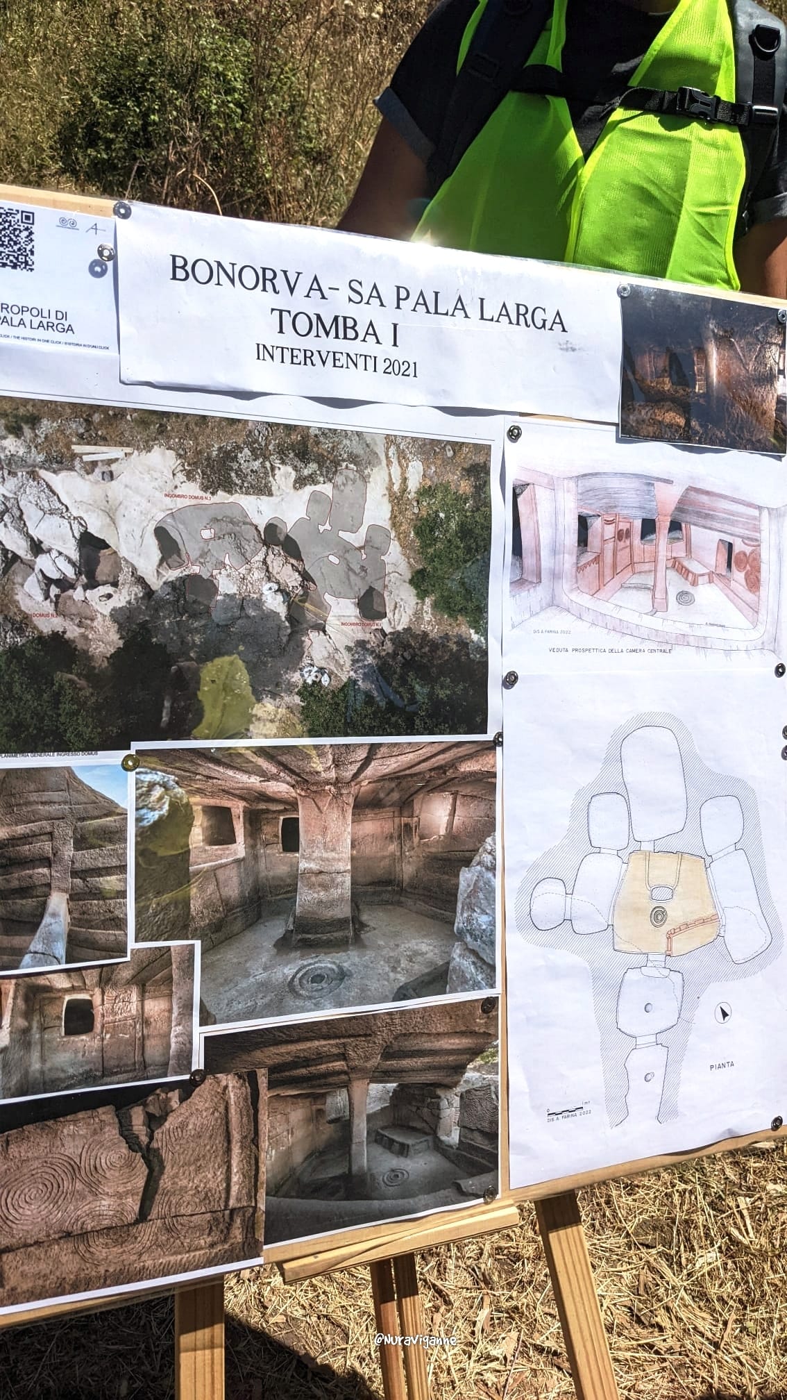 Gruppo di sette e più Domus de Janas poste sul passo, verso L”azienda Mariani, da cui si domina la piana di Santa Lucia e la sottostante necropoli di Sant”Andrea Priu e la valle dei nuraghi di Torralba. La tomba sette, della doppia spirale in ocra rossa, è stata restaurata di recente