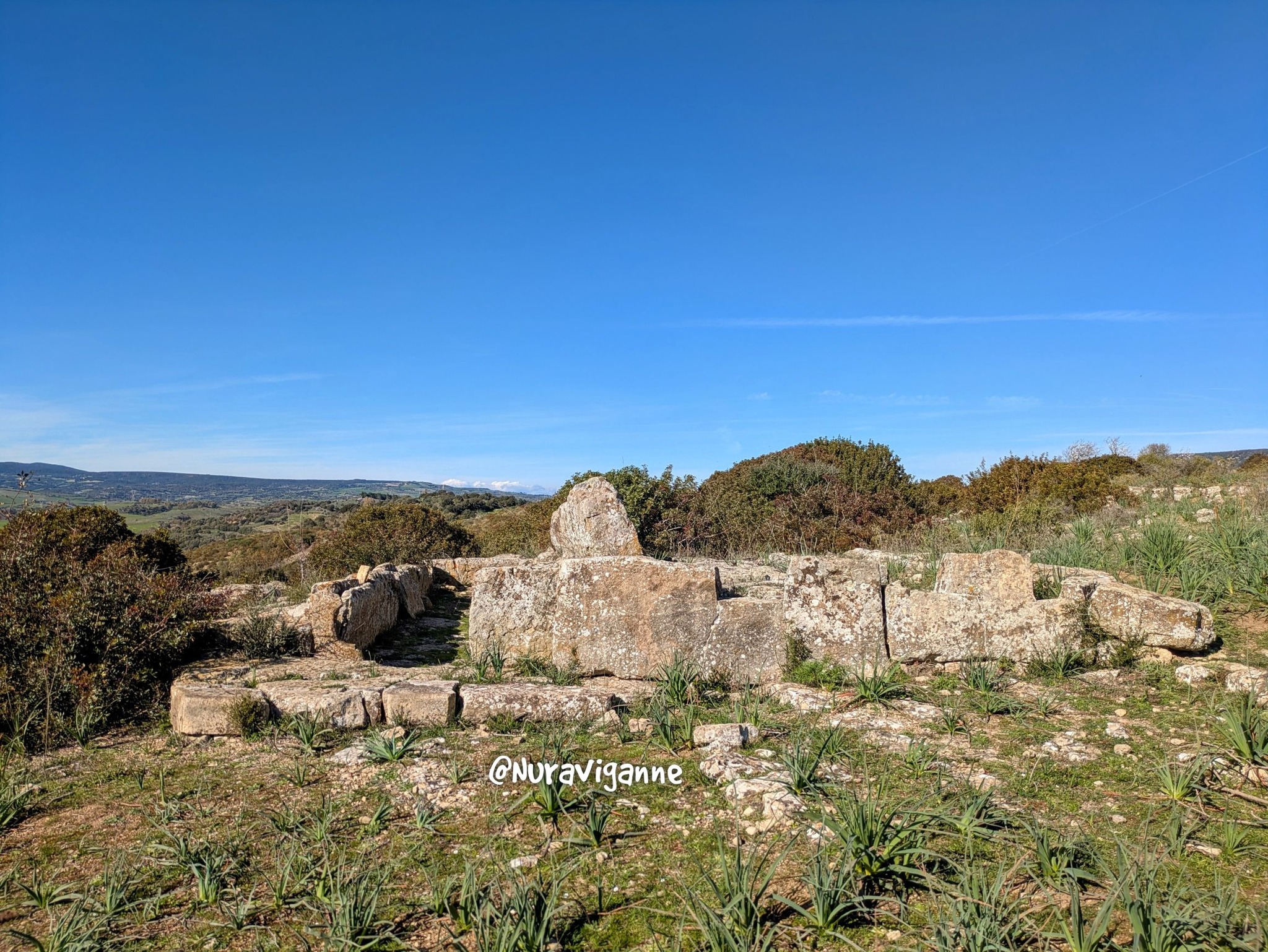 A causa di scavi abusivi, non è stato restituito un contesto stratigrafico intatto. Tuttavia, dai pochi dati riscontrabili ancora utili, è stato possibile riconoscere una sequenza databile tra l’età del Bronzo medio avanzato e il Bronzo recente. Nell’area dell’esedra di una delle tombe sono stati documentati due focolari a pozzetto, che hanno restituito materiali inquadrabili nella cultura di Monte Claro, e invitano ad ipotizzare una frequentazione del sito precedente la realizzazione della sepoltura. http://www.giarasardegna.it