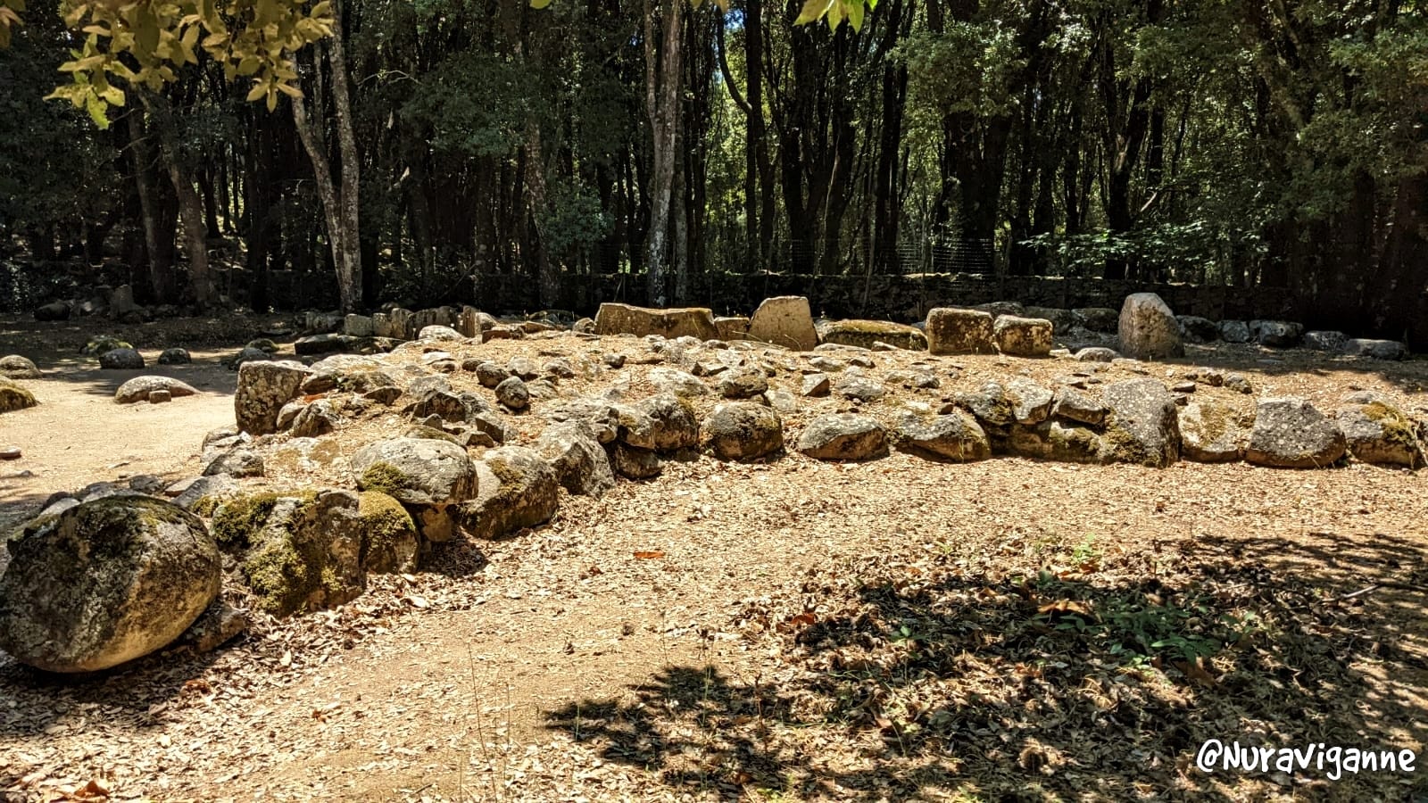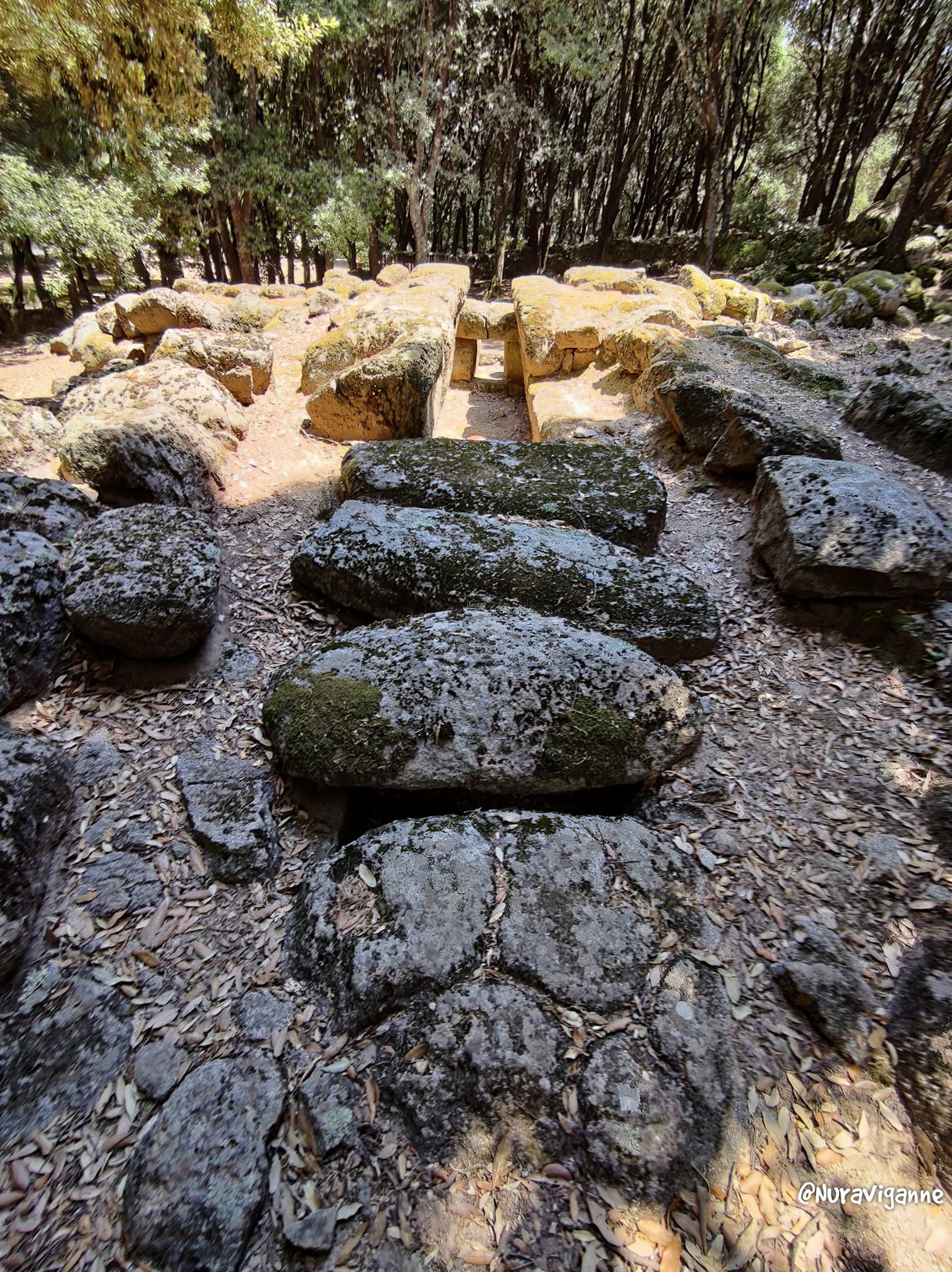 Oltre le due monumentali Tombe dei Giganti, uniche e ben visibili e di eccezionale fattura, sono state individuate altre tre tombe. Per chi è pratico di edifici e urbanistica nuragica questo significa l’esistenza di una comunità di svariate centinaia di persone che aveva avuto necessità di moltiplicare le necropoli.