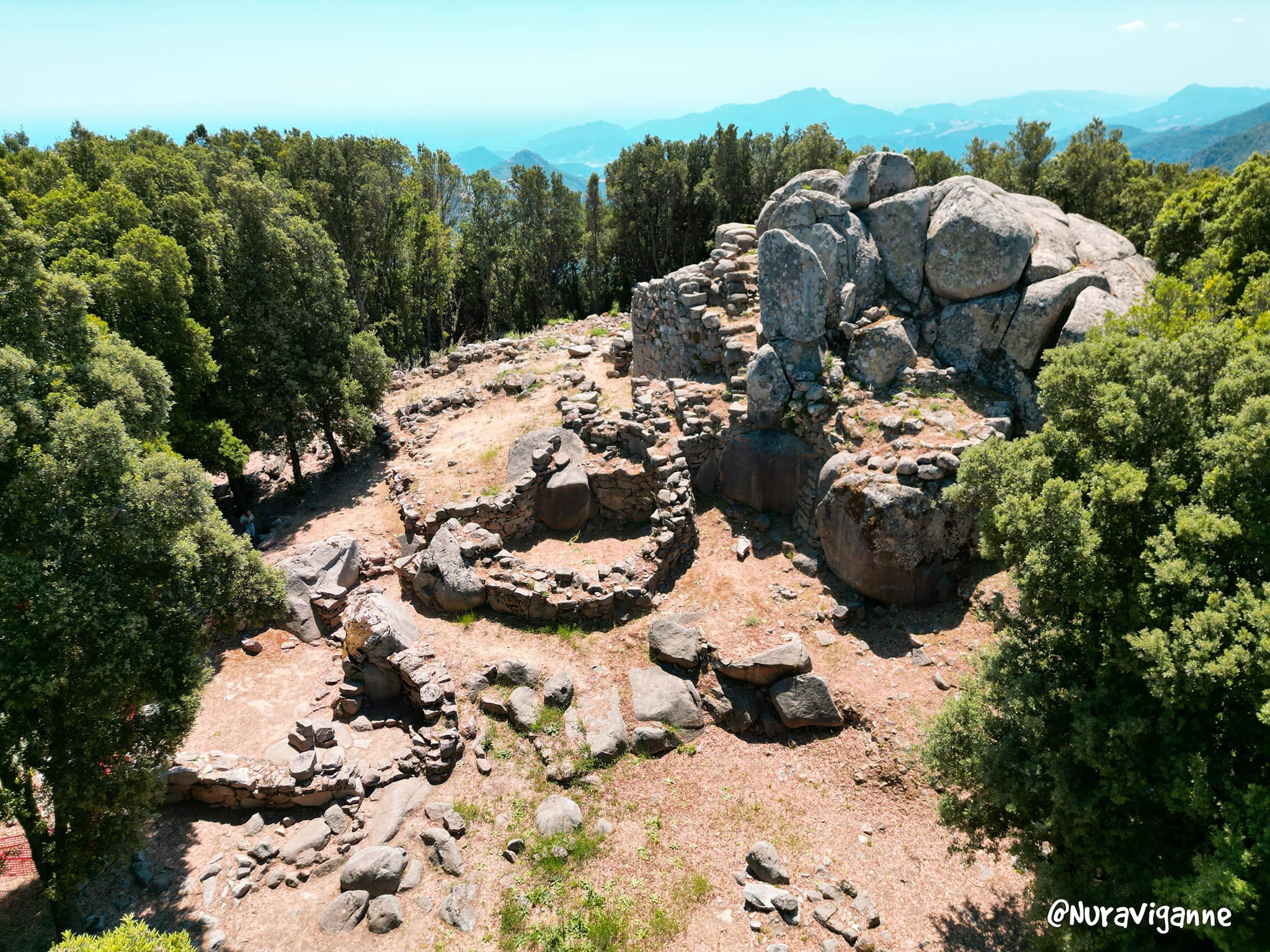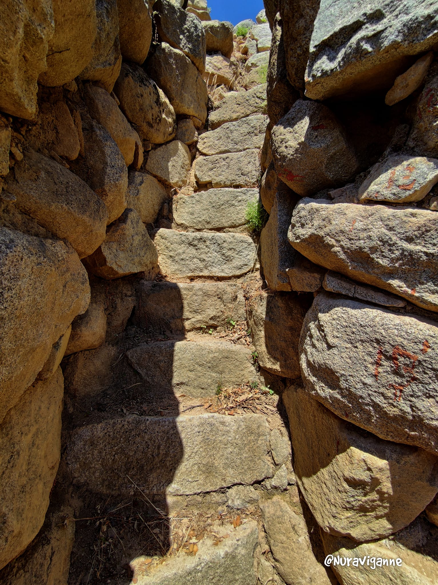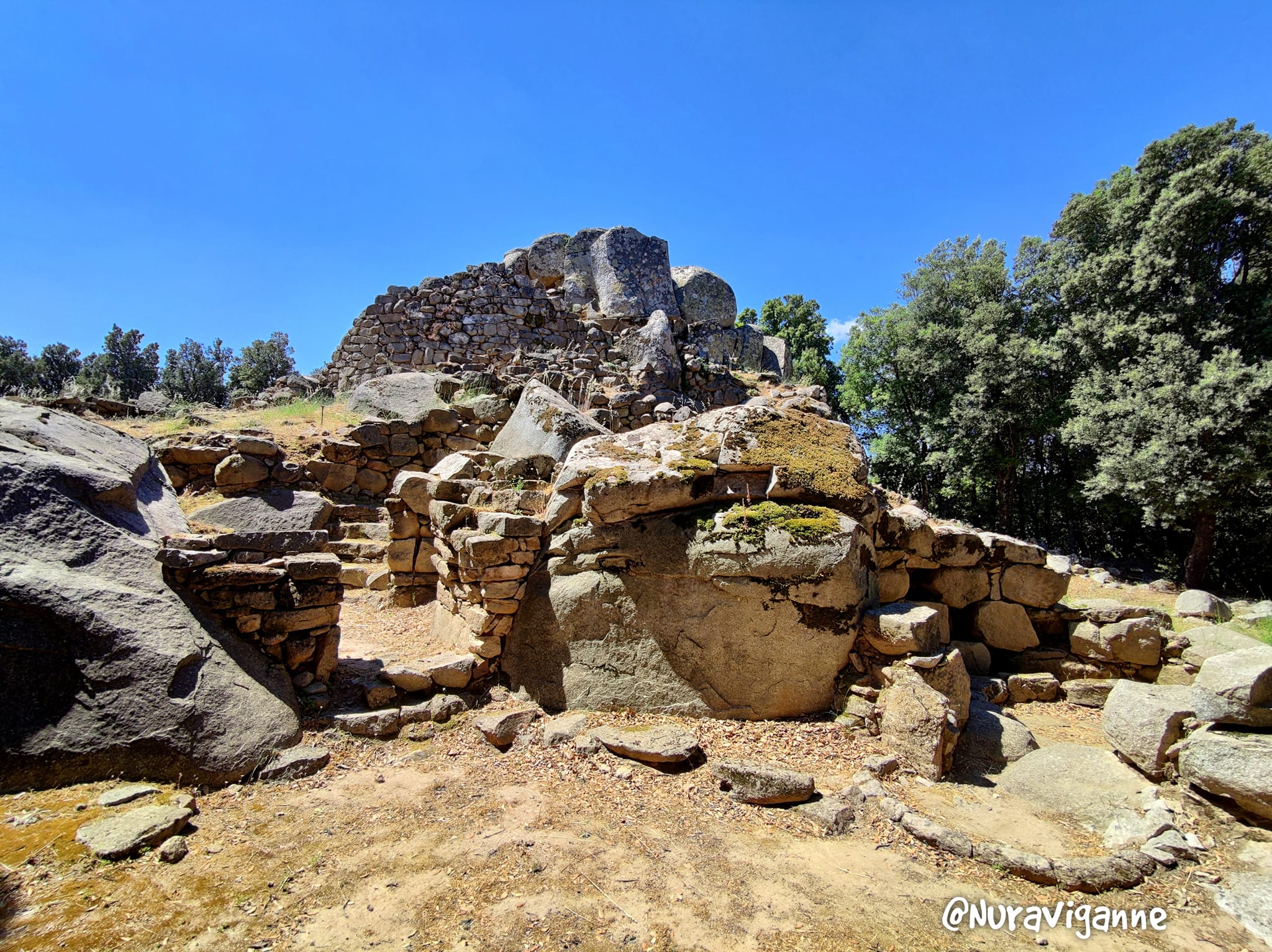 I nuragici decisero di murare i tafoni ed erigere un’unica e particolare torre che, probabilmente, aveva una stanza ulteriore sopra la superficie l’ammasso roccioso. All’interno di queste murature incastrate nei graniti sono presenti delle scale molto ripide. Del grande edificio comunitario e centrale non resta molto, forse anche a causa delle scelte del La Marmora e dello Spano che nella ricerca del “calpestio”, fecero spostare e spingere di sotto una parte dell’originario elevato.