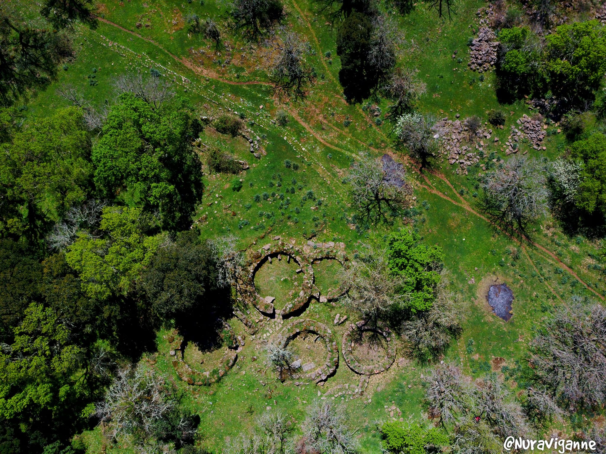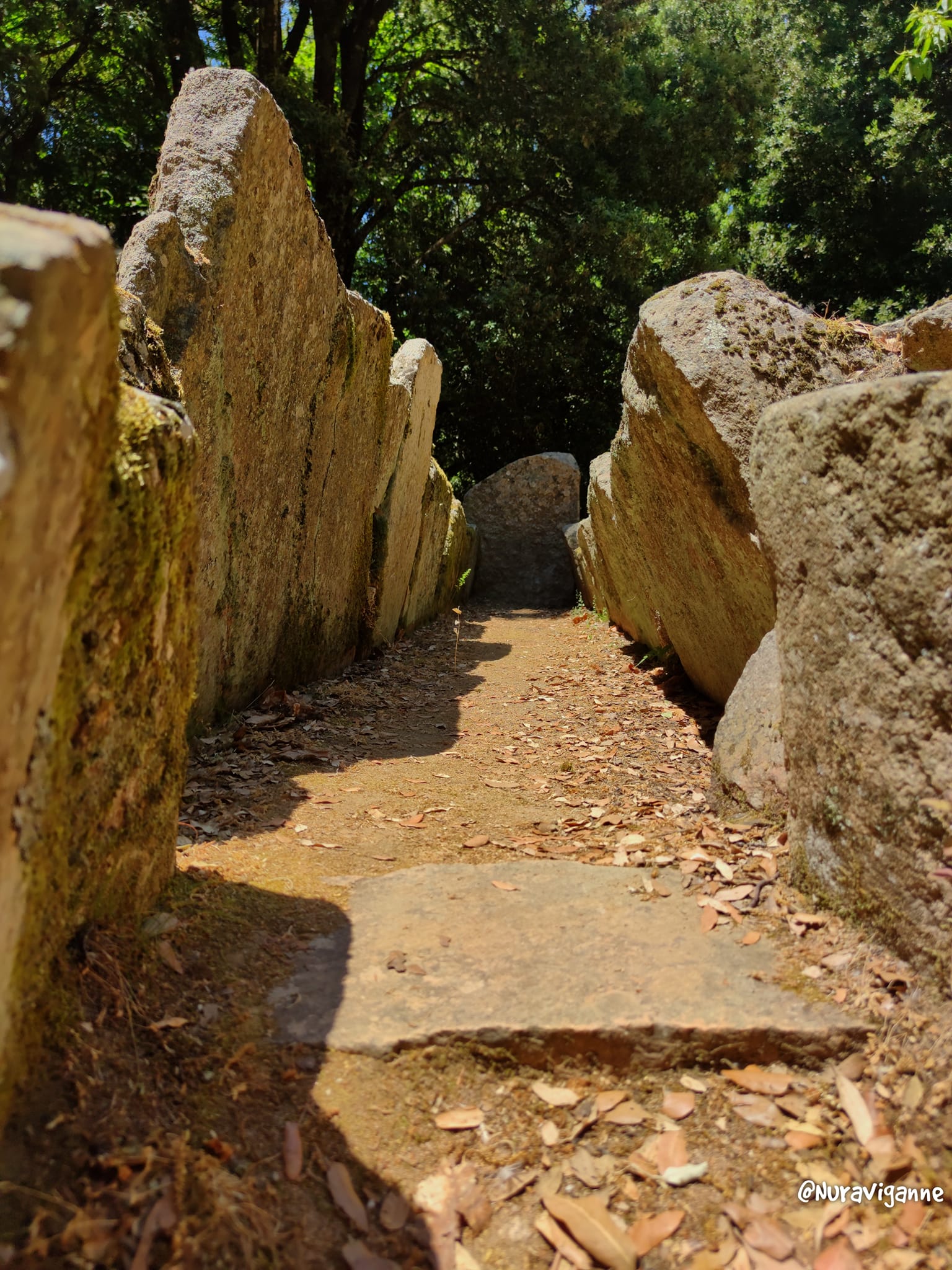Oltre le due monumentali Tombe dei Giganti, uniche e ben visibili e di eccezionale fattura, sono state individuate altre tre tombe. Per chi è pratico di edifici e urbanistica nuragica questo significa l’esistenza di una comunità di svariate centinaia di persone che aveva avuto necessità di moltiplicare le necropoli.