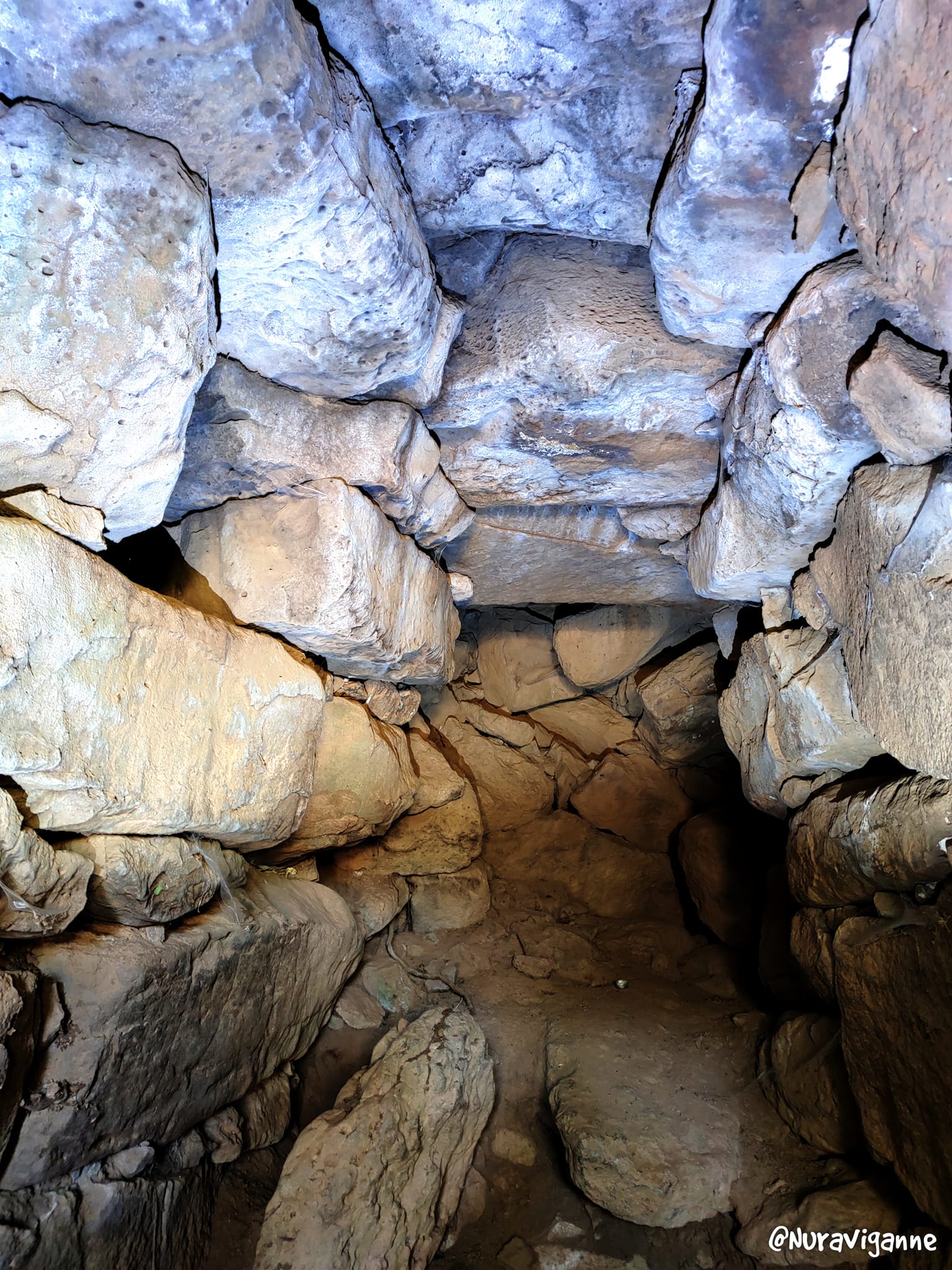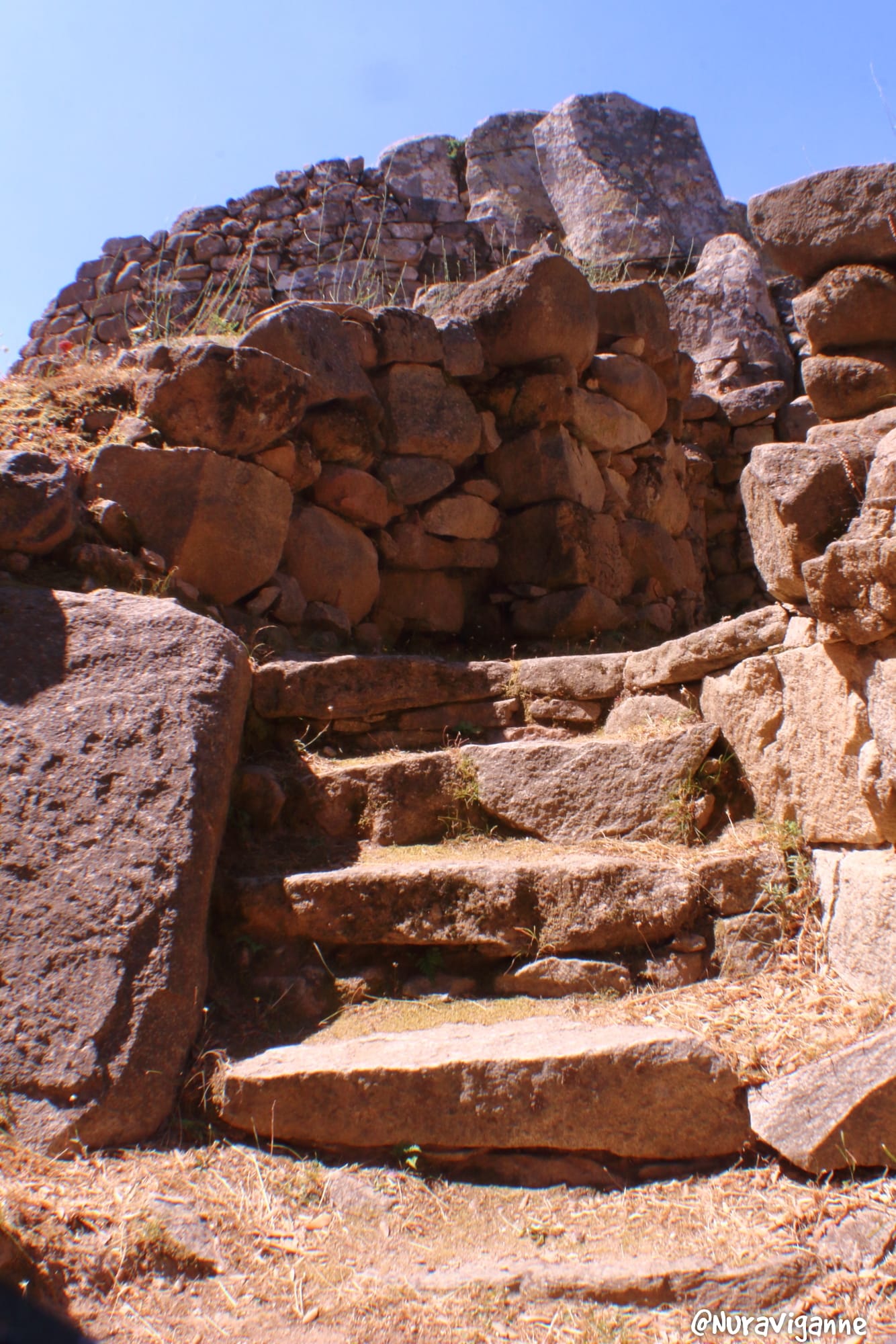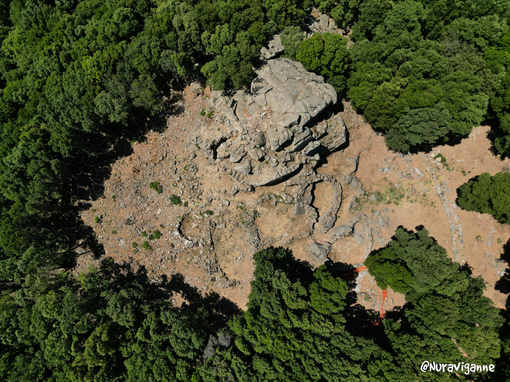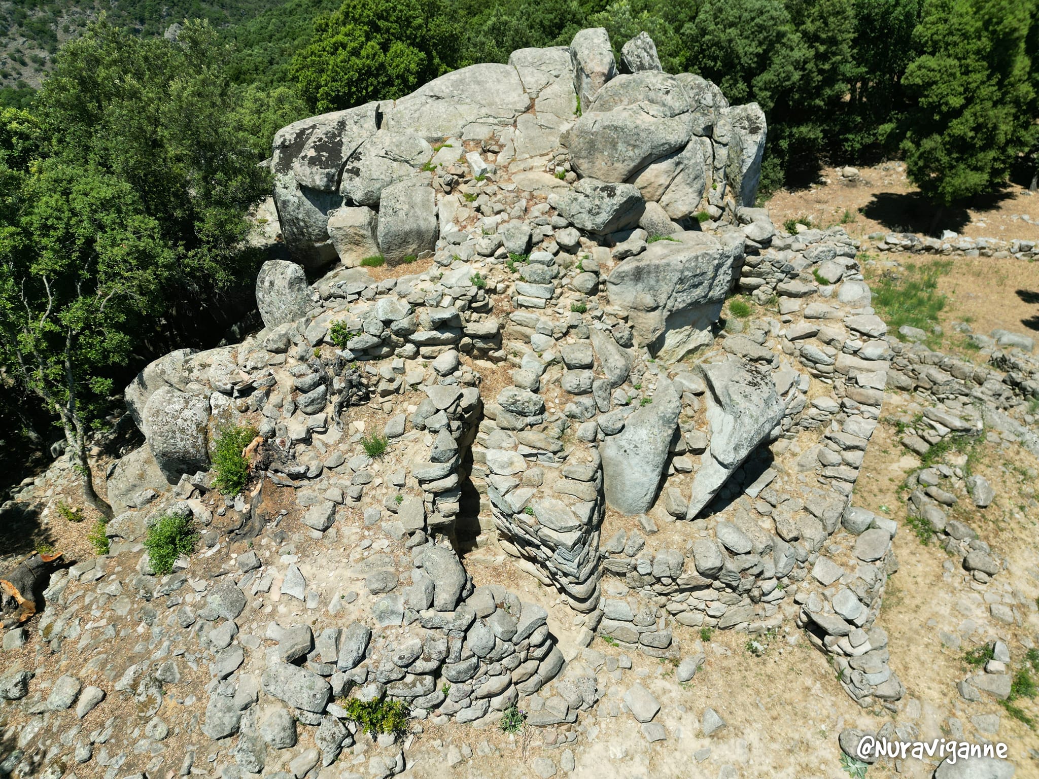 I nuragici decisero di murare i tafoni ed erigere un’unica e particolare torre che, probabilmente, aveva una stanza ulteriore sopra la superficie l’ammasso roccioso. All’interno di queste murature incastrate nei graniti sono presenti delle scale molto ripide. Del grande edificio comunitario e centrale non resta molto, forse anche a causa delle scelte del La Marmora e dello Spano che nella ricerca del “calpestio”, fecero spostare e spingere di sotto una parte dell’originario elevato.