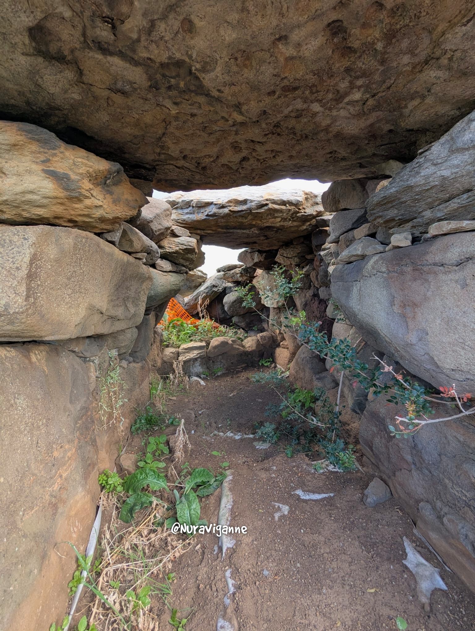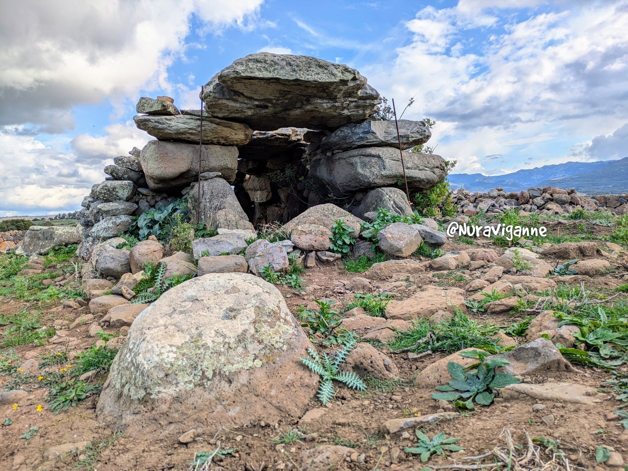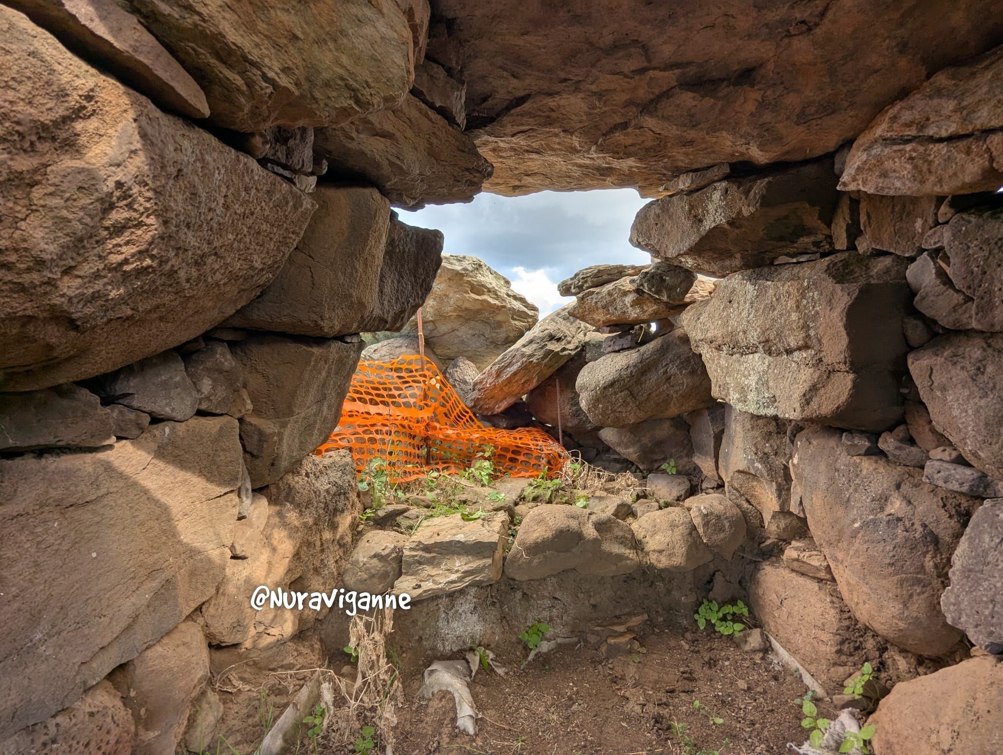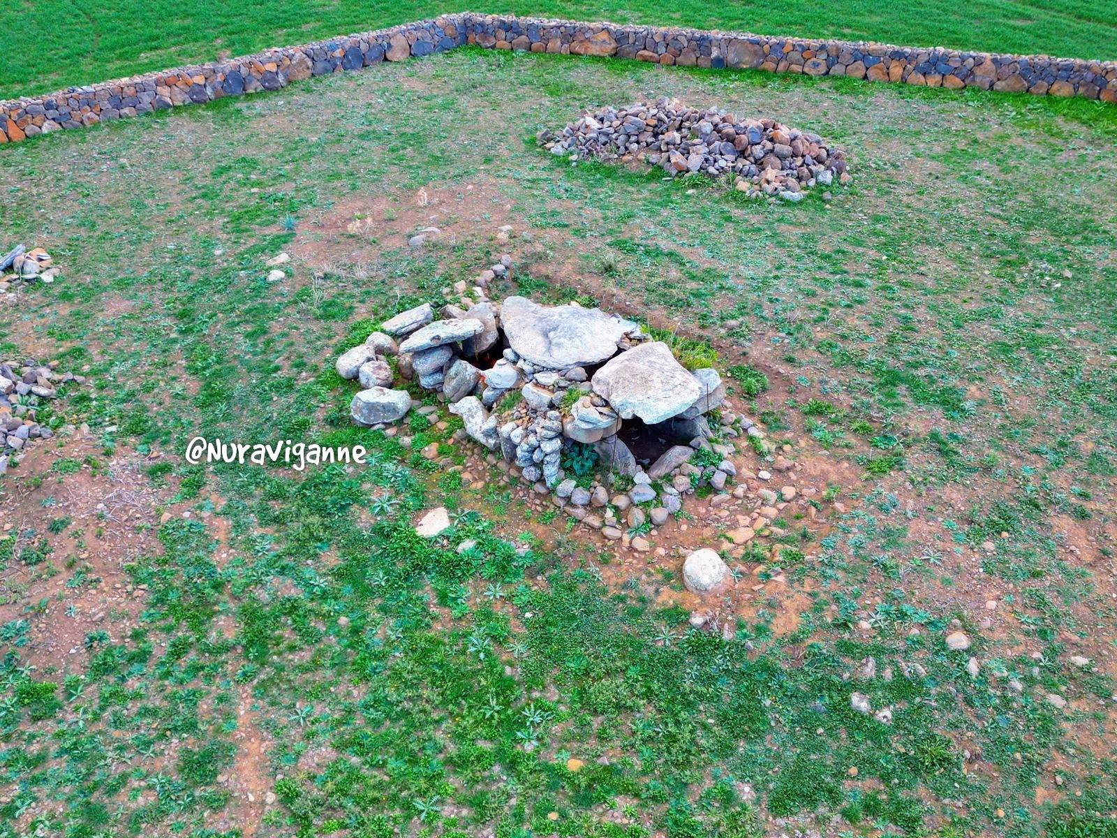 pareti laterali sono invece costituite da una serie di blocchi su cui poggiano delle pietre di piccole dimensioni. L’altezza residua è di circa 130 cm.