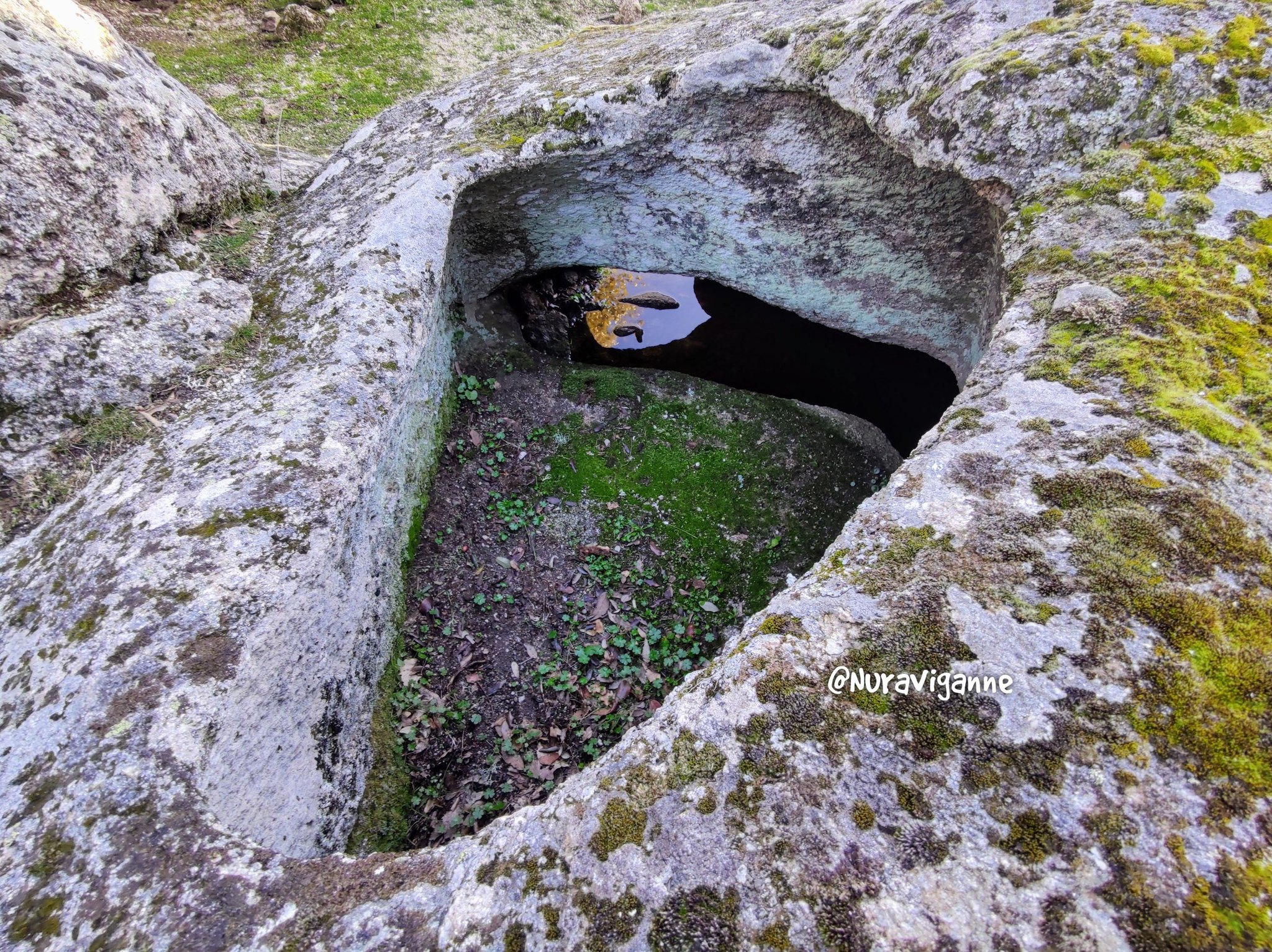 L’intera superficie superiore è ricoperta da una miriade di coppelle (piccole cavità con funzioni di tipo magico-sacrali).