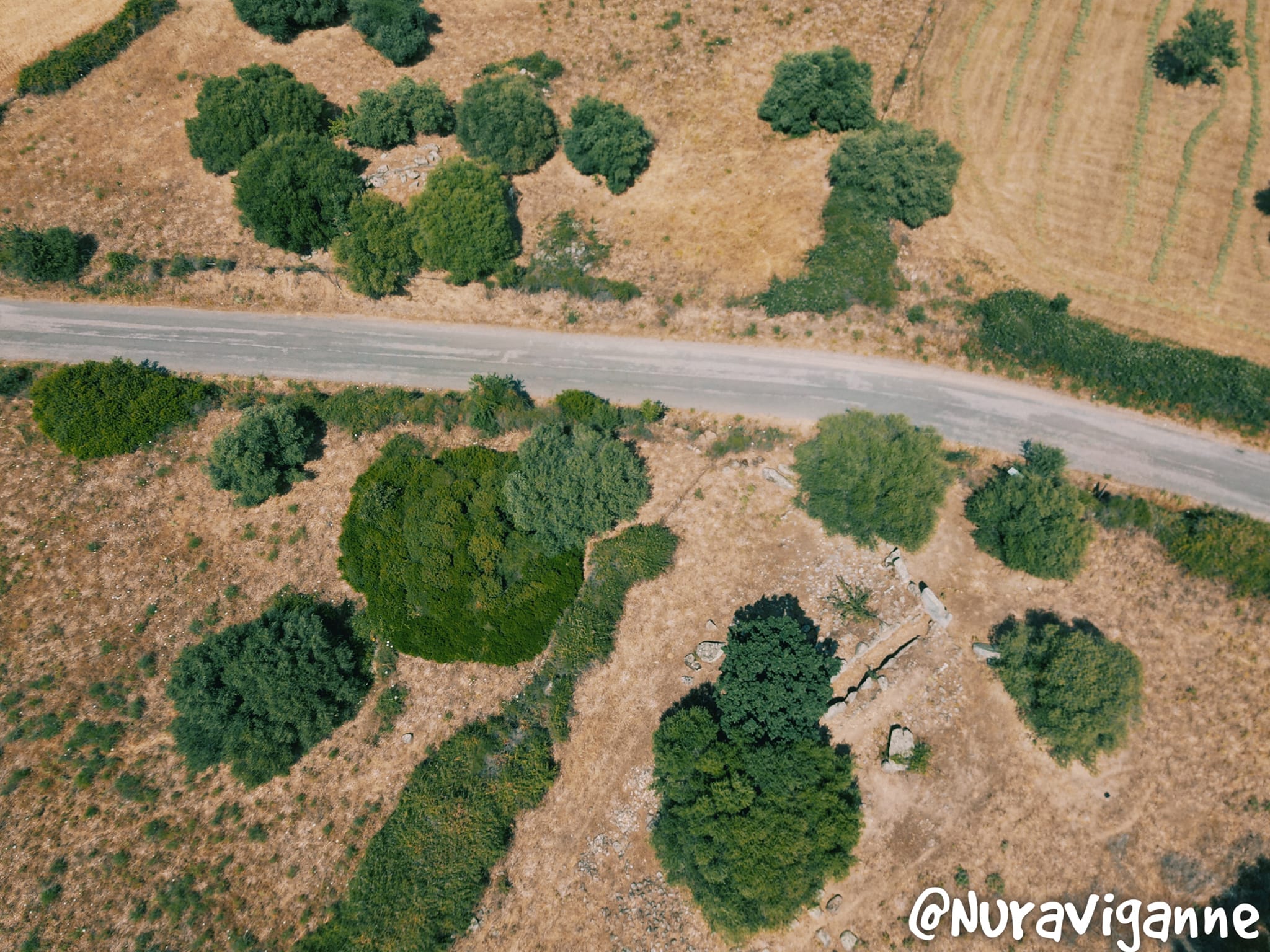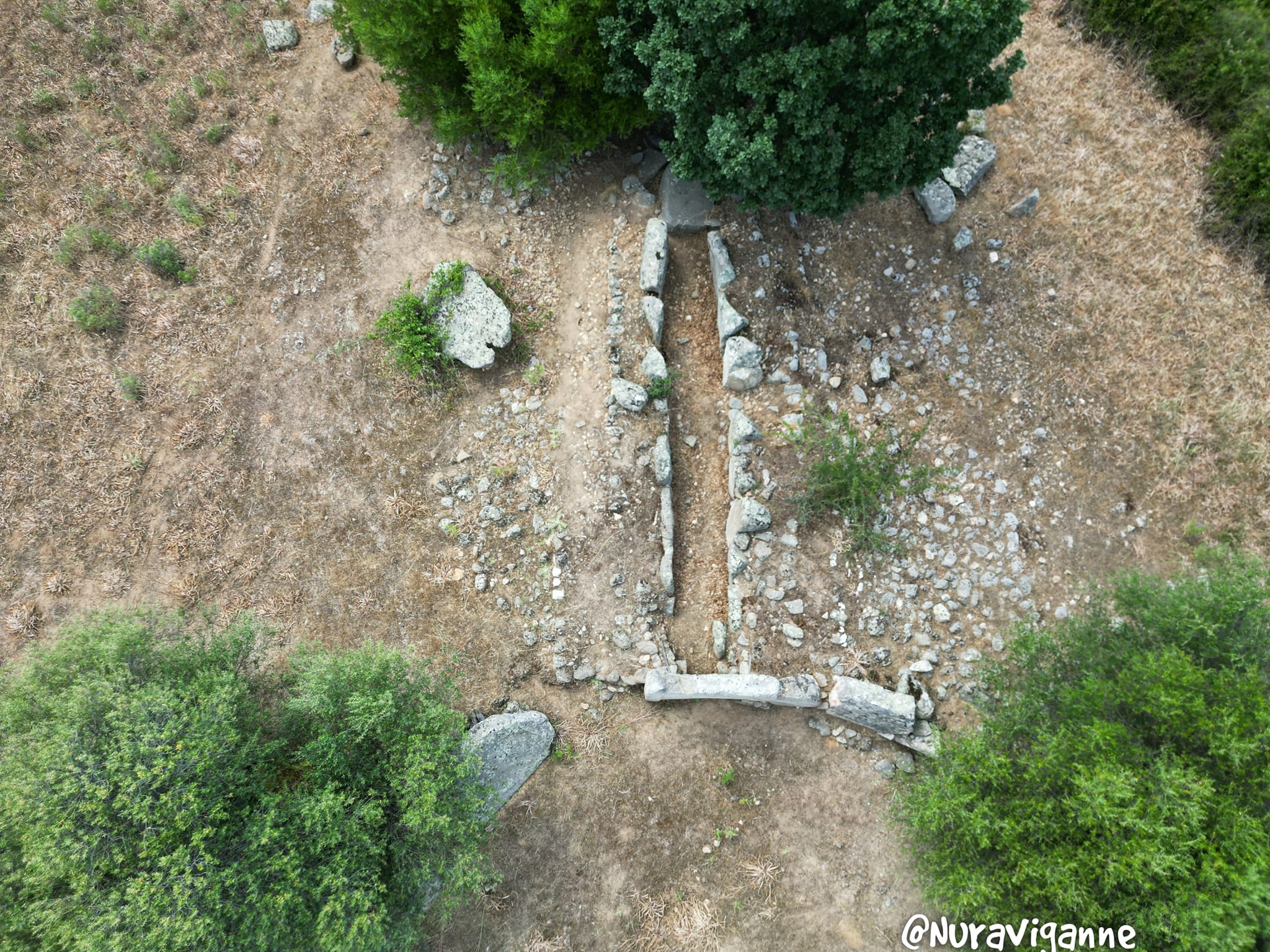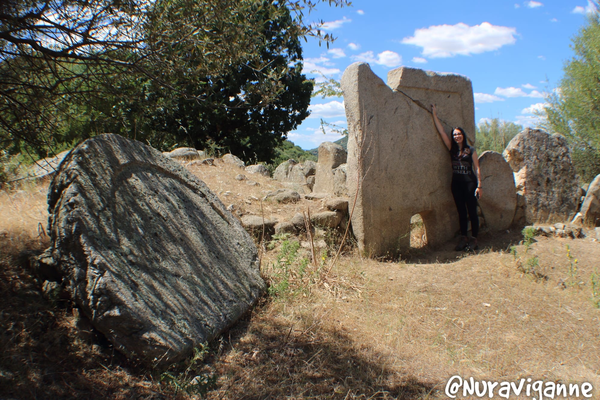 La tomba faceva parte di un complesso funerario in origine composto da quattro sepolture megalitiche messe a breve distanza l’una dall’altra e vicinissime ai nuraghi Ilòi e Logula. L’attuale tracciato stradale ha diviso la piccola necropoli di tombe di giganti costruite in funzione dei villaggi lungo un tracciato di vie di transumanza. E’ una tomba dolmenica, originariamente provvista di stele centinata bilitica con portello alla base posta al centro dell’esedra.